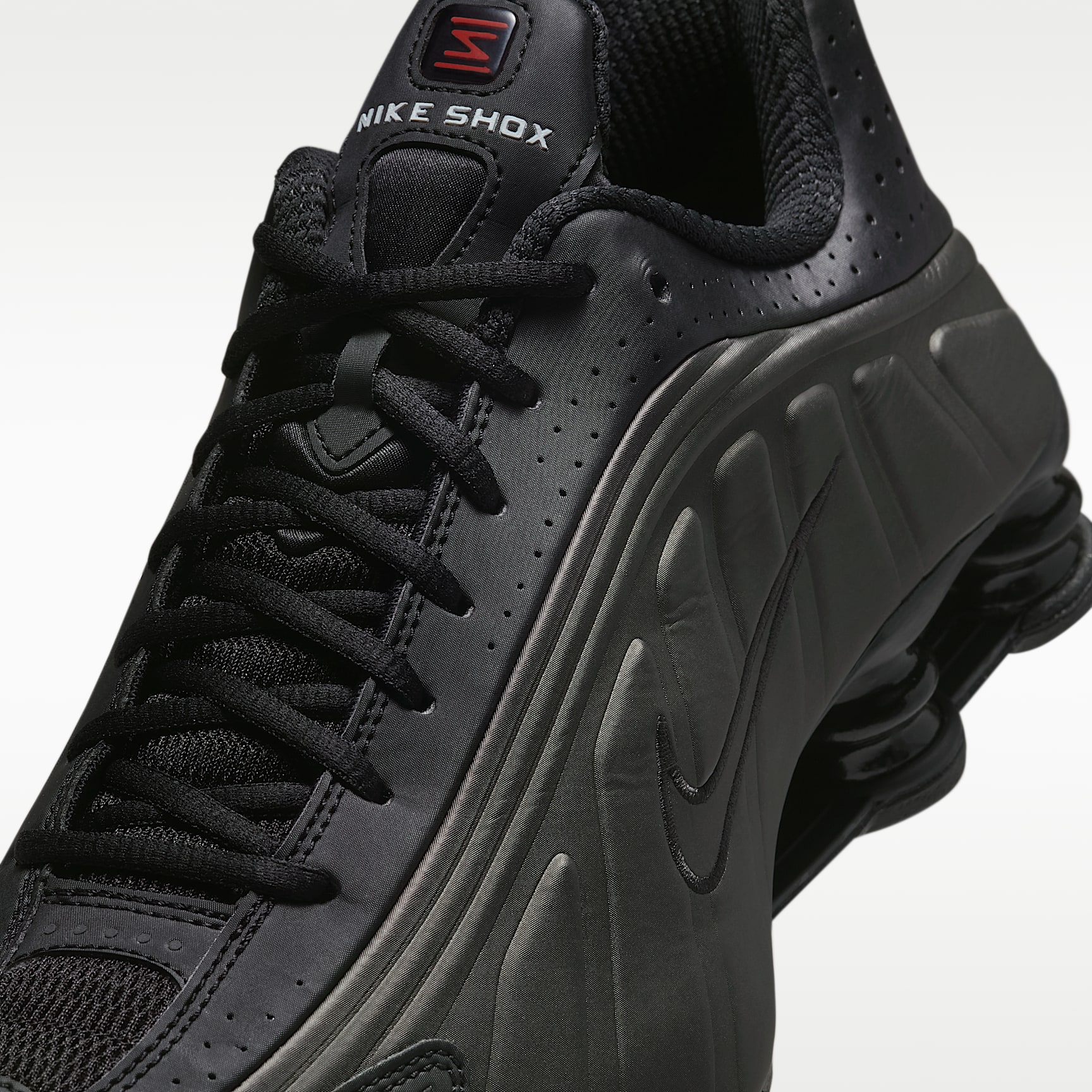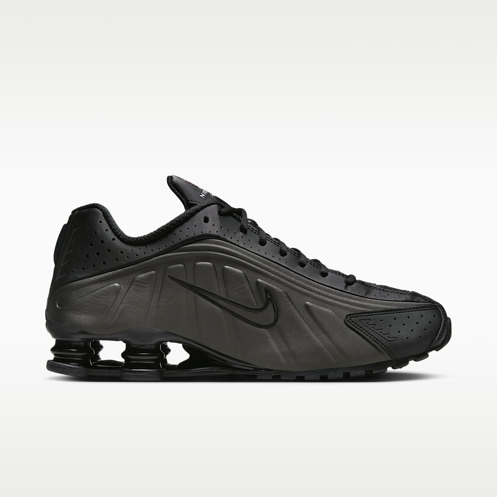 A recrafted version of the early 2000s icon, the Nike Shox R4 replicates the original with its futuristic design lines and performance-like cushioning. Nike Shox columns in the heel distribute weight to maximise comfort while providing a bold look on the streets. Benefits * Synthetic and textile upper is soft and durable. * Nike Shox technology features resilient, flexible columns that compress and regain shape for outstanding cushioning. * The modified, circular Waffle outsole offers great traction. * Laser perforations throughout provide ventilation. Product details * Foam midsole * Rubber outsole * Not intended for use as personal protective equipment (PPE)