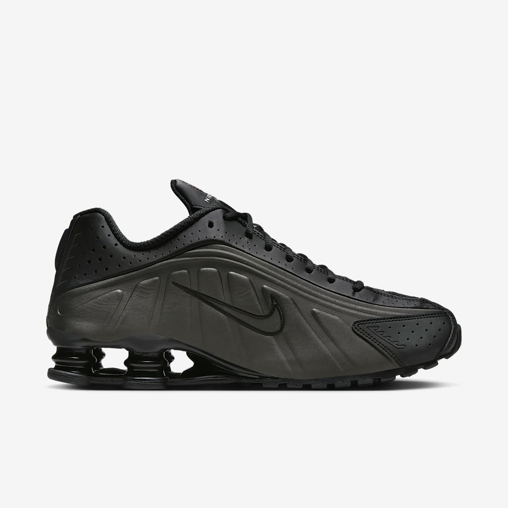 A recrafted version of the early 2000s icon, the Nike Shox R4 replicates the original with its futuristic design lines and performance-like cushioning. Nike Shox columns in the heel distribute weight to maximize comfort while providing a bold look on the streets. Benefits * Synthetic and textile upper is soft and durable. * Nike Shox technology features resilient, flexible columns that compress and regain shape for outstanding cushioning. * Modified, circular Waffle outsole offers great traction. * Laser perforations throughout provide ventilation. Product Details * Foam midsole * Rubber outsole * Not intended for use as Personal Protective Equipment (PPE)