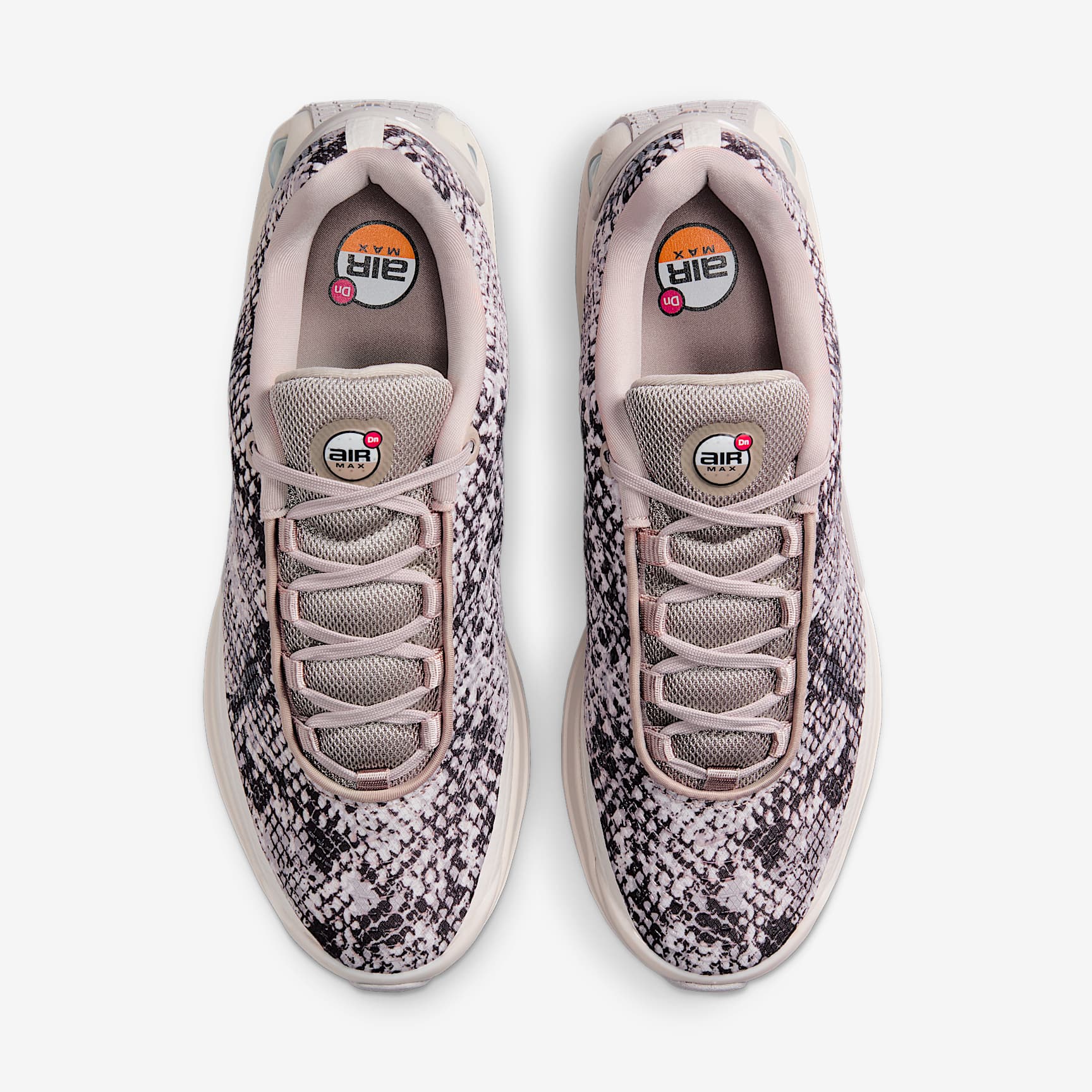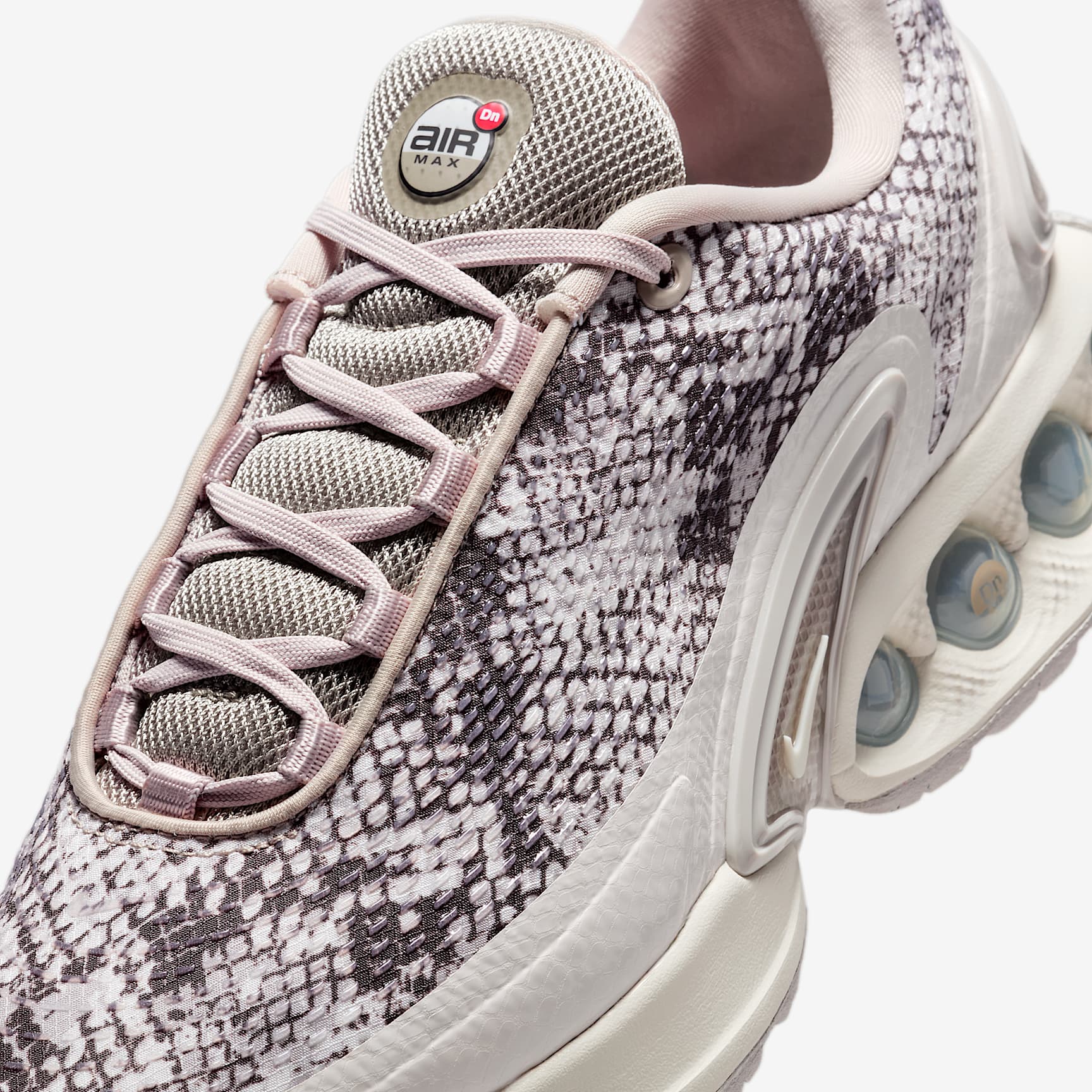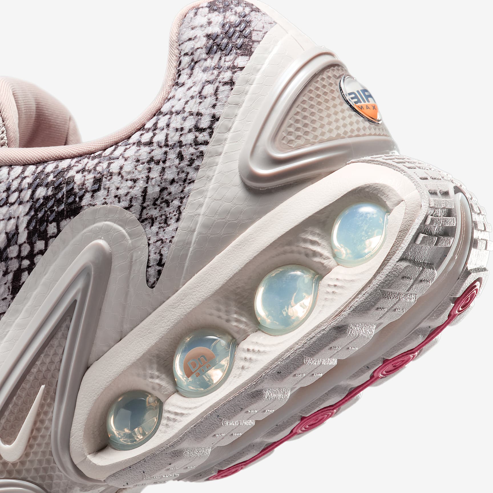 The Air Max Dn features our Dynamic Air unit system of dual-pressure tubes, creating a responsive sensation with every step. This results in a futuristic design that's comfortable enough to wear from day to night. Plus, this premium version is updated with a snakeskin pattern throughout. Go ahead—Feel The Unreal Maxxed Out motion Our Dynamic Air unit system features two sets of dual-pressure tubes. With the firmest amount of pressure in the heel and the softest amount of pressure towards your midfoot, the air levels shift within each set for a smooth transition as you step. Maxxed Out comfort The multi-layered mesh on the upper feels lightweight and breathable, with a haptic print for a textured look. Plush foam surrounds the cushioning system for an enhanced feel that's uniquely soft and supportive. Maxxed Out energy Providing comfort from top to bottom, this tactile design boasts performance-level bounce to energise your every move. After all, who said going to a concert isn't a sport? Product details * Foam midsole * Rubber outsole Nike Air Max Origins Revolutionary Air technology first made its way into Nike footwear in 1978. In 1987, the Air Max 1 debuted with visible Air technology in its heel, allowing fans more than just the feel of Air cushioning—suddenly they could see it. Since then, next-generation Air Max shoes have become a hit with athletes and collectors by offering striking colour combinations and reliable, lightweight cushioning.