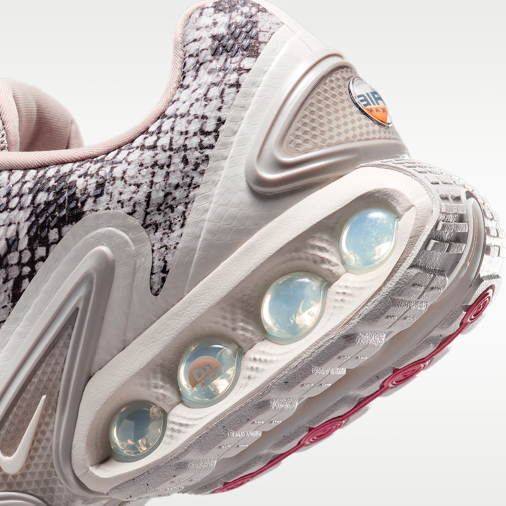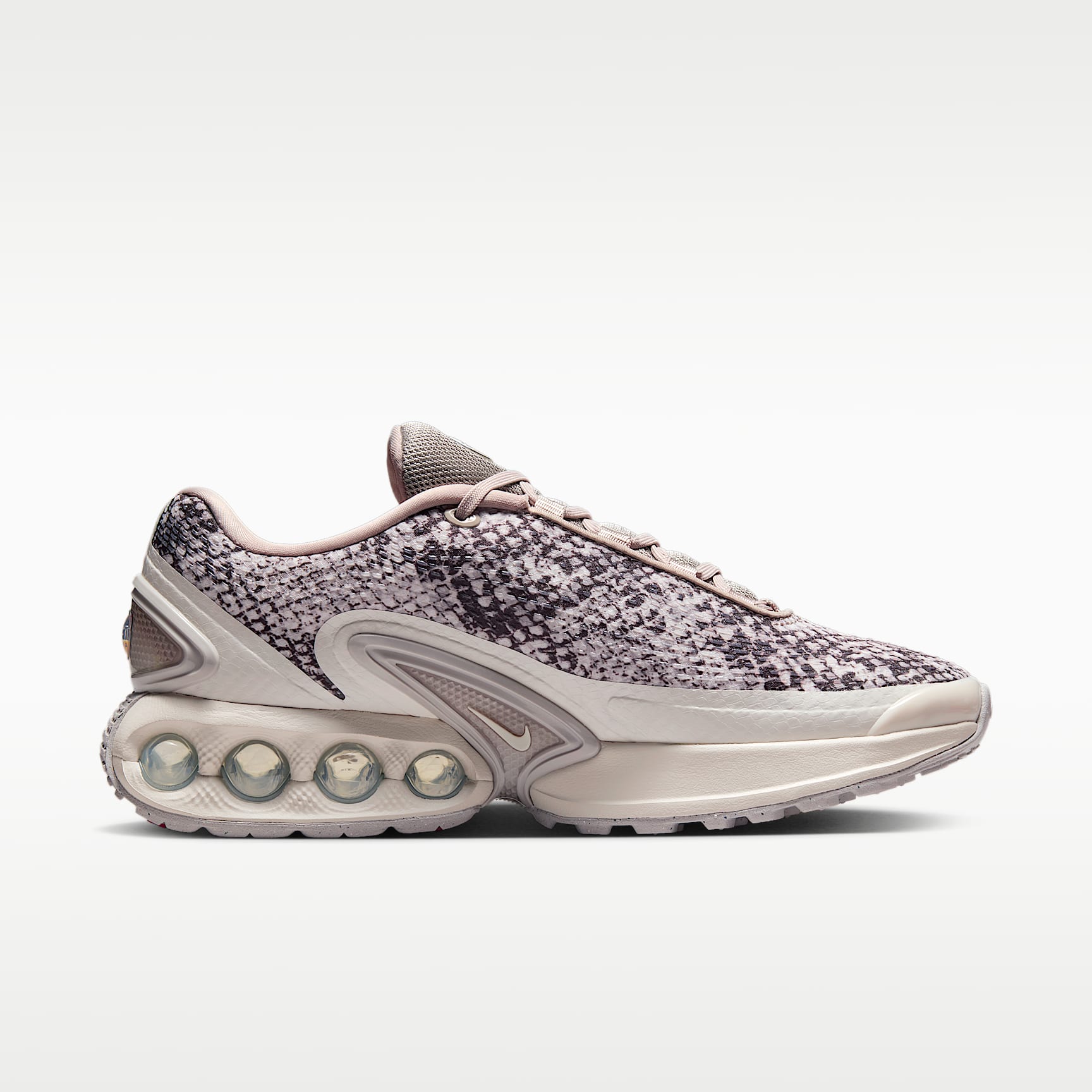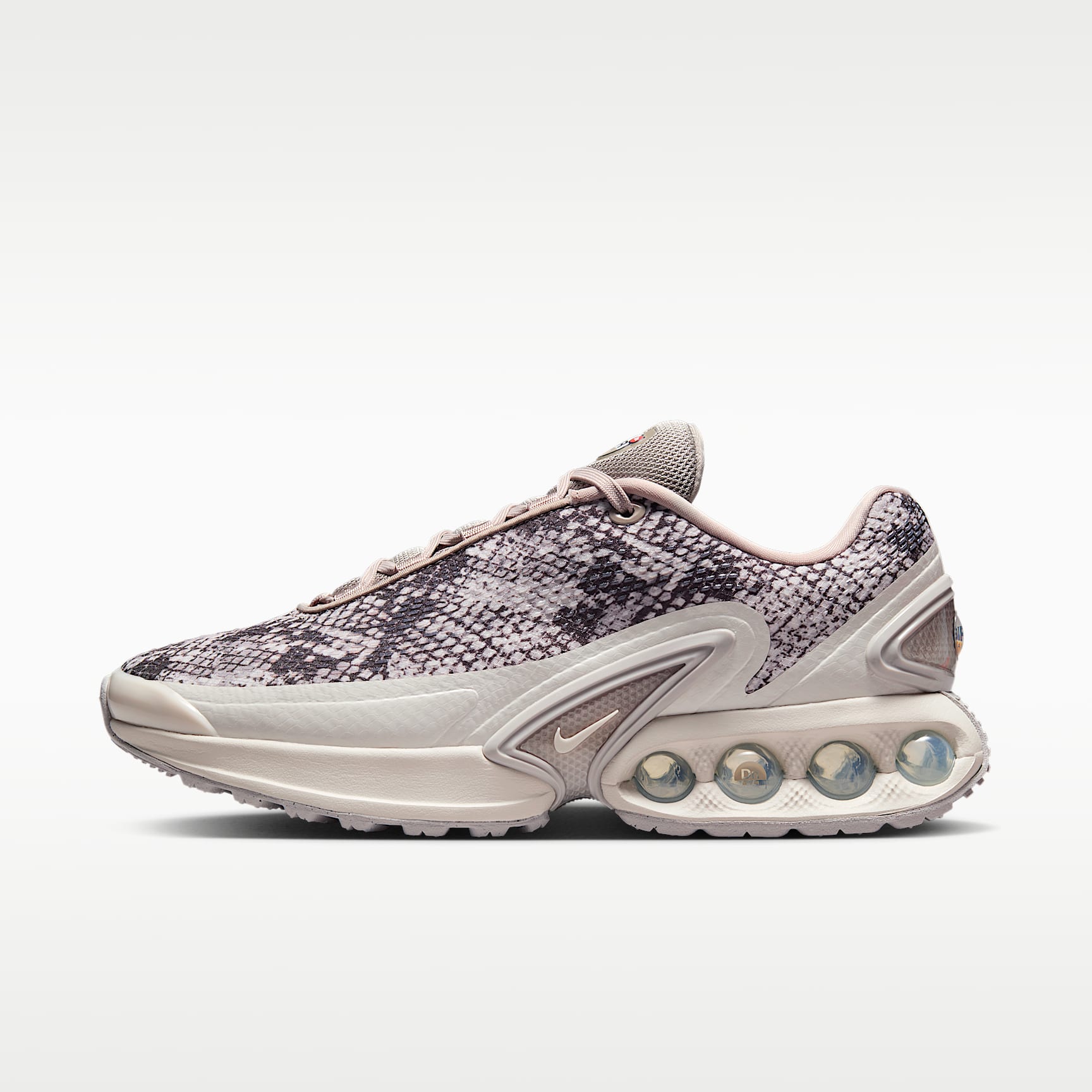 The Air Max Dn features our Dynamic Air unit system of dual-pressure tubes, creating a responsive sensation with every step. This results in a futuristic design that’s comfortable enough to wear from day to night. Plus, this premium version is updated with a snakeskin pattern throughout. Go ahead—feel the unreal. Maxxed Out Motion Our Dynamic Air unit system features two sets of dual-pressure tubes. With the firmest amount of pressure in the heel and the softest amount of pressure toward your midfoot, the air levels shift within each set for a smooth transition as you step. Maxxed Out Comfort Multilayered mesh on the upper feels lightweight and breathable, with a haptic print for a textured look. Plush foam surrounds the cushioning system for an enhanced feel that's uniquely soft and supportive. Maxxed Out Energy Providing comfort from top to bottom, this tactile design boasts performance-level bounce to energize your every move. After all, who said going to a concert isn’t a sport? Product Details * Foam midsole * Rubber outsole Nike Air Max Origins Revolutionary Air technology first made its way into Nike footwear in 1978. In 1987, the Air Max 1 debuted with visible Air technology in its heel, allowing fans more than just the feel of Air cushioning—suddenly they could see it. Since then, next-generation Air Max shoes have become a hit with athletes and collectors by offering striking color combinations and reliable, lightweight cushioning.