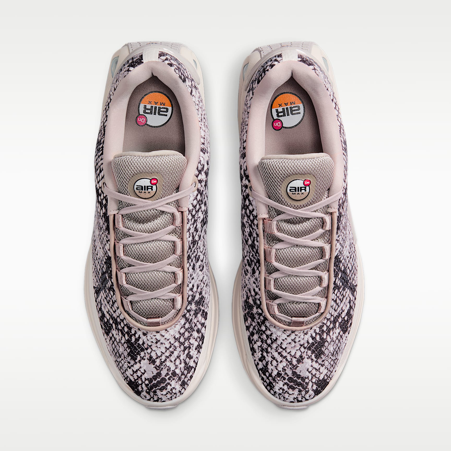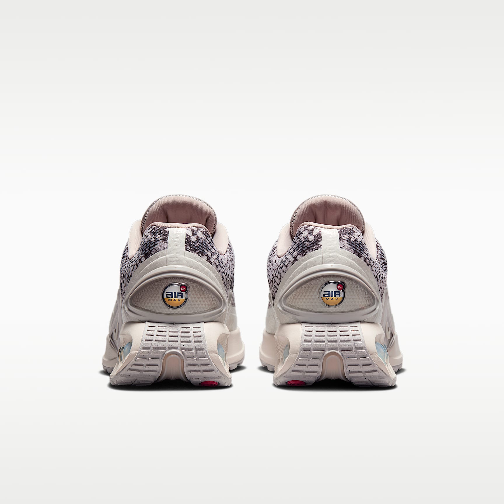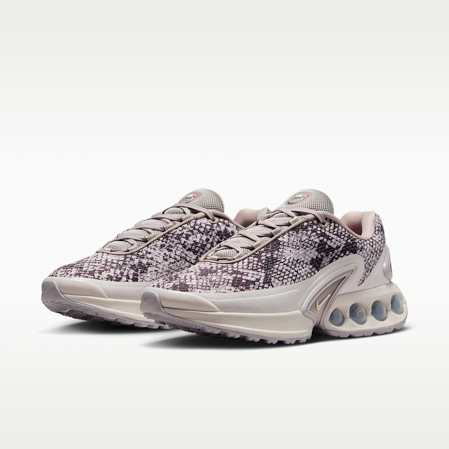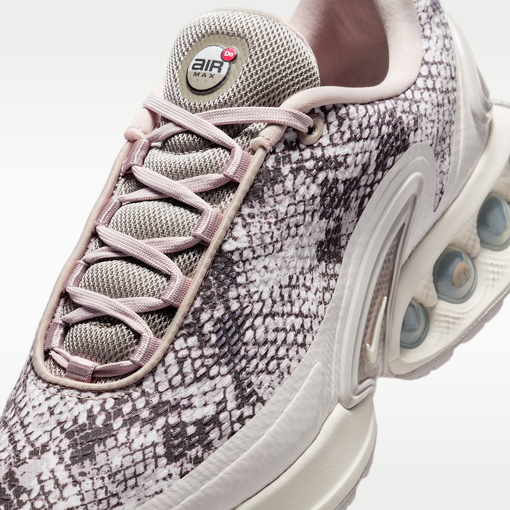 The Air Max Dn features our Dynamic Air unit system of dual-pressure tubes, creating a responsive sensation with every step. This results in a futuristic design that’s comfortable enough to wear from day to night. Plus, this premium version is updated with a snakeskin pattern throughout. Go ahead—feel the unreal. Maxxed Out Motion Our Dynamic Air unit system features two sets of dual-pressure tubes. With the firmest amount of pressure in the heel and the softest amount of pressure toward your midfoot, the air levels shift within each set for a smooth transition as you step. Maxxed Out Comfort Multilayered mesh on the upper feels lightweight and breathable, with a haptic print for a textured look. Plush foam surrounds the cushioning system for an enhanced feel that's uniquely soft and supportive. Maxxed Out Energy Providing comfort from top to bottom, this tactile design boasts performance-level bounce to energize your every move. After all, who said going to a concert isn’t a sport? Product Details * Foam midsole * Rubber outsole Nike Air Max Origins Revolutionary Air technology first made its way into Nike footwear in 1978. In 1987, the Air Max 1 debuted with visible Air technology in its heel, allowing fans more than just the feel of Air cushioning—suddenly they could see it. Since then, next-generation Air Max shoes have become a hit with athletes and collectors by offering striking color combinations and reliable, lightweight cushioning.