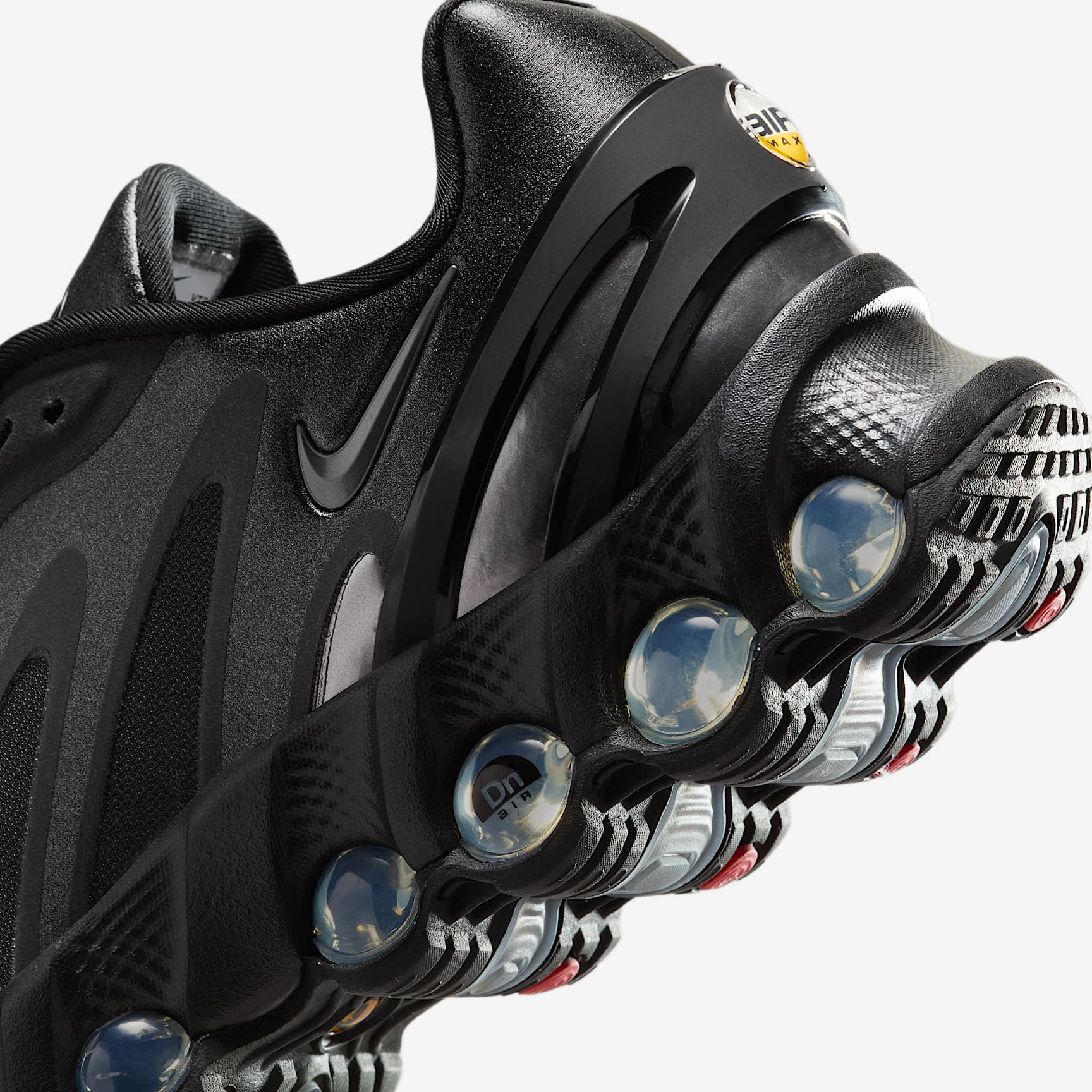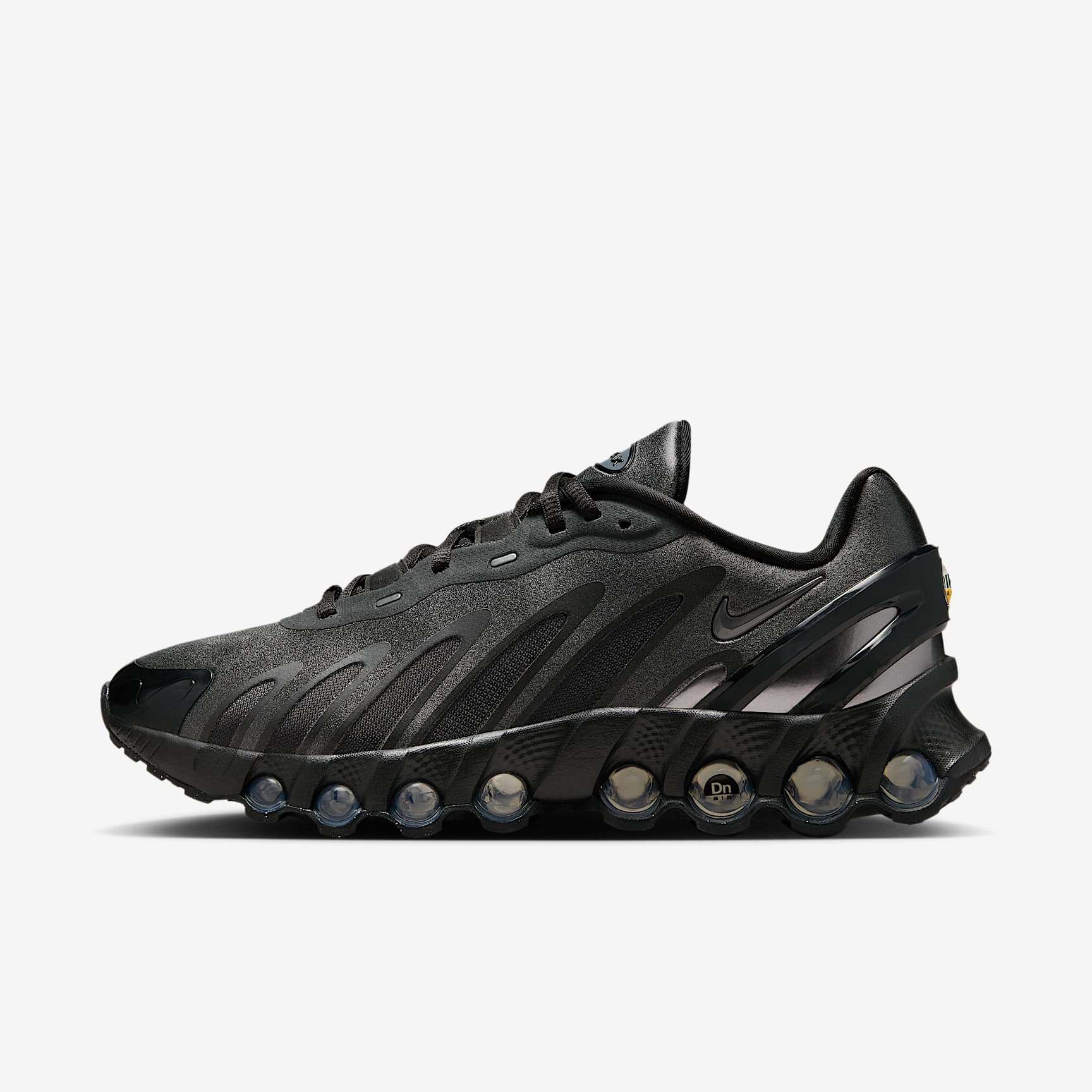 More Air, less bulk. The Dn8 takes our Dynamic Air system and condenses it into a sleek, low-profile package. Powered by eight pressurised Air tubes, it gives you a responsive sensation with every step. Enter an unreal experience of movement. Unreal cushioning Our Dynamic Air system features dual-chambered tubes with tuned pressure levels. This means airflow shifts within each set of tubes in response to compression, providing a custom cushioning experience. Unreal motion The full-length Dynamic Air system sits directly on top of the rubber outsole to get you as close to the ground as possible for a smoother transition. Plush foam is placed underfoot for additional comfort. Unreal flow The sculpted upper is made from lightweight mesh on top, while slashes on the sides reveal open mesh for more breathability. Design lines help radiate energy throughout your look. More benefits * The plastic heel clip helps hold your foot down for more containment. * The extra layer across the toe tip adds durability. Product details * Glossy Swoosh logo * Not intended for use as personal protective equipment (PPE) Max Air unit Visual stunner. Window to the sole. Legendary designer Tinker Hatfield took cues from inside-out Parisian architecture to re-establish Air technology as a leader in cushioning. Plush and comfortable, the Max Air unit has just the right amount of support.