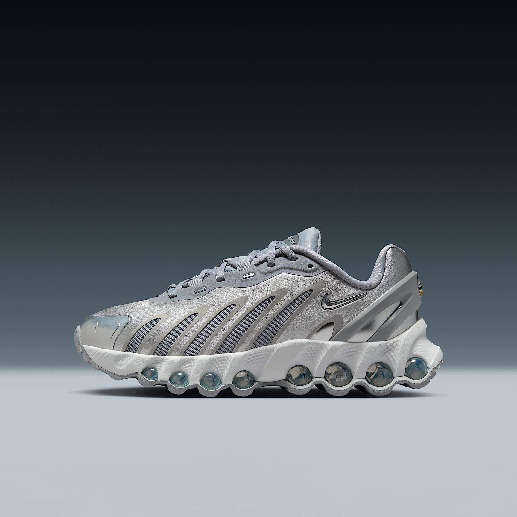 More Air, less bulk. The Dn8 takes our Dynamic Air system and puts it into a sleek, low-profile package. Powered by eight pressurised Air tubes, it gives you a bouncy sensation with every step. Enter an unreal experience of movement. Unreal cushioning Our Dynamic Air system features dual-chambered tubes with tuned pressure levels. This means air shifts within each set of tubes as you step, providing a cushioning experience that feels custom made. Unreal motion The Dynamic Air system sits directly on top of the rubber outsole to get you as close to the ground as possible for a smoother transition. Plush foam is placed underfoot for added comfort. Unreal flow The sculpted upper is made with lightweight closed mesh on top, while slashes at the sides reveal open mesh for more breathability. Design lines help radiate energy throughout your look. More benefits * Flex grooves in the outsole help every step feel natural. * The plastic heel clip helps hold your foot in place for added containment. * The extra layer across the toe tip adds durability. Product details * Classic laces * Reflective accents * Not intended for use as personal protective equipment (PPE)