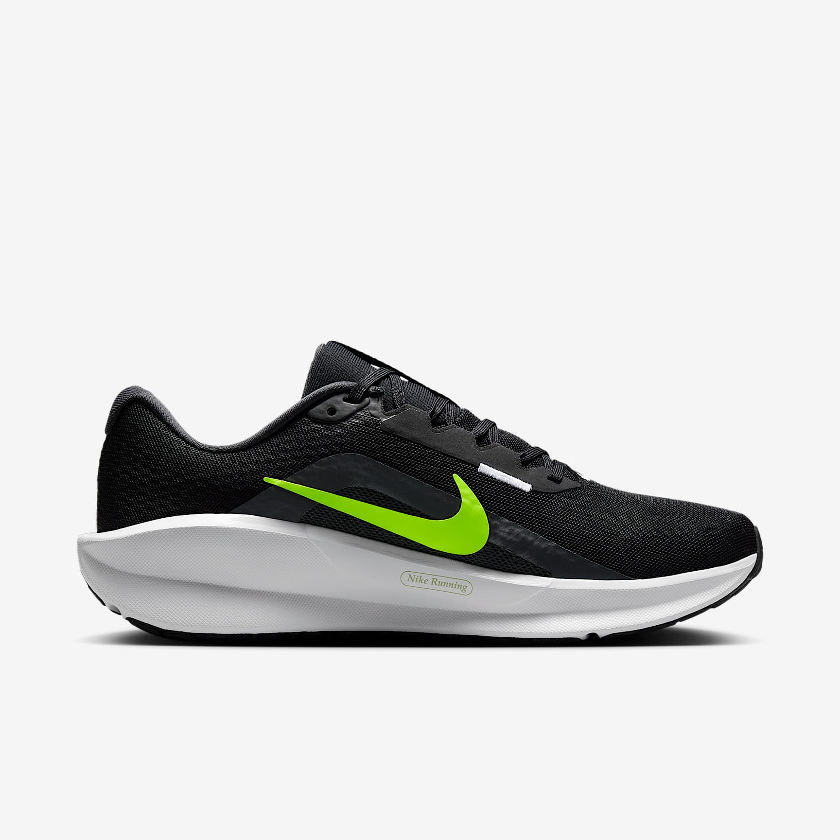 An updated internal fit band delivers a secure ride. Whether you're starting your running journey or an expert eager to switch up your pace, the Downshifter 13 is down for the ride. With breathable mesh and an updated internal fit band, it helps you find that extra gear or take that first stride towards chasing down your goals. Breathable upper Soft and comfortable mesh offers breathability. Midfoot Support Updated internal fit band offers containment around the midfoot for support and security. Soft midsole Soft foam midsole cushions each step. Reliable traction Rubber outsole offers reliable traction. Product details * Weight: approx. 287g (men's size 9) * Heel-to-toe drop: 10mm * Reflective design details * Not intended for use as personal protective equipment (PPE)