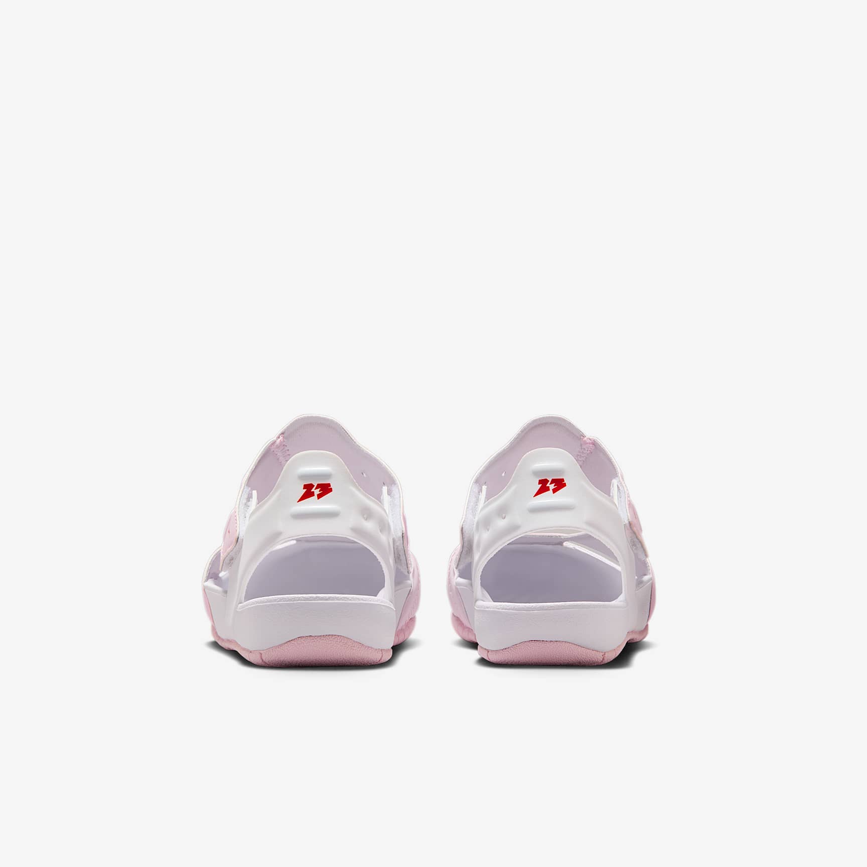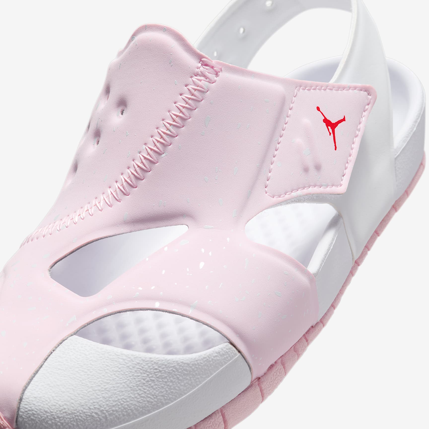 MADE TO RUN AND PLAY. Perfect for active kids, the Jordan Flare is light, breathable and comfortable. It's easy to get on, has a heel band to keep it from slipping off and is covered in the front to help prevent toe stubs. Benefits * Stretchy, quick-drying material has a snug, comfortable fit. * The soft rubber outsole provides traction on multiple surfaces and has grooves for flexibility. * A moulded heel piece helps the sandal fit snugly. * The textured footbed is soft and comfortable. * A hook-and-loop strap makes it easy to get on and off. Product details * Closed toe area