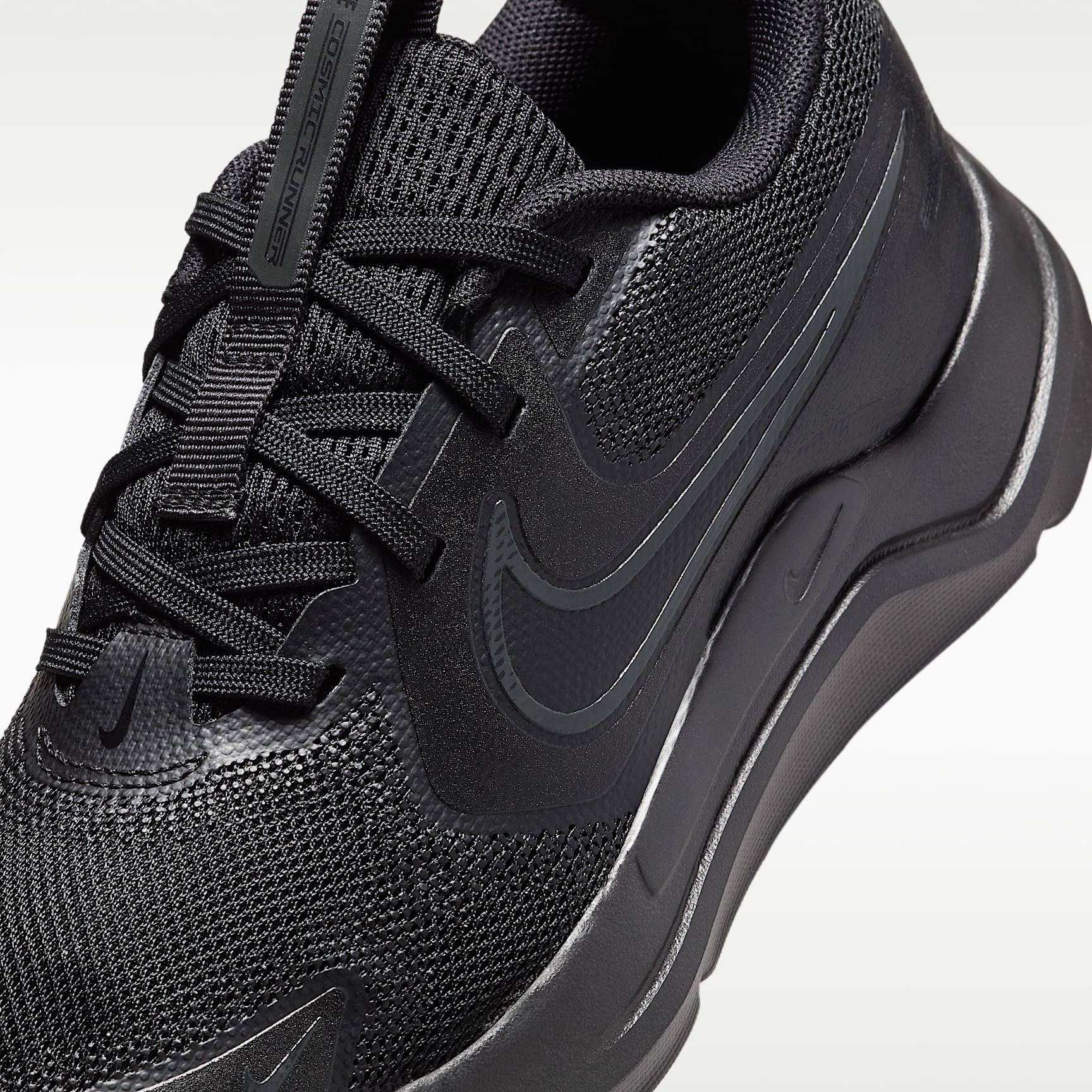 The world is your racetrack and slowing down isn't in your vocabulary. Loaded with stable cushioning and durability, the Nike Cosmic Runner helps support your every stride, so you can leave the competition in the dust. Breathability Meets Durability Lightweight mesh in the upper helps keep your feet cool. We reinforced the toes, sides and heels for added durability. Cushioning That Keeps Up Springy foam helps cushion your every stride, giving you the soft and supportive feel you need to go the distance. Ready, Set, Run! Durable two-part rubber outsole gives you the grip you need to confidently run on multiple surfaces. Product Details * Classic laces * Pull tabs on tongue and heel