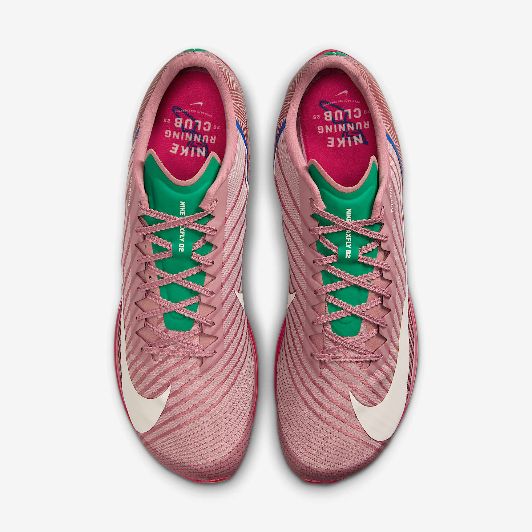 Air Zoom unit and carbon Flyplate provide spring to each step. Fit for the world's fastest, the Maxfly 2 is back in the starting blocks. Designed for the 100 meters to 400 meters (hurdle events too), it combines an ultra-aggressive feel with the responsiveness of an Air Zoom unit to help propel the speediest sprinters on the planet. This special design is inspired by The Armory in New York, where track-and-field athletes of all abilities are welcome to step into the blocks. Behind the Design The Armory's oval surface color appears along upper. Green is from The Armory’s infield. Blue nods to warm-up area. Hits of red stem from The Armory’s logo. Crisscrossed print speaks to its iconic ceiling. Flyweave Construction Nike Flyweave construction on the upper provides a secure and conforming fit for various foot shapes. Carbon Flyplate The carbon Flyplate's shape and stiffness help keep you on your toes and minimize deceleration. Zoom, Zoom The forefoot Air Zoom unit has two chambers to give you a propulsive feel and stability from takeoff to the tape. What's New About the Maxfly 2? Lighter, more responsive than the Maxfly, the Flyplate's shape and stiffness give you a propulsive feel. Middle spike removed from Maxfly and elevated platform on big-toe side help spikes feel more stable.