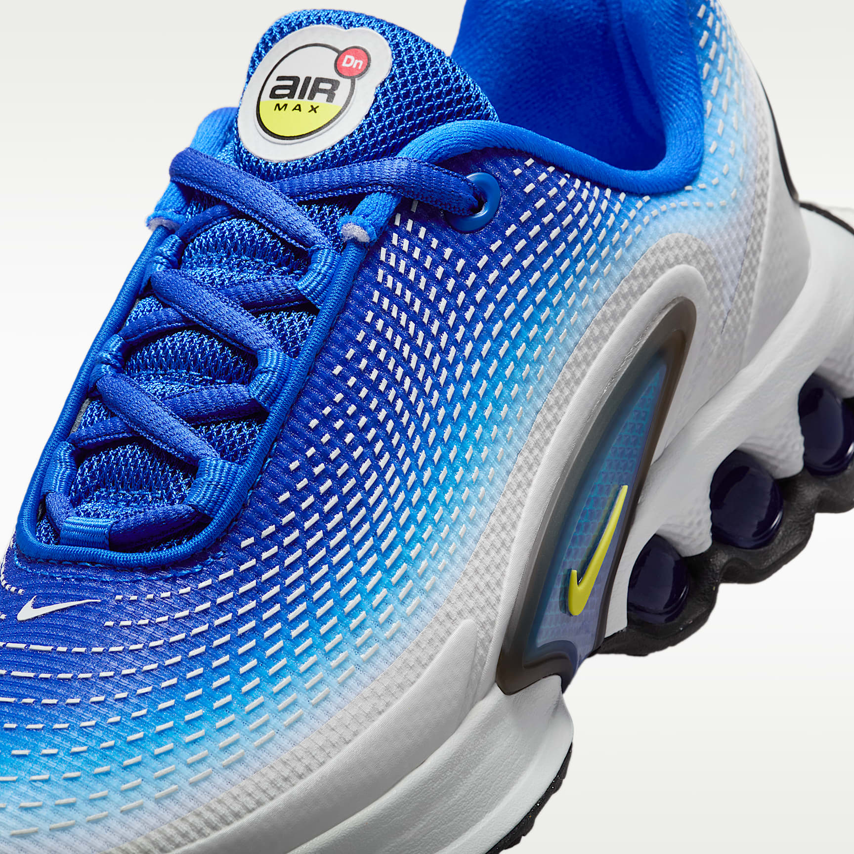 Say hello to the next generation of Air technology. The Air Max Dn features our Dynamic Air unit system of dual-pressure tubes, creating a bouncy sensation with every step. This results in a futuristic design that's comfortable enough to wear all day. Go ahead—Feel the Unreal. Maxxed Out Motion Our Dynamic Air unit system features 2 sets of dual-pressure tubes. We tuned each set to a different pressure level, putting the firmest in the heel and the softest under the middle of your foot. Air shifts within each set as you step, creating a smooth transition underfoot. Maxxed Out Comfort Multilayered mesh on the upper is lightweight and breathable, with a dimensional print that adds a fun textured look. Plus, our Dynamic Air unit system works with plush foam to create a soft and supportive feeling underfoot. Maxxed Out Energy Providing comfort from top to bottom, the design of this sneaker boasts performance-level bounce to energize your every move. After all, who said going to a concert isn't a sport? Product Details * Classic laces * Rubber outsole * Matte accents Nike Air Max Origins Revolutionary Air technology first made its way into Nike footwear in 1978. In 1987, the Air Max 1 debuted with visible Air technology in its heel, allowing fans more than just the feel of Air cushioning—suddenly they could see it. Since then, next-generation Air Max shoes have become a hit with athletes and collectors by offering striking color combinations and reliable, lightweight cushioning.
