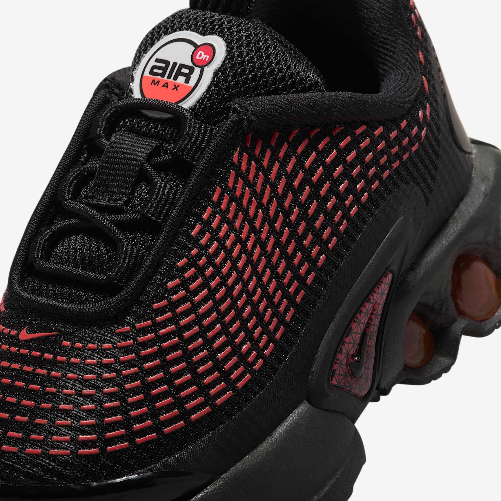 Introduce your little one to the next generation of Air technology. Designed to feel bouncy underfoot, the Air Max Dn features dynamic Air units for a futuristic design that's comfortable enough to wear all day. Plus, the elastic laces help make them easy to get on squirming feet. Maxxed Out motion Nike Air units help cushion every step your little one takes, adding bounce to their day. Maxxed Out comfort Multilayered mesh on the upper is lightweight and breathable, with a dimensional print that adds a fun textured look. Plus, plush foam creates a soft and supportive feeling underfoot. Maxxed Out energy Providing comfort from top to bottom, the design of this sneaker boasts performance-level bounce to energise your child's every move. Product details * Elastic laces * Rubber outsole