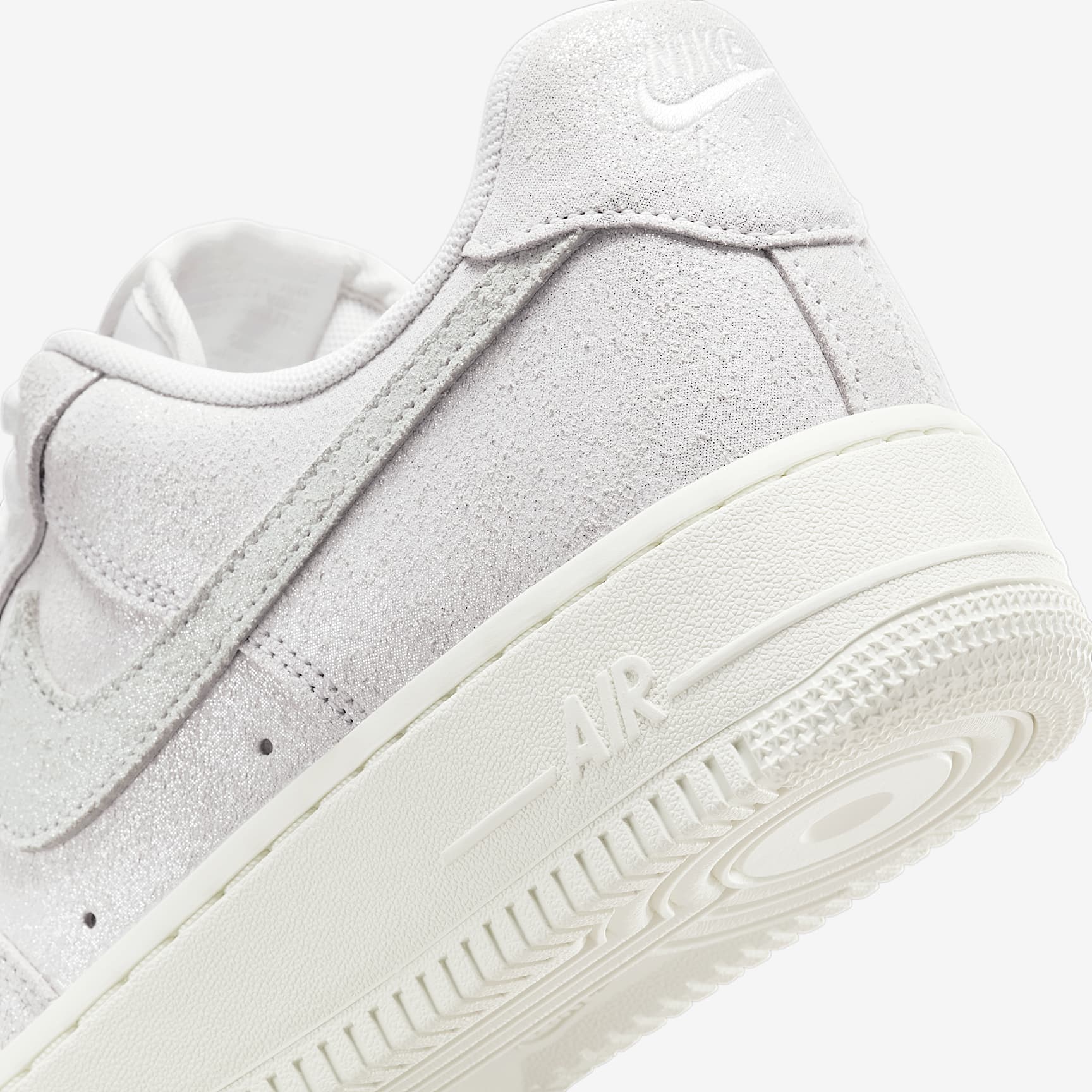 Comfortable, durable and timeless—it’s number one for a reason. The '80s hoops classic dials up a classic with soft, glitter-dusted suede for style that tracks. Benefits * Durable leather with stitched overlays adds heritage style, durability and support. * Originally designed for performance hoops, the Nike Air cushioning adds lightweight, all-day comfort. * Low-cut silhouette adds a clean, streamlined look. * Padded collar feels soft and comfortable. Product Details * Foam midsole * Perforations on toe * Rubber outsole Air Force 1 Debuting in 1982 as a basketball must-have, the Air Force 1 came into its own in the '90s. The clean look of the classic white-on-white AF1 was endorsed from the basketball courts to the block and beyond. Finding its rhythm in hip-hop culture, releasing limited collabs and colorways, Air Force 1 became an iconic sneaker around the globe. And with over 2000 iterations of this staple, its impact on fashion, music and sneaker culture can’t be denied.