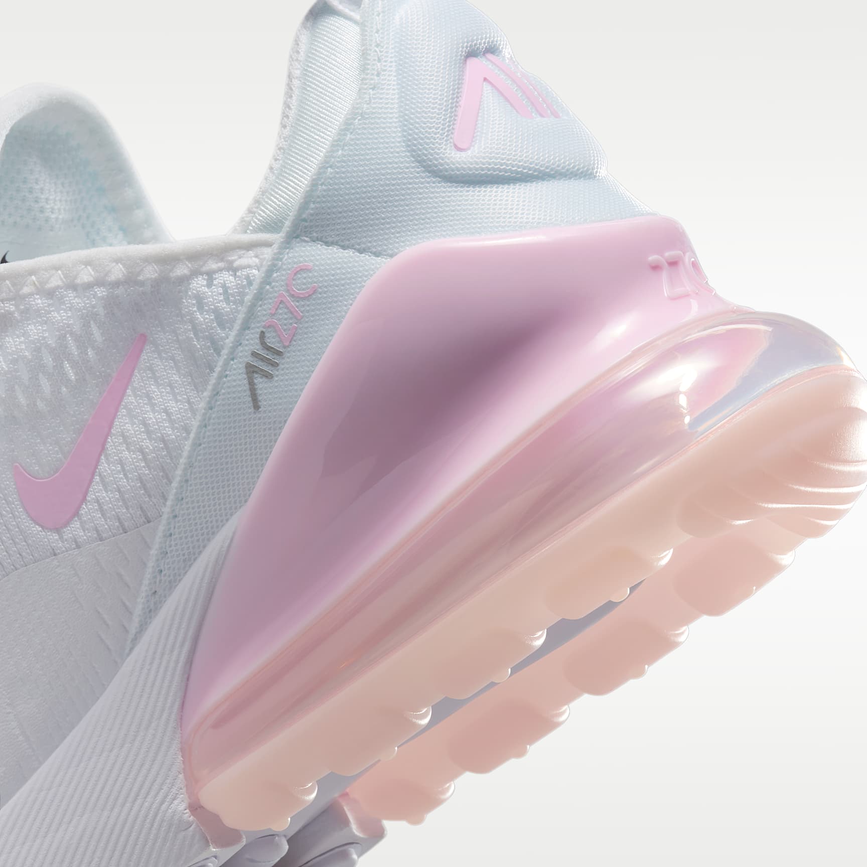 SHOW LOVE TO BIG AIR. Nike's first lifestyle Air Max shoe is everything you imagined with the Nike Air Max 270. What we love most (for obvious reasons): the BIG, bold wraparound 270 Air unit to showcase our greatest technology everywhere you go. Benefits * Woven and synthetic fabric on the upper provides a lightweight fit and airy feel. * The 270 Max Air unit provides 270 degrees of see-through cushioning. * Foam cushioning underfoot feels soft and lightweight. * Rubber outsole provides durable traction. * Heel pull tab helps you put the shoes on and take them off easily.