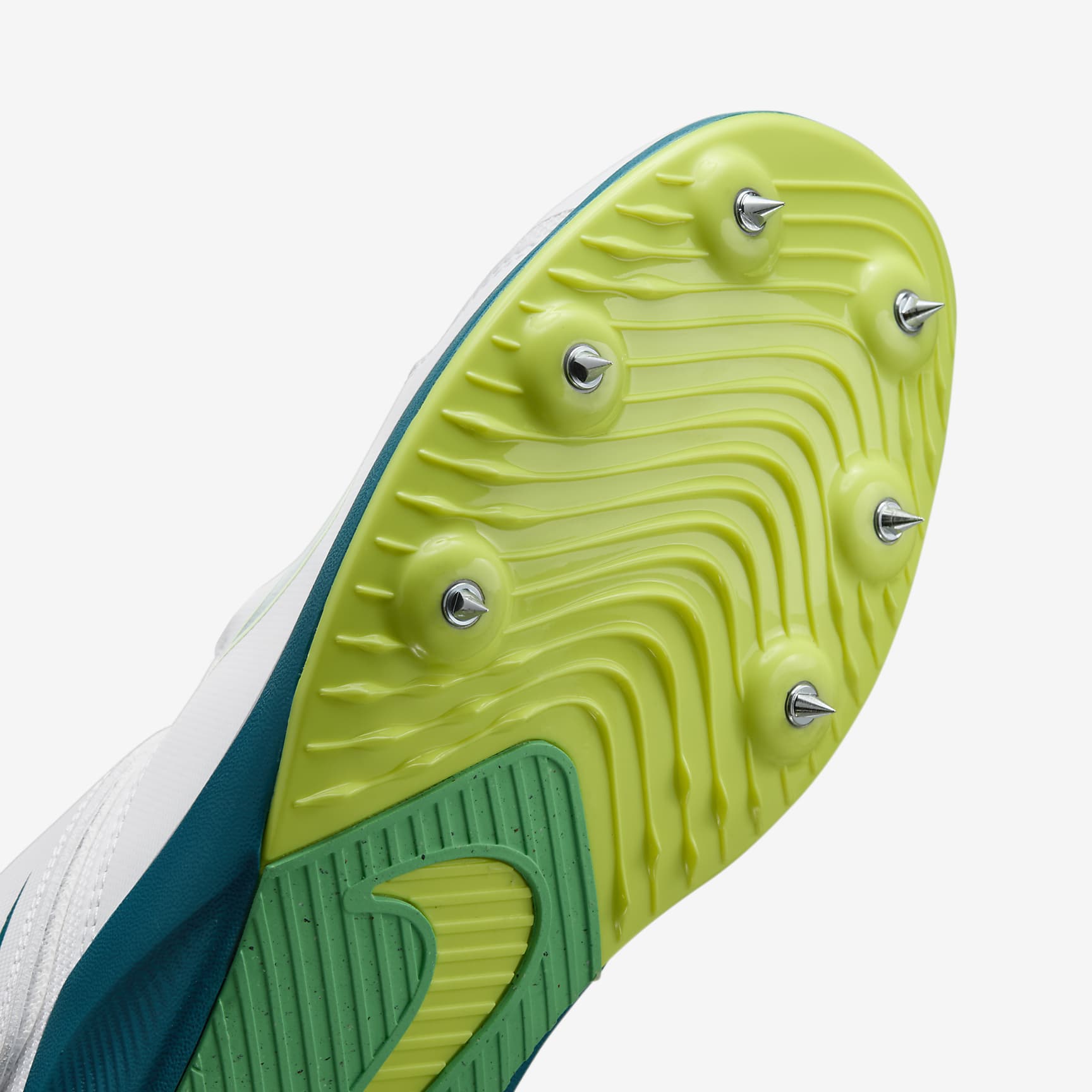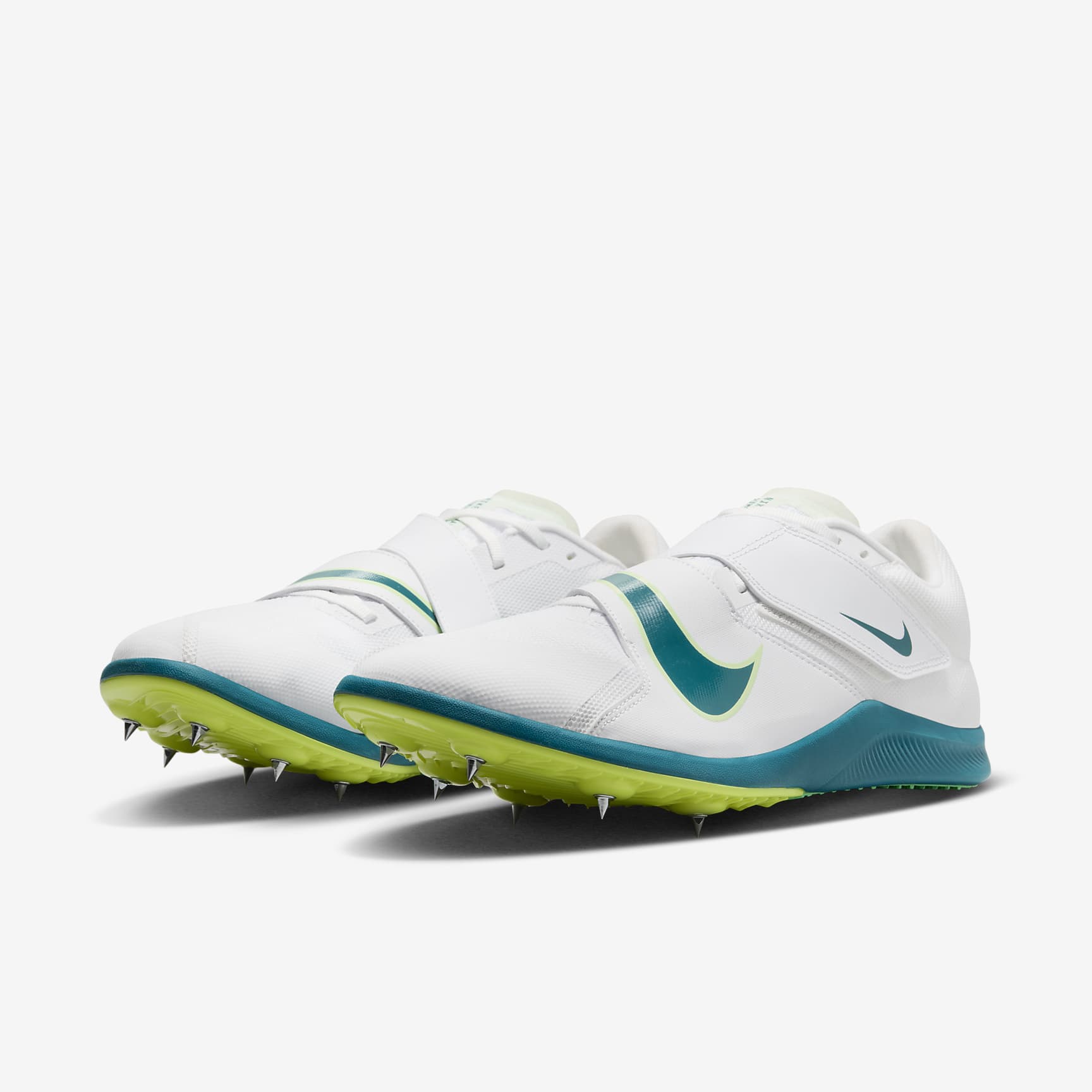 A lightweight heel and wider shoe base help you jump at full throttle. Pop a personal best in a model specifically designed for jumping events. Forefoot spikes and secondary heel traction give you confidence in wet or dry conditions on various track surfaces and different take-off boards. A thick, yet lightweight cushioned heel and a wider shoe base help withstand the demands of jumping at full throttle. Optimal containment Diagonal midfoot strap provides optimal containment, while allowing you to quickly readjust your spikes in between jumps. The design helps make sure your foot doesn't move around during jumping. Cushioning for your event Higher-stacked midfoot and heel cushion provide a smooth transition and take-off. That combination also offers supportive cushioning while jumping. Spring in your jump Six specifically placed forefoot spikes offer traction. Combined with the grippy texture on the heel, it delivers dependable traction on various surfaces. More benefits * Lightweight, snappy plate gives you aggressive sturdiness and stability that's ideal for both sprinting and take-off. * Padded collar delivers support and comfort. Product details * Designed for long jump, triple jump, high jump and pole vault * Foam midsole