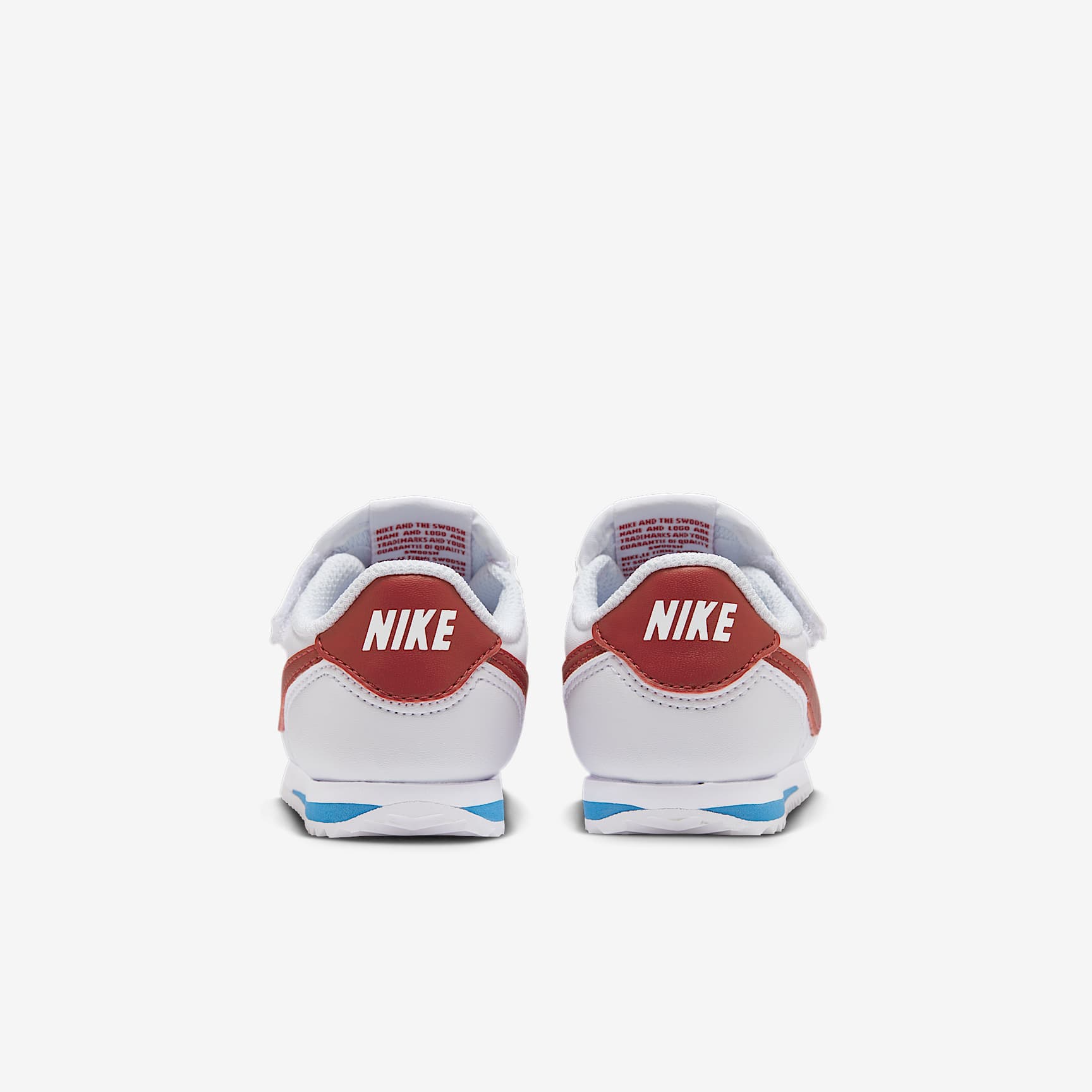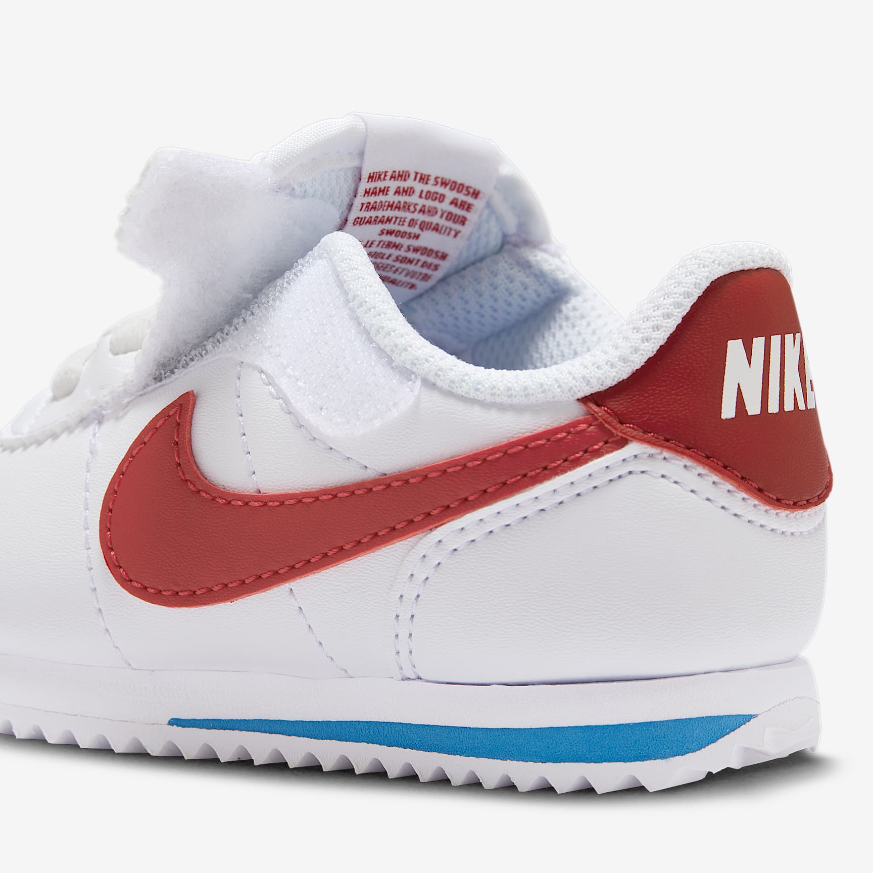 How do you make a classic like the Cortez even better? Make it quick and easy to put on, of course. The lace area opens up wide so squirming feet can slip in easily. A hook-and-loop strap lets you lock in or adjust the fit fast. Plus, extra wiggle room in the toe box helps give little feet the space they need to feel comfortable. Benefits * FlyEase is now Nike EasyOn. Our helpful Nike EasyOn features empower kids to do it themselves so they can focus on what matters most: play. * Hook-and-loop strap lets you open the lace area like a book to help make it easy to slip these on squirming feet. * Foam midsole with iconic wedge insert delivers comfort from the get-go—just like the '72 original. * Rubber outsole with herringbone pattern delivers durable traction and heritage style. Product Details * Stitched-down classic laces