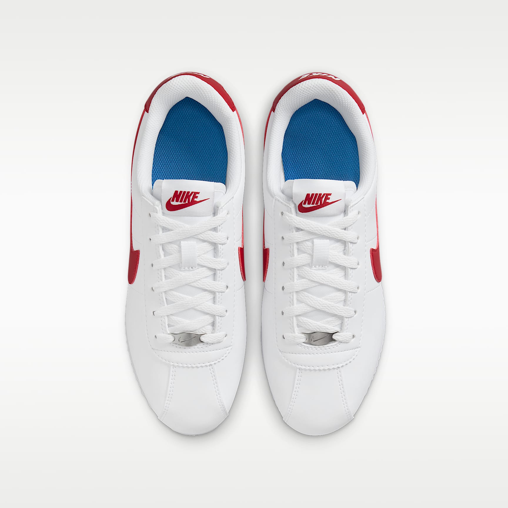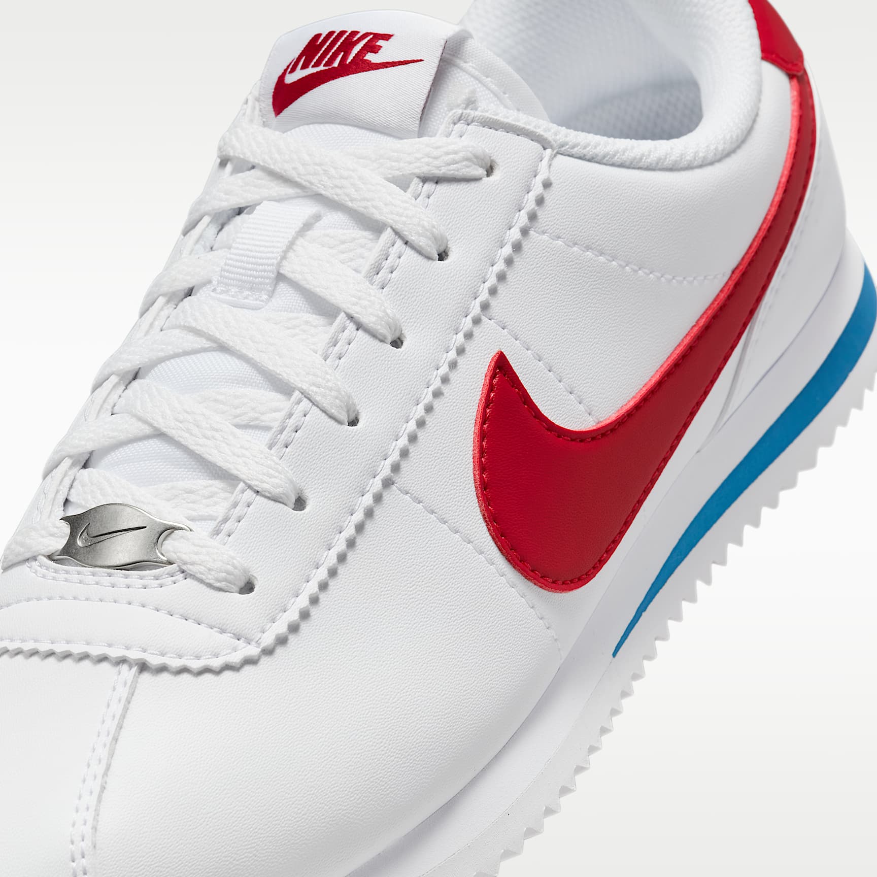From track superstar to fashion phenom, the Cortez pairs retro appeal with modern comfort. We updated the shape to give you extra room in the toe box and above your foot. Plus, a sponge-soft midsole and see-saw detailing on the outsole deliver the heritage vibes you know and love. What's New? We updated the Cortez to give it a wider shape at the toe box and more space above your foot. The result? A comfortable fit that maintains the original's classic look. Original Cortez Feel Inspired by the ’72 original, the foam midsole with iconic wedge insert delivers comfort from the get-go. Throwback Traction Rubber in the outsole pairs with a herringbone pattern to deliver durable traction and heritage Nike style. More Benefits * Synthetic leather upper helps add durability and structure. * Padded, low-cut collar looks sleek and feels great. Product Details * Classic laces * Woven tongue label