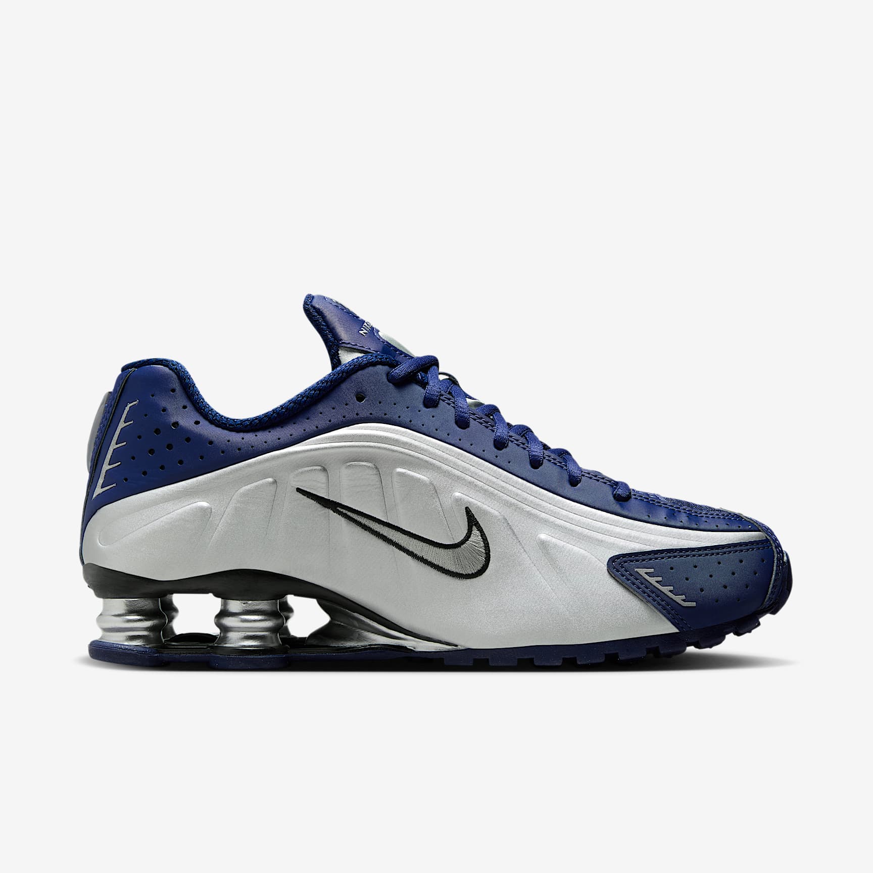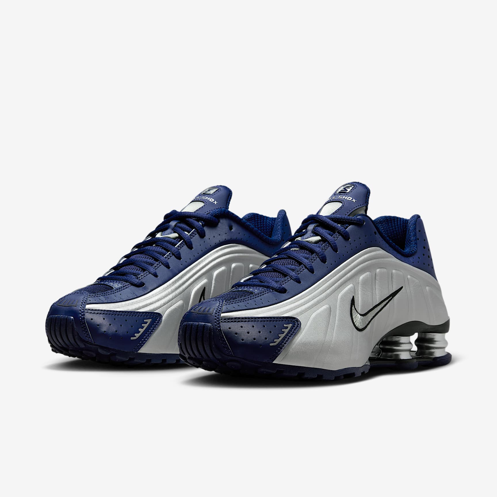 A recrafted version of the 2001 icon, the Nike Shox R4 replicates the original with its synthetic and textile upper, design lines and laser perforations. Nike Shox cushioning distributes weight to maximise comfort and provide a performance-inspired look. Benefits * Originally designed to support the stride of runners, Nike Shox columns provide responsive cushioning. * The upper is a near-exact replica of the original 2001 Nike Shox. * A modified, circular Waffle outsole gives traction. * Laser perforations throughout provide ventilation. Product details * Not intended for use as personal protective equipment (PPE)