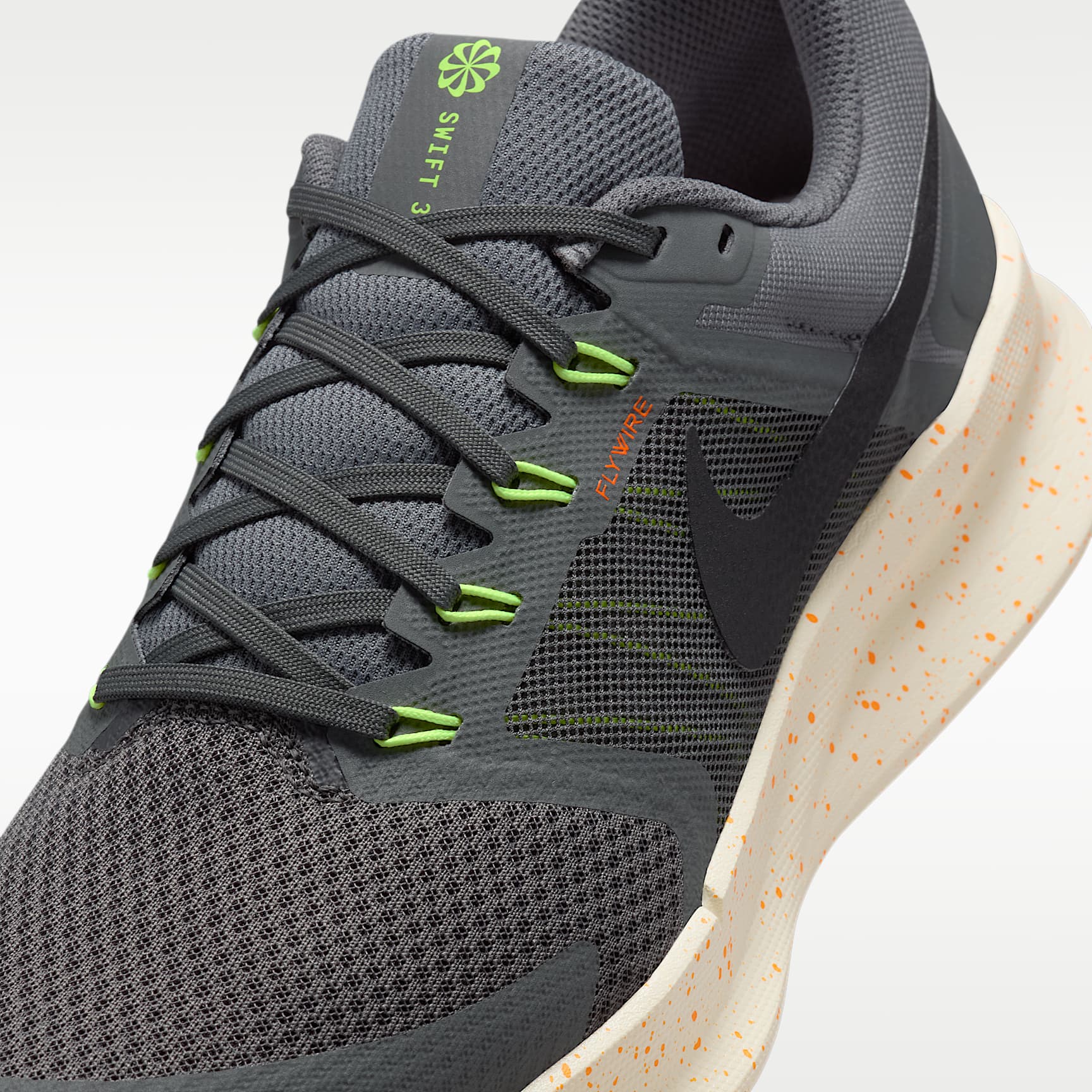 Flywire cables and plush foam offer a secure, steady ride. No matter the run, the Run Swift 3 helps you get out the door with a modified design that’s supportive, durable and comfortable all around. Foam cushioning delivers a soft underfoot feel, while a higher foam height than the previous iteration gives you a plush sensation with every step. Mesh on Upper Mesh on upper adds breathability. Flywire Cables Flywire cables provide a supportive feel when you tighten the laces. Foam Midsole Plush foam midsole cushions each step. Natural Moves Grooves on the rubber outsole help your foot move naturally. Product Details * Weight: Approx. 306g/10.8oz (Men's US 10) * Heel-to-toe drop: 10mm