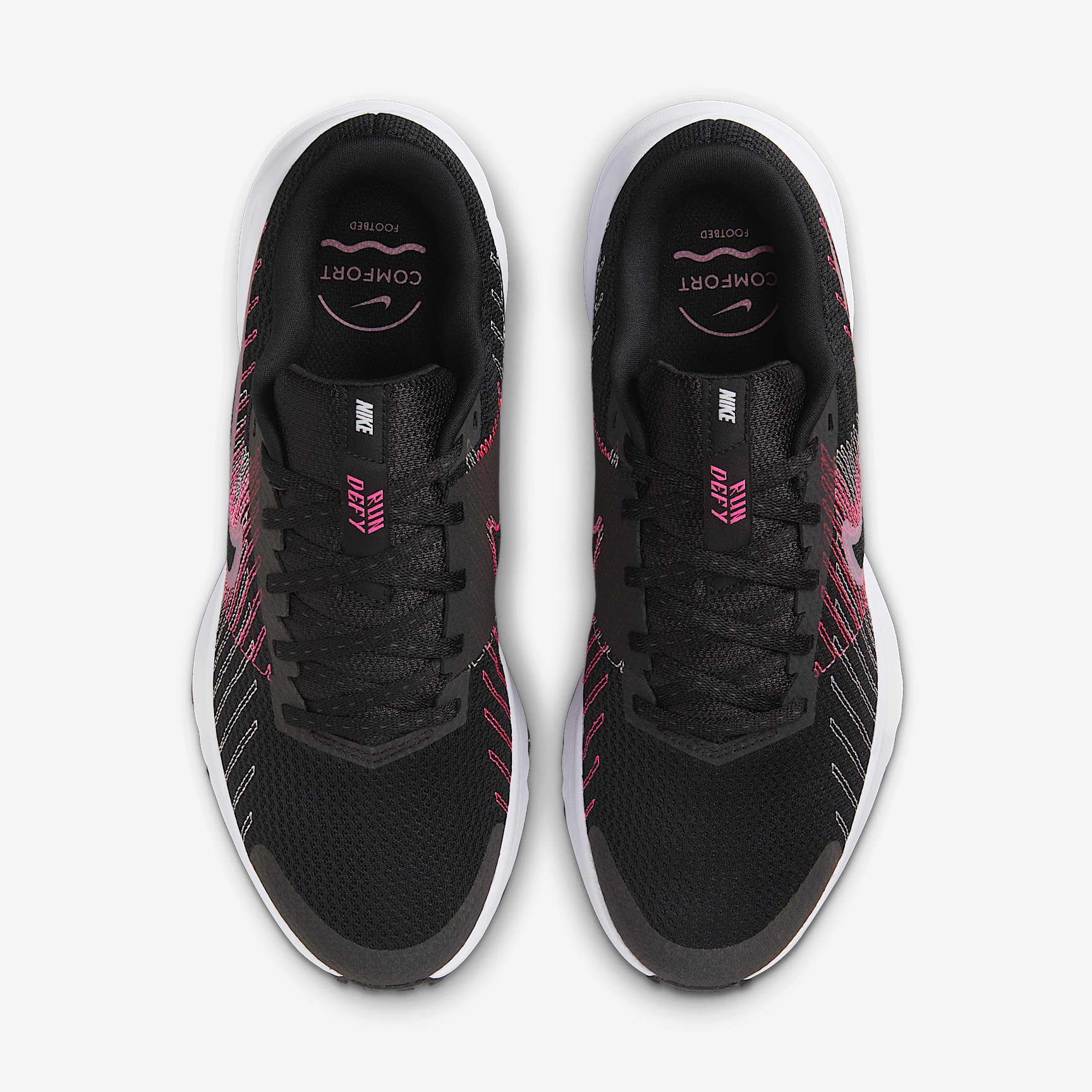 Run by your own rules in the all-new Nike Defy. A foam midsole, breathable upper and reliable traction combine to make a shoe that’s raring for runs of all lengths and paces. Key Features * Mesh on upper adds breathability. * Foam midsole delivers a soft ride. * Flex grooves create a cushioned effect for your run. * Waffle outsole is a made of a durable, flexible material that helps keep you on the move. * Increased rubber at the outsole provides traction and durability. Product Details * Weight: Approx. 233 g/8.2 oz (Women’s US 8) * Heel-to-toe drop: 10 mm