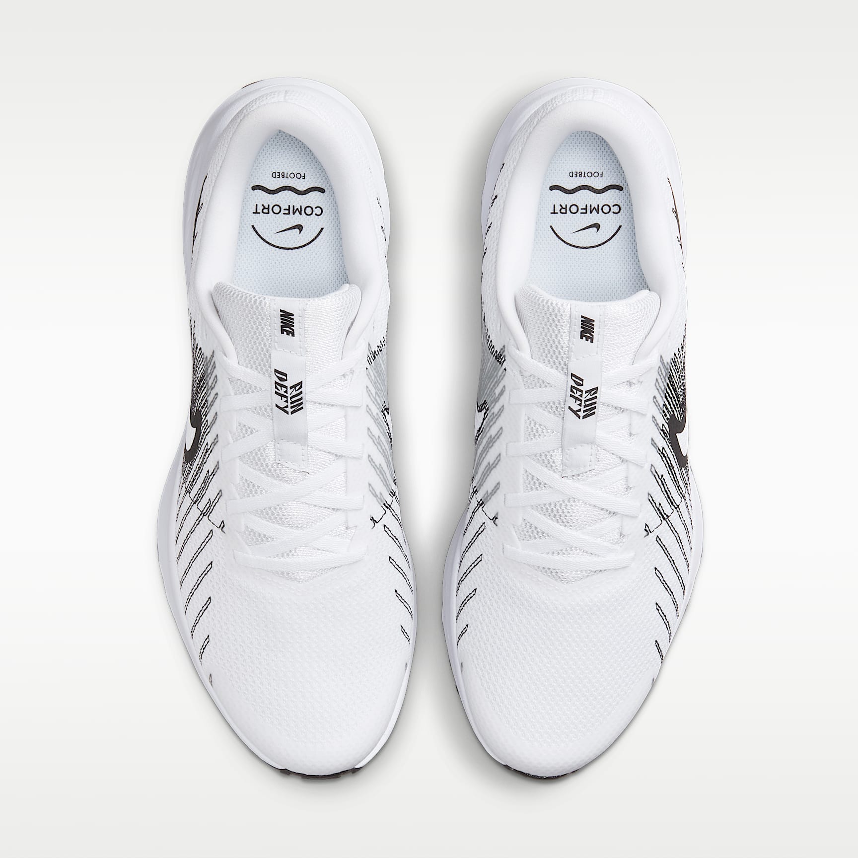 Waffle outsole and flex grooves help keep you cushioned and stable. Run by your own rules in the Nike Run Defy. A foam midsole, breathable upper and reliable traction combine to make a shoe that’s ready for runs of all lengths and paces. Mesh on Upper Mesh on upper adds breathability. Foam Midsole Foam midsole delivers a soft ride. Flex Grooves Flex grooves create a cushioned effect for your run. Waffle Outsole Waffle outsole is a made of a durable, flexible material that helps keep you on the move. Product Details * Weight: Approx. 281g/9.9oz (Men's US 10) * Heel-to-toe drop: 10mm