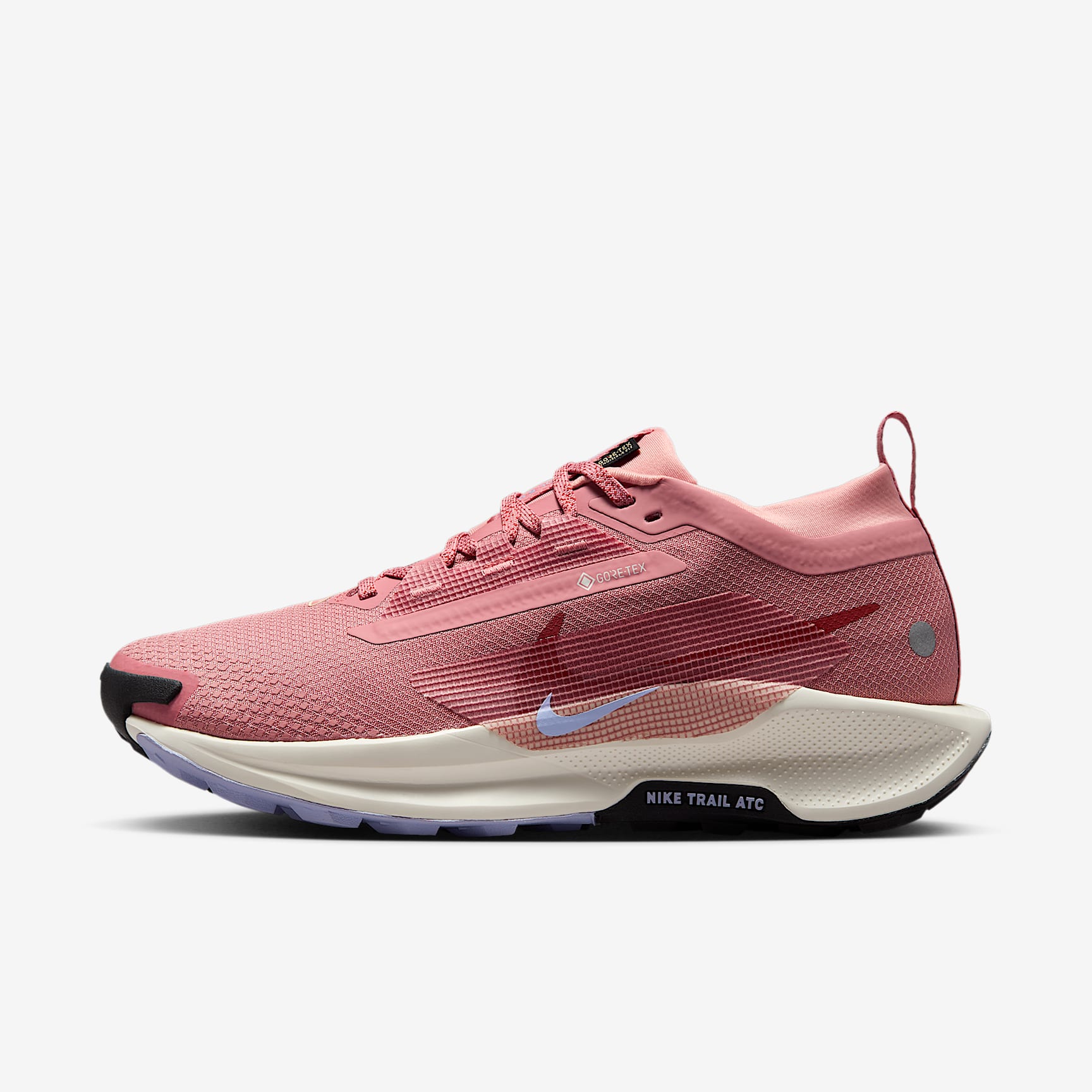The winterized Pegasus Trail 5 provides wet-weather protection for trail running. A waterproof GORE-TEX upper, an all-terrain outsole and reflective details help you comfortably take on the elements. With a ReactX foam midsole, it gives you responsive cushioning for an energized ride. GORE-TEX Upper Waterproof GORE-TEX upper and 3-D print toe cap help keep water out so your feet stay dry. ReactX Foam ReactX foam midsole gives you lightweight energy return. ATC Outsole Nike Trail ATC outsole is made with an all-terrain compound that’s great even in wet weather. High Ankle Cuff A sturdy, high ankle cuff helps keep debris and trail rubble from entering your shoe. What's New? ReactX foam midsole is 13% more responsive than previous React technology. Product Details * Weight: Approx. 253g/8.9oz (Women's US 8) * Heel-to-toe drop: 9.5mm * Reflective detail on side of heel * Not intended for use as Personal Protective Equipment (PPE)