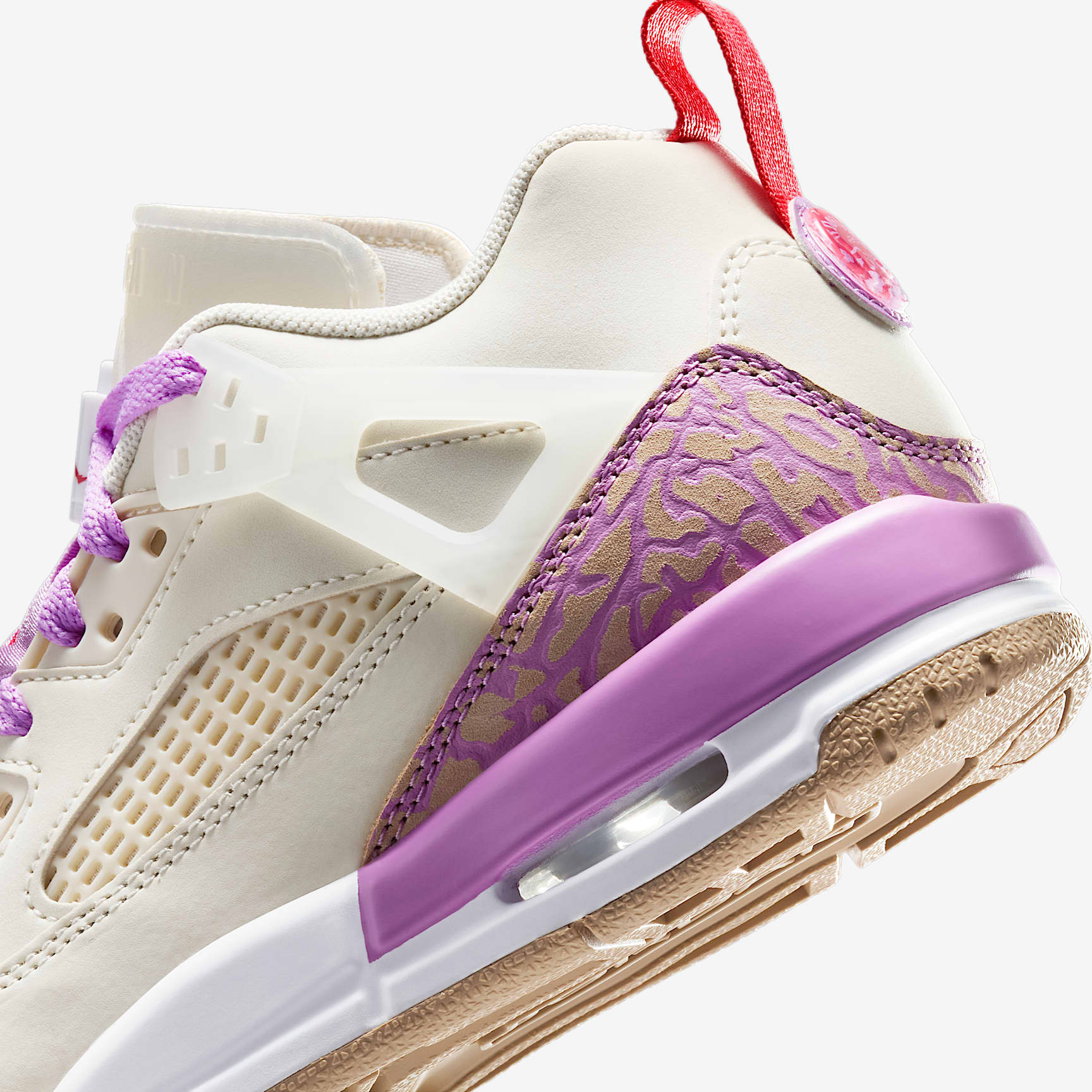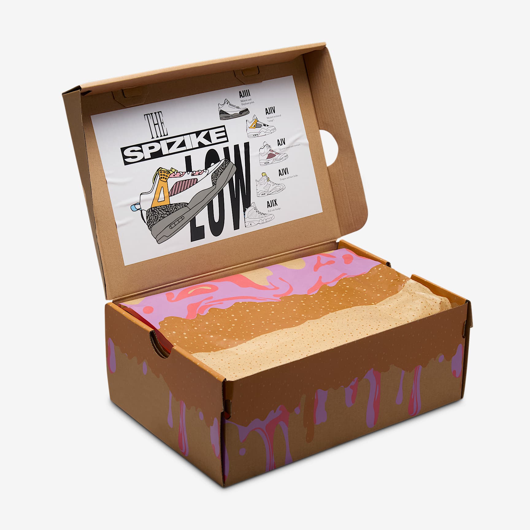 This Spizike celebrates one of our favourite combos: peanut butter and jelly! Fun colours add mouth-watering style to sneakers that honour Spike Lee formally introducing Hollywood and hoops. What more can you ask for? Ya dig? Benefits * Real and synthetic leather in the upper offers durability and structure. * Nike Air technology absorbs impact for cushioning with every step. * Soft foam cushions your feet. * Rubber outsole helps provide durable traction. * Special packaging celebrates one of the most iconic partnerships of all time: PB&J. Product details * Classic laces * Toggle on laces * Pull tab on heel