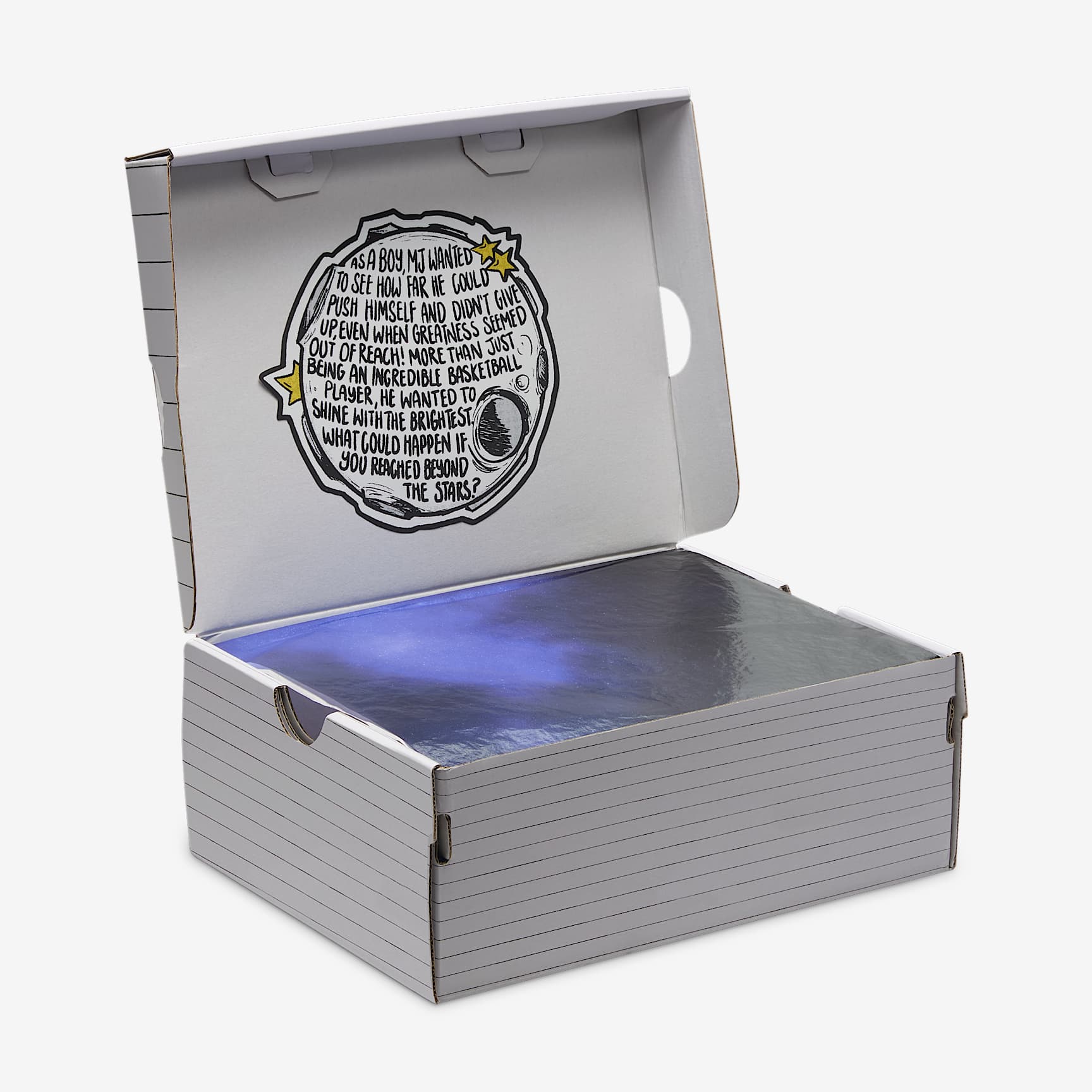 MJ isn't afraid to set goals others believe to be impossible. These Jordans honour his belief in himself with an out-of-this-world design. Glow-in-the-dark stars at the toe and a glow-in-the-dark Swoosh logo remind you to aim high. The sky is not the limit. Benefits * Real and synthetic leather in the upper adds durability and structure. * Nike Air technology absorbs impact for cushioning with every step. * Foam midsole provides lightweight cushioning. * Rubber outsole adds durable traction. Product details * Classic laces * Wings logo on heel