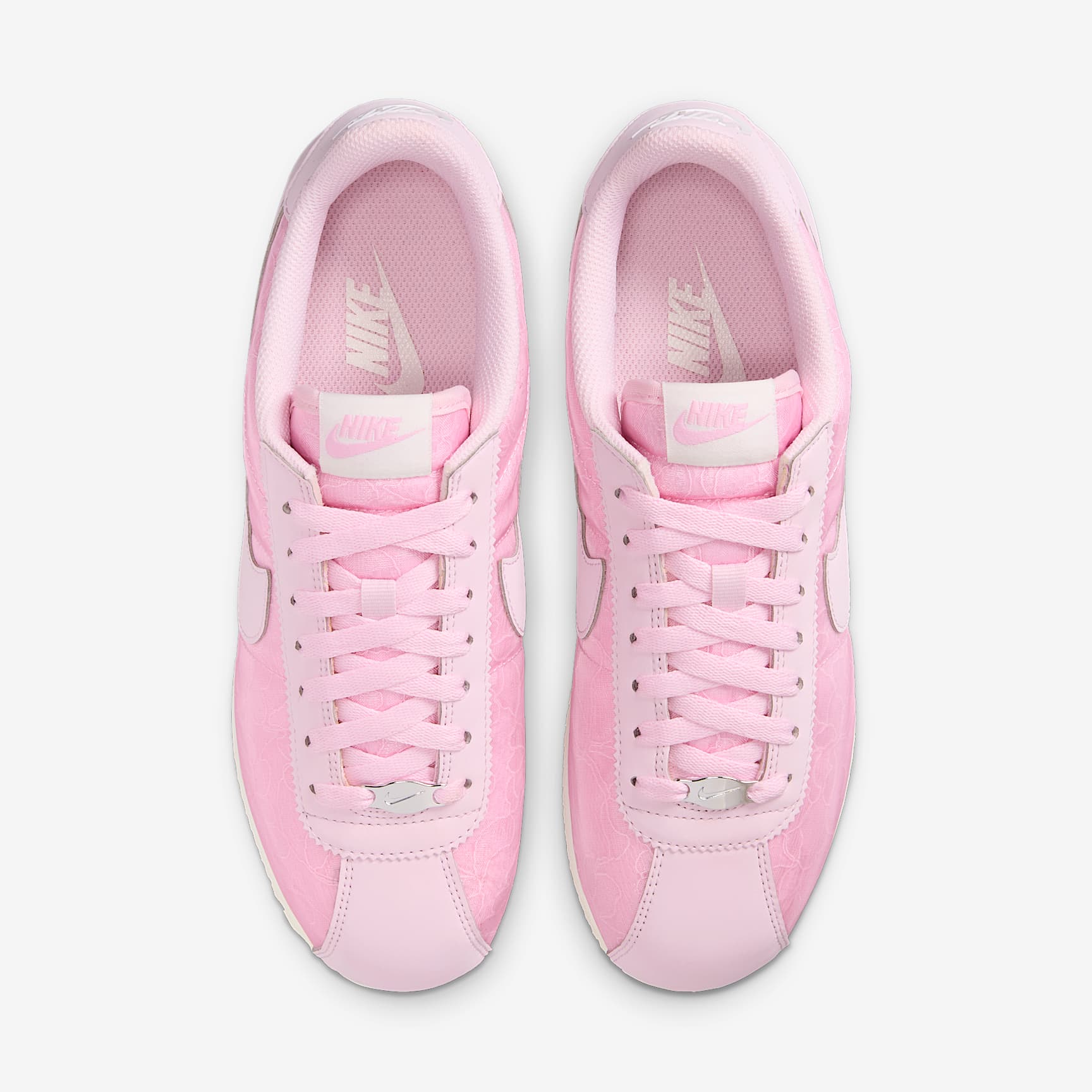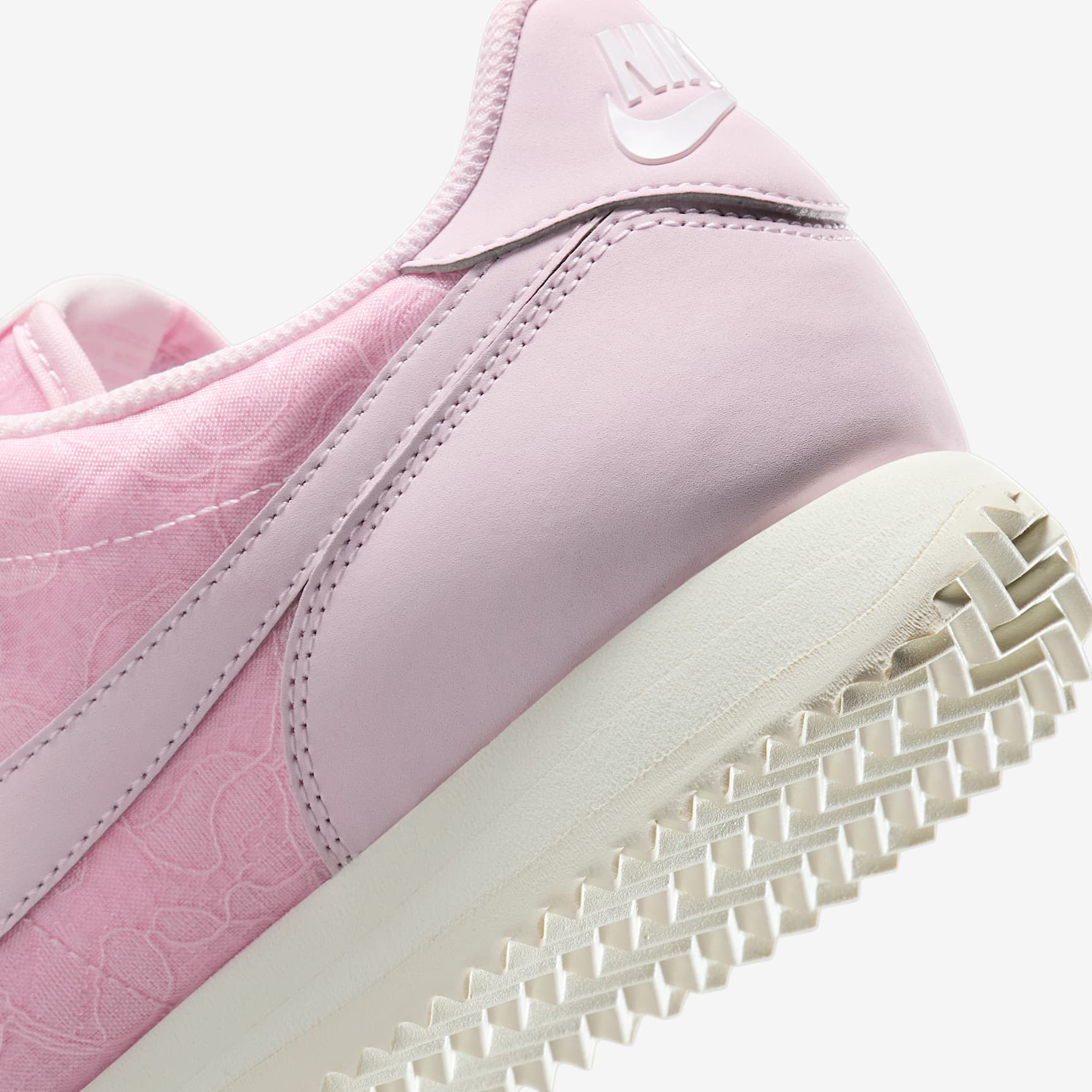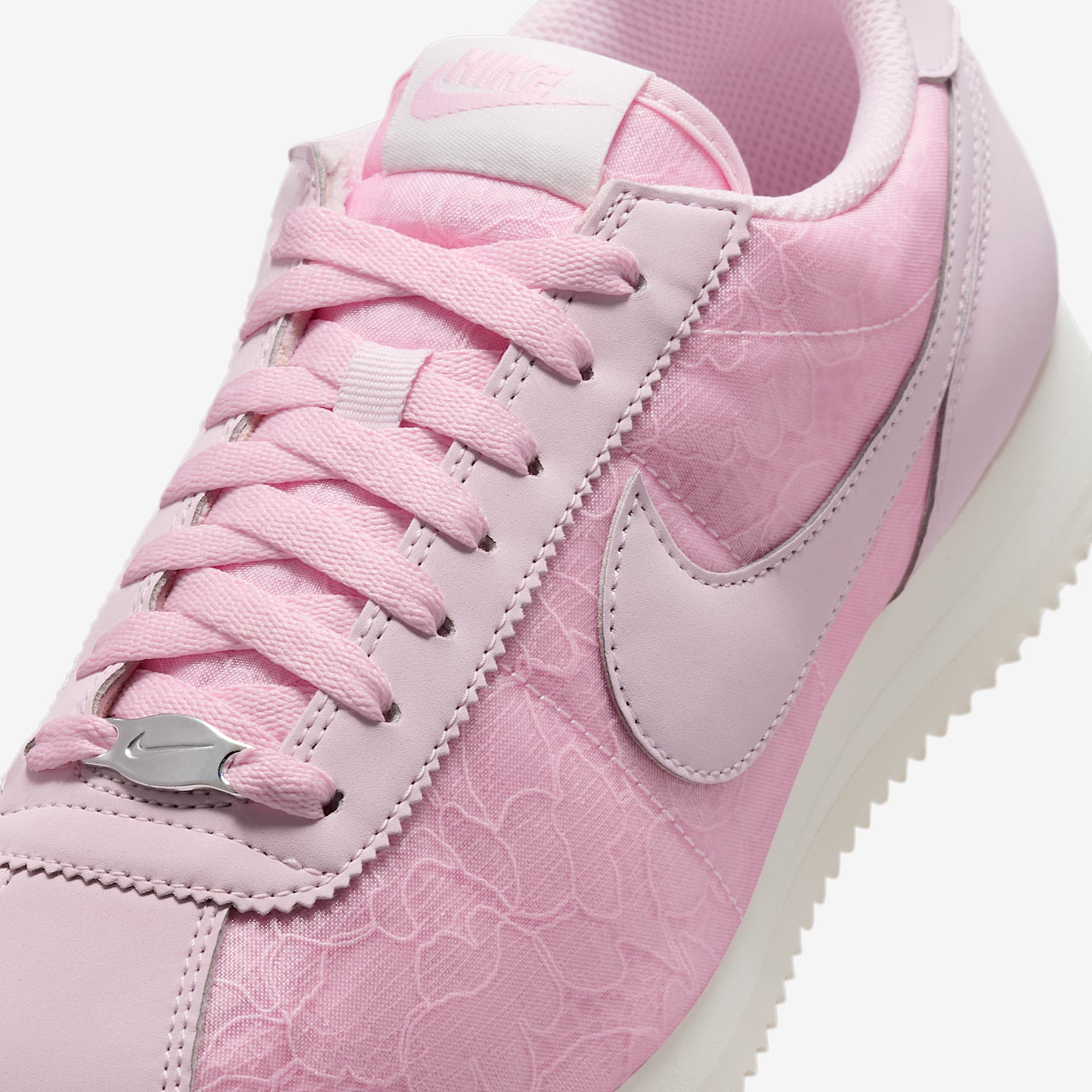 You spoke. We listened. Based on your feedback, we've revamped the original Cortez while maintaining the retro appeal you know and love. This version has a wider toe area and firmer side panels, so you can comfortably wear them all day without any warping. A floral lace overlay adds a ballet-inspired finish. Cortez fans—this one's for you. Benefits * Re-engineered upper is extra-durable to help prevent warping, creasing and scuffing. * Wider toe box provides a more comfortable fit. * Firmer side panels help keep your foot in place for a more stable feel. * A foam midsole with iconic wedge insert lets you comfortably wear them day in, day out. * Herringbone outsole pattern pairs durable traction and heritage style. Product Details * Padded collar * Rubber outsole Cortez origins The Nike Cortez was designed in 1972 by Nike co-founder Bill Bowerman to be lighter and more comfortable than any other. It quickly became the most popular running shoe in the country and has transformed into an unmistakable icon, woven into pop culture history.