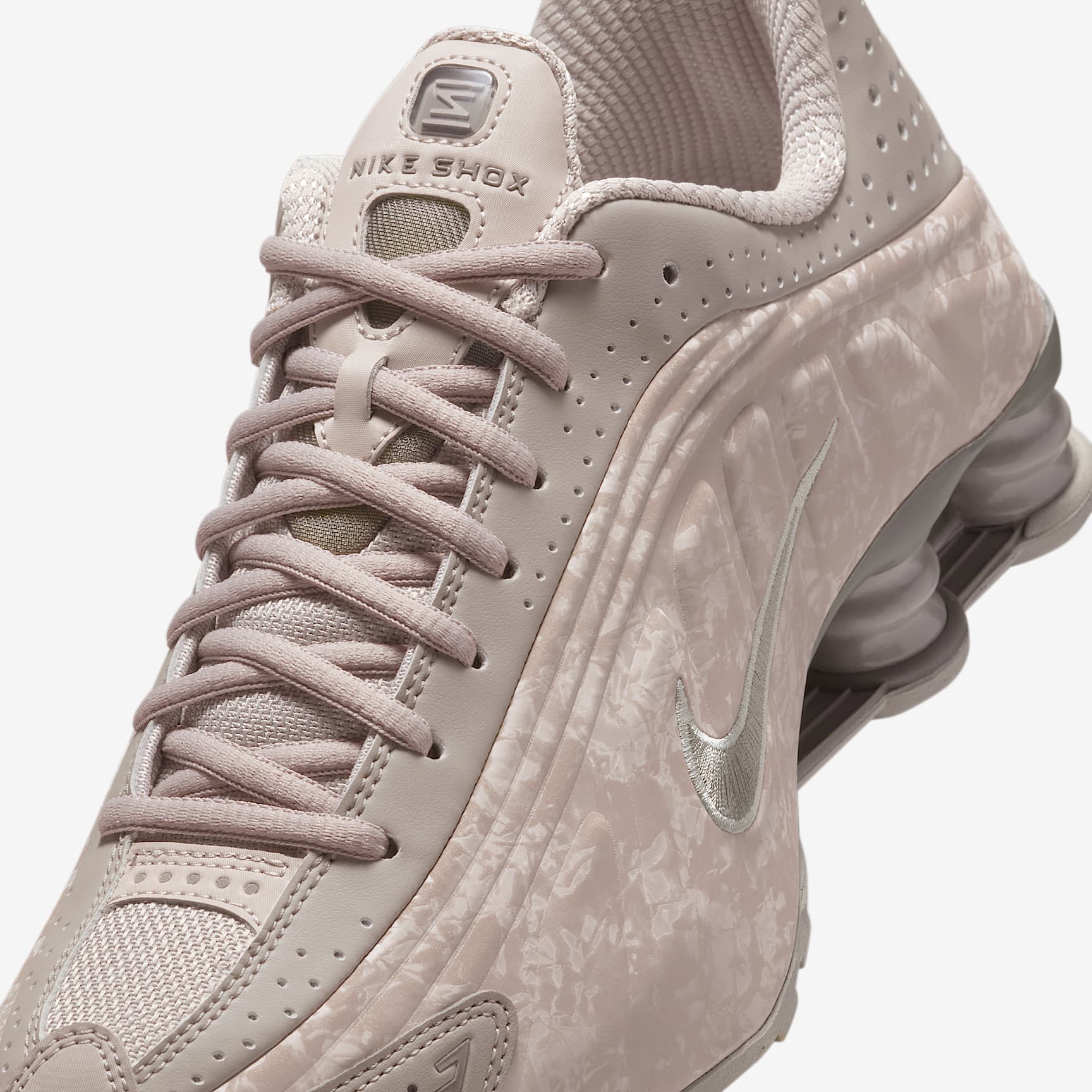 A recrafted version of the 2001 icon, the Shox R4 replicates the original with its innovative cushioning, mixed materials and laser perforations. Nike Shox columns in the heel distribute weight to maximise comfort, while creating a performance-inspired look. Benefits * The synthetic and textile upper with laser perforations is breathable and durable. * Originally designed to support the stride of runners, Nike Shox columns provide responsive cushioning. * The modified, circular Waffle outsole provides great traction. Product details * Foam midsole * Rubber outsole * Not intended for use as personal protective equipment (PPE)