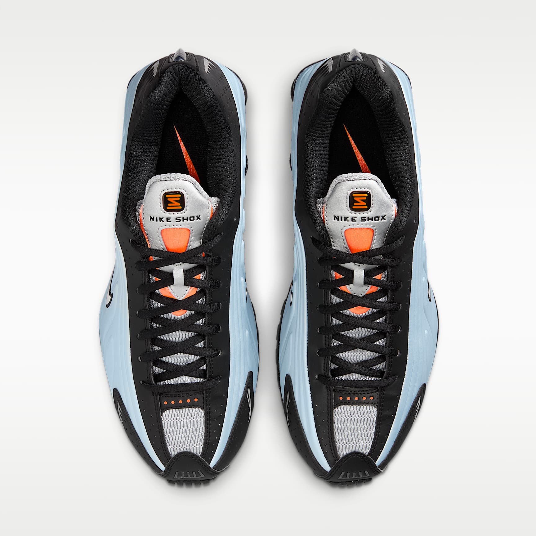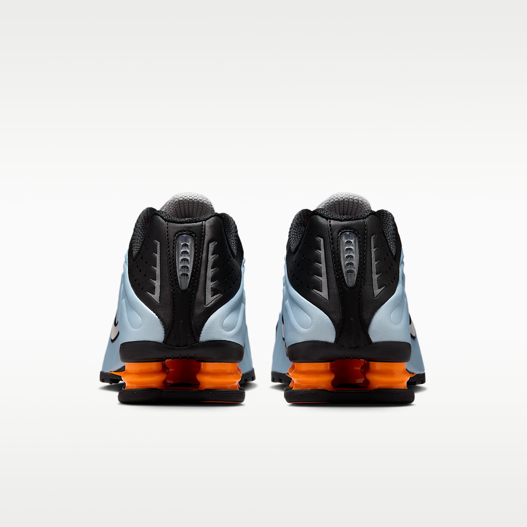 A recrafted version of the 2001 icon, the Nike Shox R4 replicates the original with its synthetic and textile upper, design lines and laser perforations. Nike Shox cushioning distributes weight to maximize comfort and provide a performance-inspired look. Benefits * Originally designed to support the stride of runners, Nike Shox columns provide responsive cushioning. * Upper is a near-exact replica of the original 2001 Nike Shox. * Modified, circular waffle outsole gives traction. * Laser perforations throughout provide ventilation. Product Details * Not intended for use as Personal Protective Equipment (PPE)