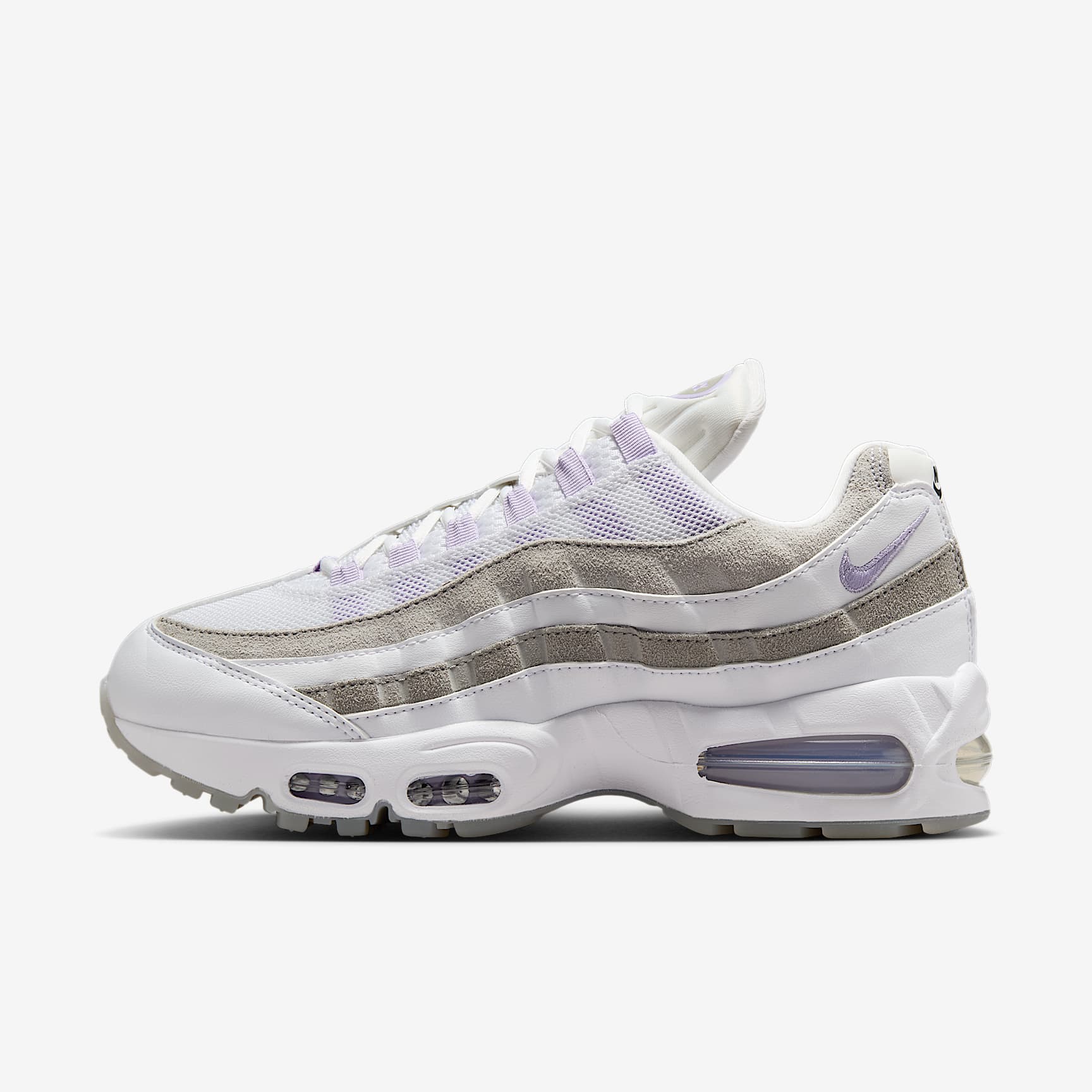 The Air Max 95 originally takes inspiration from the human anatomy, leading to its distinctive wavy design. This version pairs mixed materials and visible Max Air cushioning for a layered look with unbelievable comfort. Benefits * The upper mixes real and synthetic leather, textile and suede for a layered look built to last. * The visible Max Air cushioning provides lightweight cushioning. * Flex grooves in the midsole/outsole let you move freely. * Inspired by the human anatomy, the midsole/outsole represent the spine, upper panels are the muscles and the laces are the shoe's ribs. Product details * Foam midsole * Rubber outsole * Not intended for use as personal protective equipment (PPE)