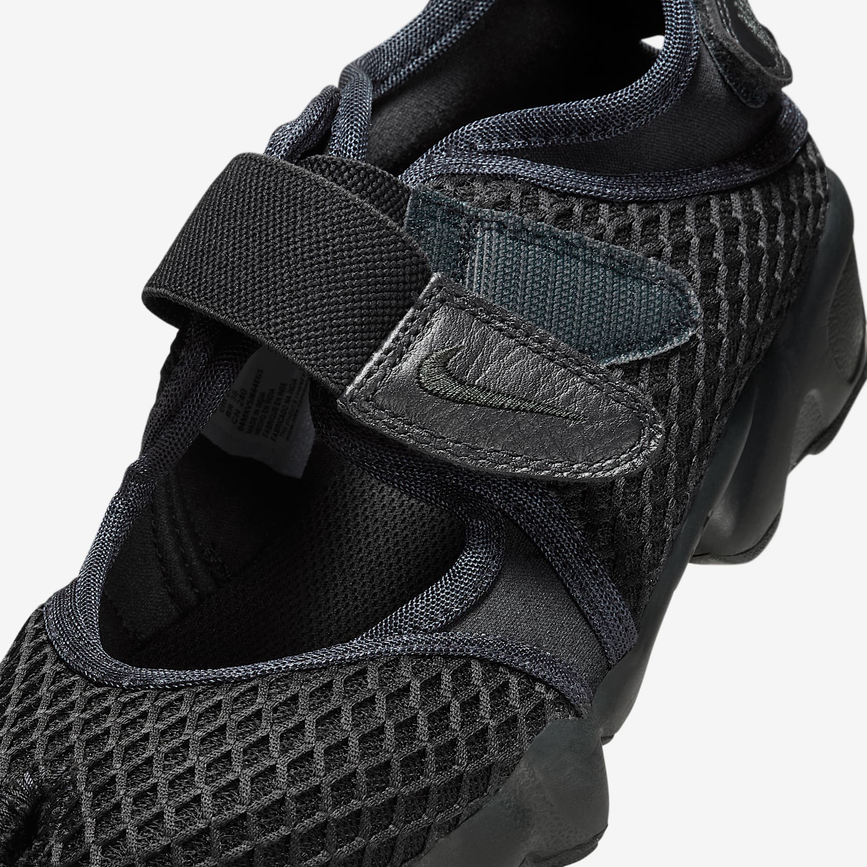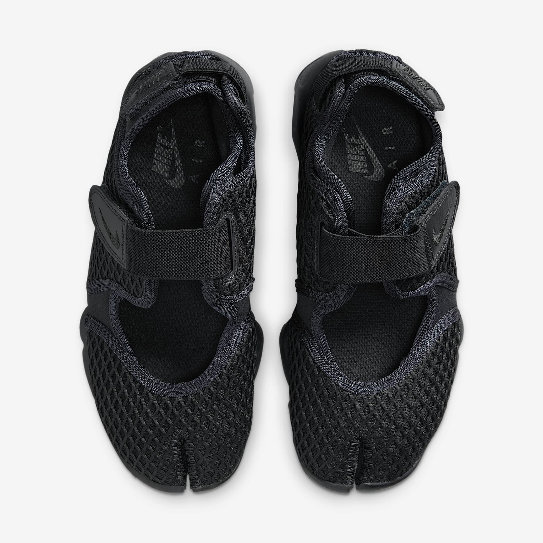 When you want to be barefoot but you need a shoe, go with the Air Rift. Adjustable straps let you easily slide into this split-toe design. Add some Air cushioning in the heel and your feet will feel like they're wearing nothing at all. Benefits * Mixed textile upper is lightweight and breathable. * Hook-and-loop straps let you customise your fit. * Nike Air unit in the heel is combined with a plush foam midsole for a soft feel. * Rubber detailing on the outsole features rugged tread for added durability and traction.