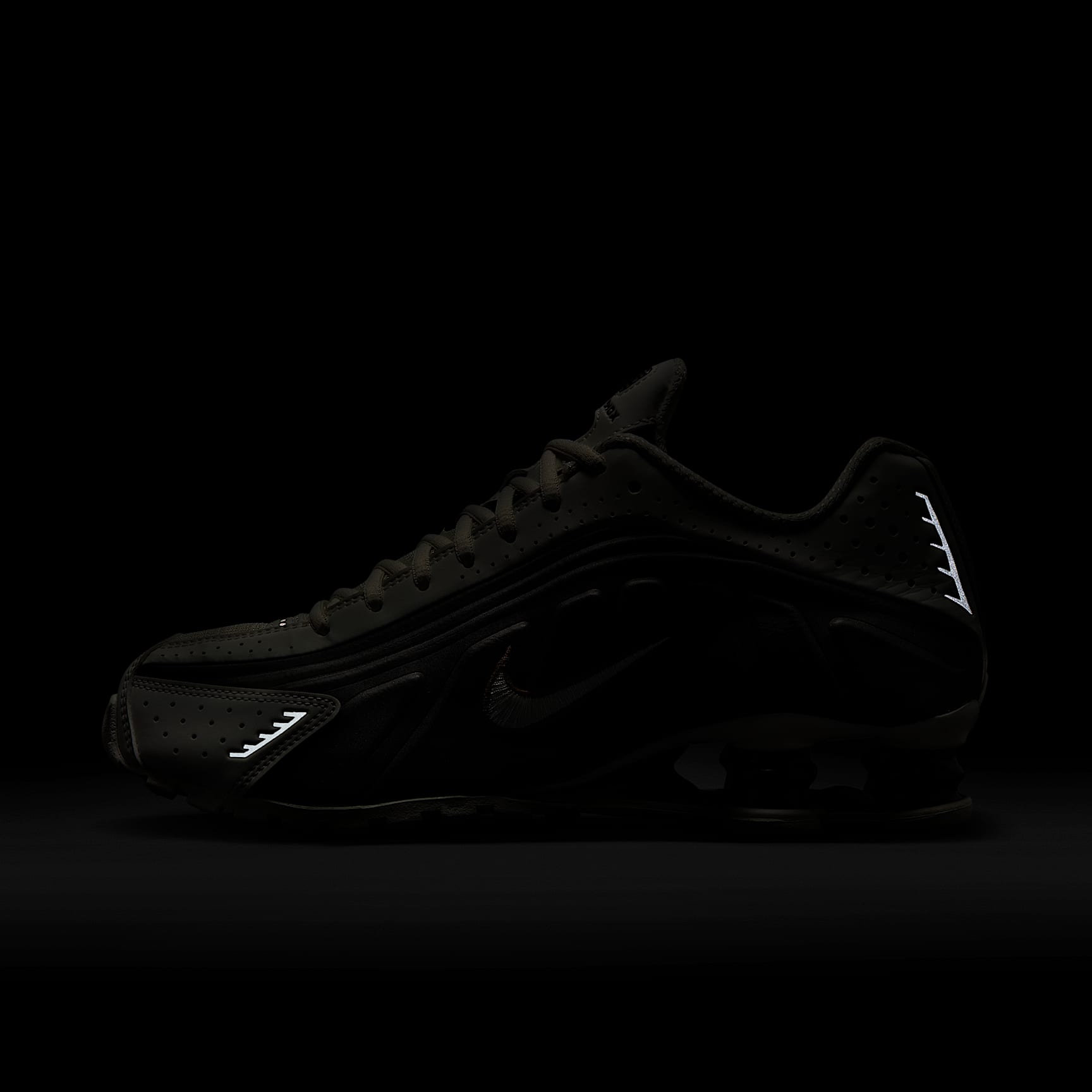 A recrafted version of the 2001 icon, the Nike Shox R4 replicates the original with its synthetic and textile upper, design lines and laser perforations. Nike Shox cushioning distributes weight to maximise comfort and provide a performance-inspired look. Benefits * Originally designed to support the stride of runners, Nike Shox columns provide responsive cushioning. * The upper is a near-exact replica of the original 2001 Nike Shox. * A modified, circular Waffle outsole gives traction. * Laser perforations throughout provide ventilation. Product details * Not intended for use as personal protective equipment (PPE)