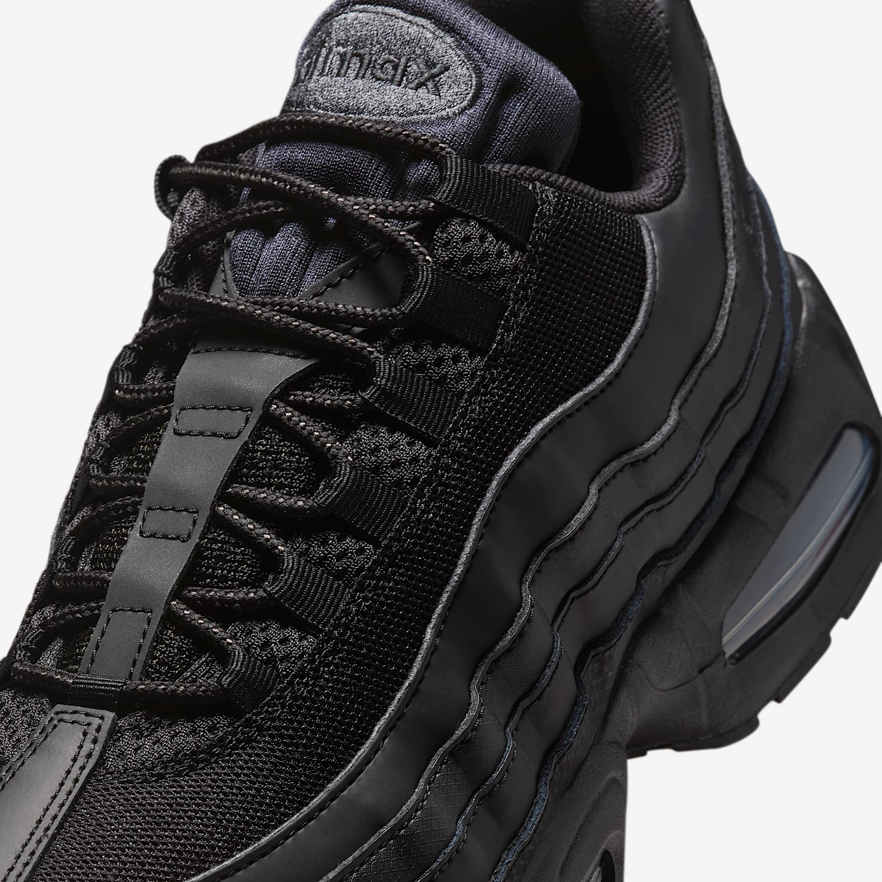 Taking inspiration from the human body and '90s track aesthetics, the Air Max 95 mixes unbelievable comfort with fast-paced style. The wavy side panels add natural flow to any outfit while visible cushioning in the heel and forefoot delivers performance comfort. Benefits * Upper combines real and synthetic leather with airy textiles for a layered look built to last. * Visible Max Air cushioning provides lightweight cushioning. * Flex grooves in the midsole/outsole let you move freely. * Inspired by the human anatomy, the midsole/outsole represent the spine, upper panels are the muscles and the laces are the shoe’s ribs. Product Details * Foam midsole * Rubber outsole * Not intended for use as Personal Protective Equipment (PPE)