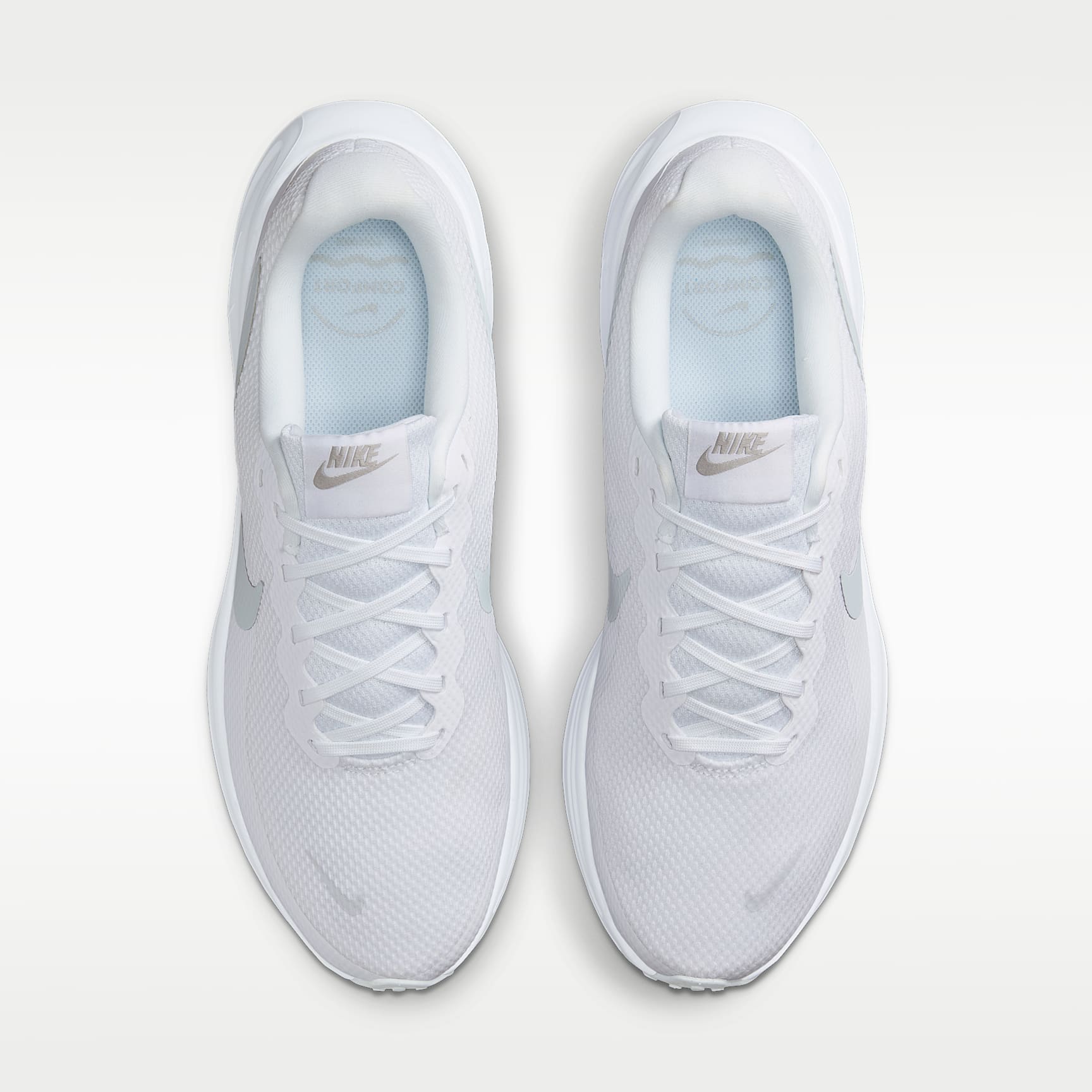 The Revolution 8 is an evolution of your faithful favourite. Every stride is cushioned thanks to a foam midsole and a flexible forefoot that makes your steps soft. Plus, the mesh upper is even more breathable than the previous iteration, so you can run in cool, collected comfort. Mesh upper The mesh upper offers a comfortable, breathable feel. Foam midsole The foam midsole delivers intuitive cushioning through comfort-focused rocker geometry. Cushioned outsole The outsole has an intuitive Nike design and flex grooves in the forefoot that create a comfortable and cushioned effect as you run. Touch points Touch points at the heel and tongue create a natural feel as you get the shoes on and off. What's new? The mesh on the upper is more breathable than the Revolution 7, helping keep you cool. Product details * Weight: 292g approx. (men's size 9) * Heel-to-toe drop: 10mm