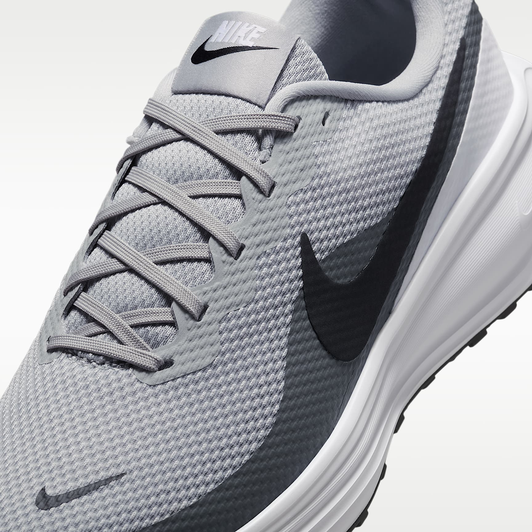 The Revolution 8 is an evolution of your faithful favourite. Every stride is cushioned thanks to a foam midsole and a flexible forefoot that makes your steps soft. Plus, the mesh upper is even more breathable than the previous iteration, so you can run in cool, collected comfort. Mesh upper The mesh upper offers a comfortable, breathable feel. Foam midsole The foam midsole delivers intuitive cushioning through comfort-focused rocker geometry. Cushioned outsole The outsole has an intuitive Nike design and flex grooves in the forefoot that create a comfortable and cushioned effect as you run. Touch points Touch points at the heel and tongue create a natural feel as you get the shoes on and off. What's new? The mesh on the upper is more breathable than the Revolution 7, helping keep you cool. Product details * Weight: 292g approx. (men's size 9) * Heel-to-toe drop: 10mm