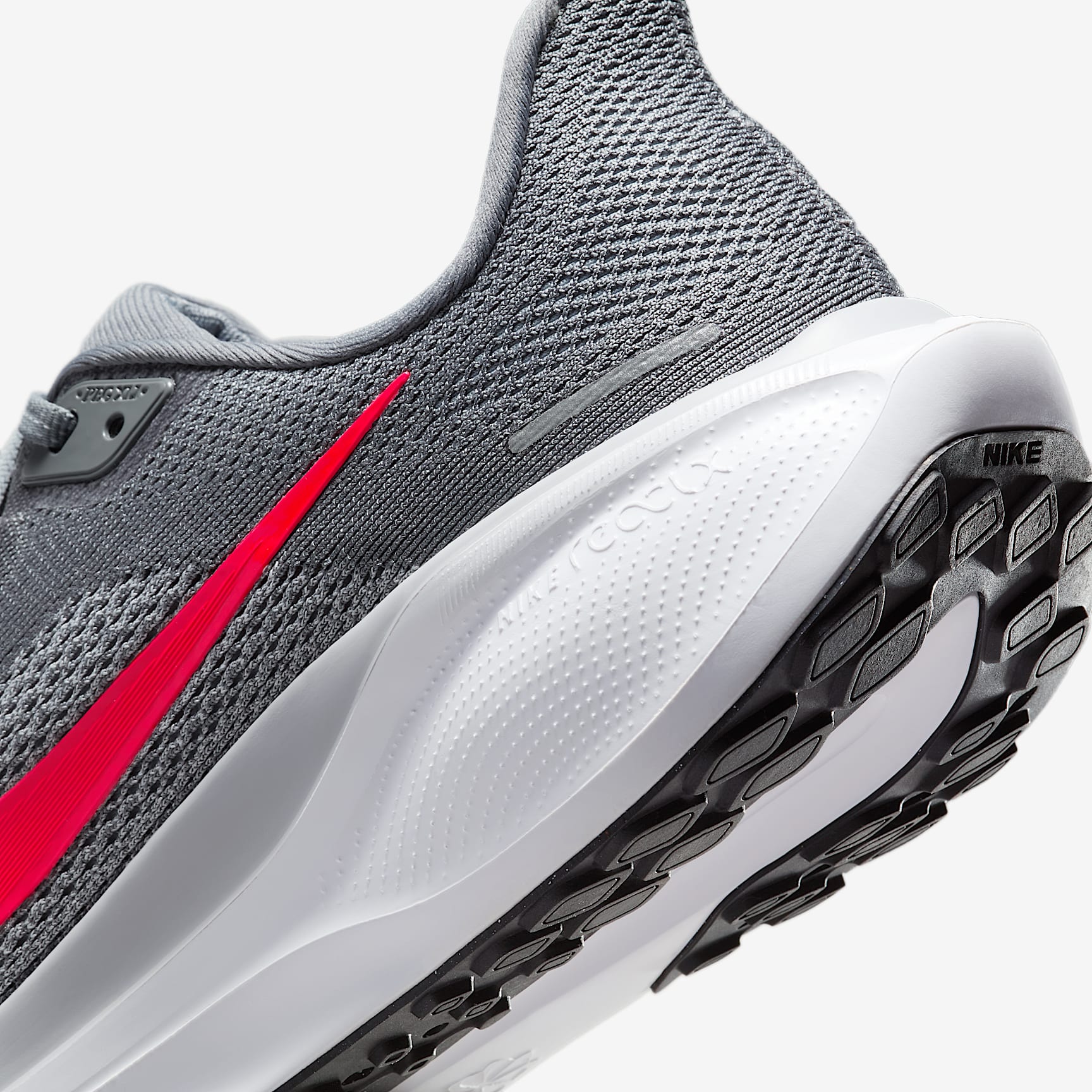 Springy foam plus snappy Air Zoom units equals our most energized ride. Responsive cushioning in the Pegasus provides an energized ride for everyday road running. Experience lighter-weight energy return with dual Air Zoom units and a ReactX foam midsole. Plus, improved engineered mesh on the upper decreases weight and increases breathability. Responsive Ride ReactX foam midsole surrounds forefoot and heel Air Zoom units for an energized ride. It's 13% more responsive than previous React technology. Waffle-Inspired Traction Signature waffle-inspired rubber outsole provides traction and flexibility. Plush Padding Plush collar, tongue and sockliner provide a secure and comfortable fit. What's New? * ReactX foam midsole * Lighter, more breathable engineered mesh upper Product Details * Weight: Approx. 297g/10.5oz (Men's US 10) * Heel-to-toe drop: 10mm * MR-10 Last - Our best, most consistent fit (same as Pegasus 40) * Reflective details * Not intended for use as Personal Protective Equipment (PPE)