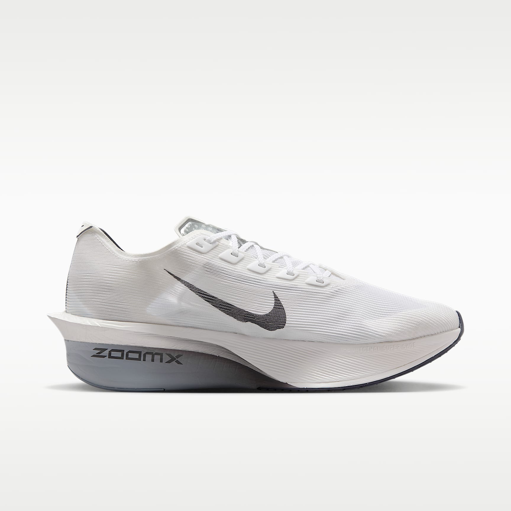 A light, efficient design feels propulsive for all 26.2. The Vaporfly 4 is a lean, mean, mile-eating machine. We trimmed weight in the midsole, outsole and upper from the Vaporfly 3 without sacrificing performance. The result is a lighter, more propulsive all-around racing shoe that’s trusted from the mile to the marathon. Full Speed A full-length carbon fiber Flyplate provides a propulsive, racing feel. More Energy Return Nike ZoomX foam, our most responsive foam, just got faster. Running from heel to toe, it unlocks even more energy return than before thanks to a slight midsole reduction, giving you a bouncy feel. Engineered Mesh Engineered mesh offers improved comfort and a disappearing feel on your foot. It helps reduce the weight of the shoe while supplying a more consistent fit. Light Feel See how the midsole bulges out by the heel? We designed it that way to help reduce weight on the inside of the foot to give you a more stable ride. What's New? * Lighter upper, midsole, outsole * Higher plate angle * Lower heel-to-toe drop Product Details * Weight: Approx. 190g/6.7oz (Men's US 10) * Heel-to-toe drop: 6mm