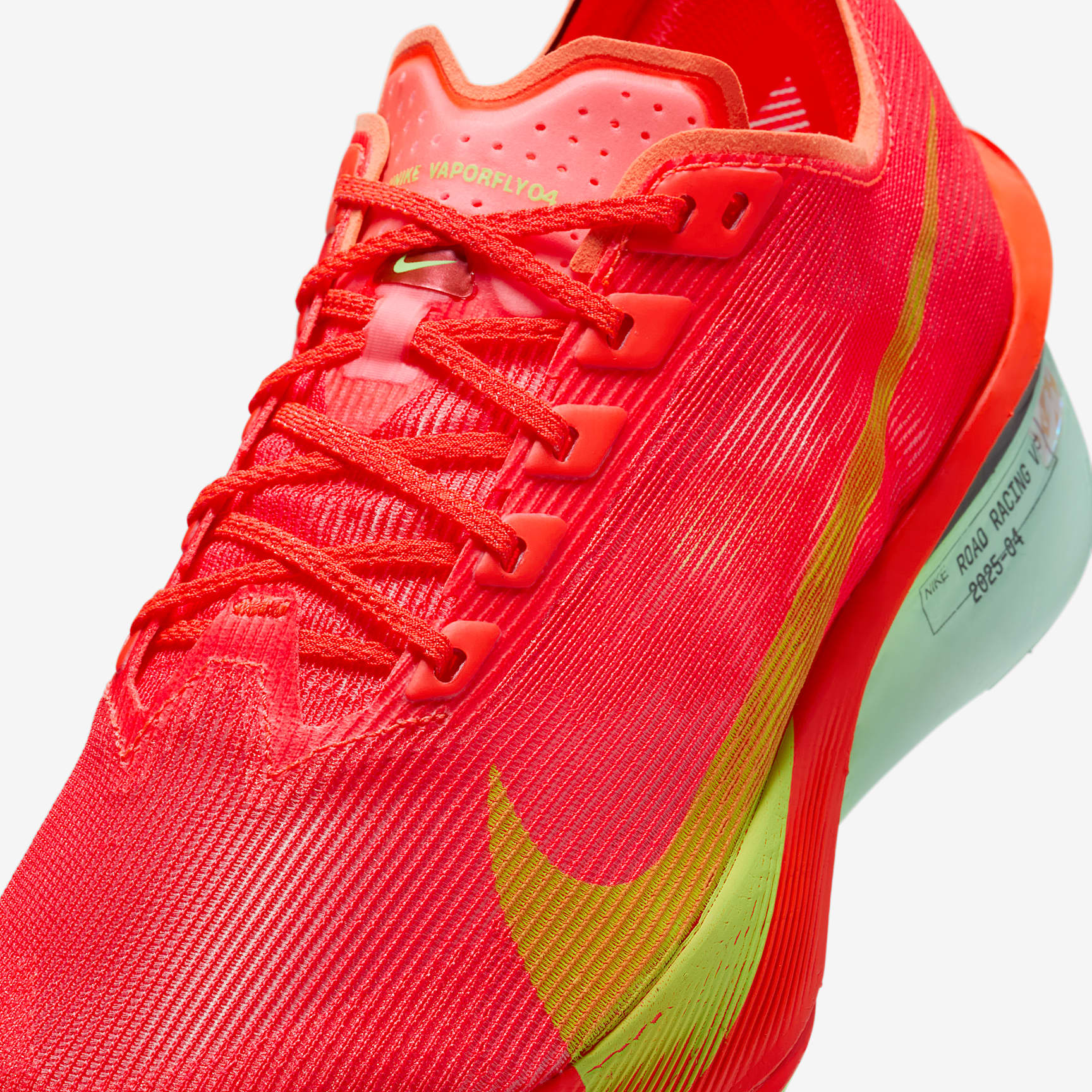 A light, efficient design feels propulsive for all 26.2. The Vaporfly 4 is a lean, mean, mile-eating machine. We trimmed weight in the midsole, outsole and upper from the Vaporfly 3, without sacrificing performance. The result is a lighter, more propulsive all-round racing shoe that's trusted from the mile to the marathon. Full Speed A full-length carbon-fibre Flyplate provides a propulsive, racing feel. More energy return Nike ZoomX, our most responsive foam, just got faster. Running from heel to toe, it unlocks even more energy return than before thanks to a slight midsole reduction, giving you a bouncy feel. Engineered mesh Engineered mesh offers improved comfort and a disappearing feel on your foot. It helps reduce the weight of the shoe while supplying a more consistent fit. Light Feel See how the midsole bulges out by the heel? We designed it that way to help reduce weight on the inside of the foot to give you a more stable ride. What's new? * Lighter upper, midsole, outsole * Higher plate angle * Lower heel-to-toe drop Product details * Weight: 152g approx. (women's UK 5.5) * Heel-to-toe drop: 6mm