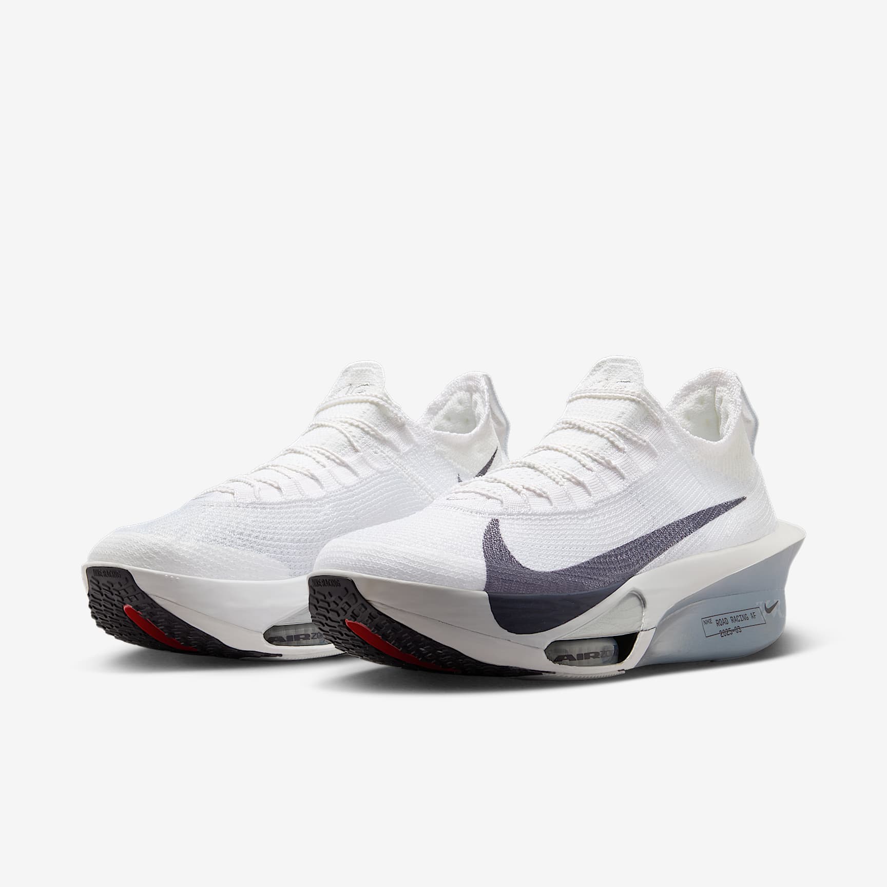 Fine-tuned for marathon speed, the Alphafly 3 helps push you beyond what you thought possible. Three innovative technologies power your run: a double dose of Air Zoom units helps launch you into your next step; a full-length carbon-fibre plate helps propel you forwards with ease; and a heel-to-toe ZoomX foam midsole helps keep you fresh from start to 26.2. Time to leave your old personal records in the dust. Energy return for your marathon Two forefoot Air Zoom units combine with ZoomX foam to store and return the energy back to you, powering every step. Propulsive feeling A full-length carbon-fibre plate delivers a propulsive sensation that helps you smoothly transition through every stride and tackle turns with confidence. Cushioned ride Fully connected ZoomX foam creates an ultralight and cushioned feel, helping you stay fresh and comfortable from mile 1 to 26.2. What's new about the Alphafly 3? The Alphafly 3 is our lightest Alphafly ever, featuring a slightly wider carbon-fibre plate for increased stability, a fully connected ZoomX foam midsole for smoother transitions and an all-new AtomKnit upper designed for improved multi-directional containment and breathability. More benefits * Notched laces offer a secure but soft lace-up. * Integrated knit tongue with lofted padding helps alleviate lace pressure. Product details * Weight: approx. 218g (men's UK 9) * Heel-to-toe drop: 8mm * Not intended for use as personal protective equipment (PPE)
