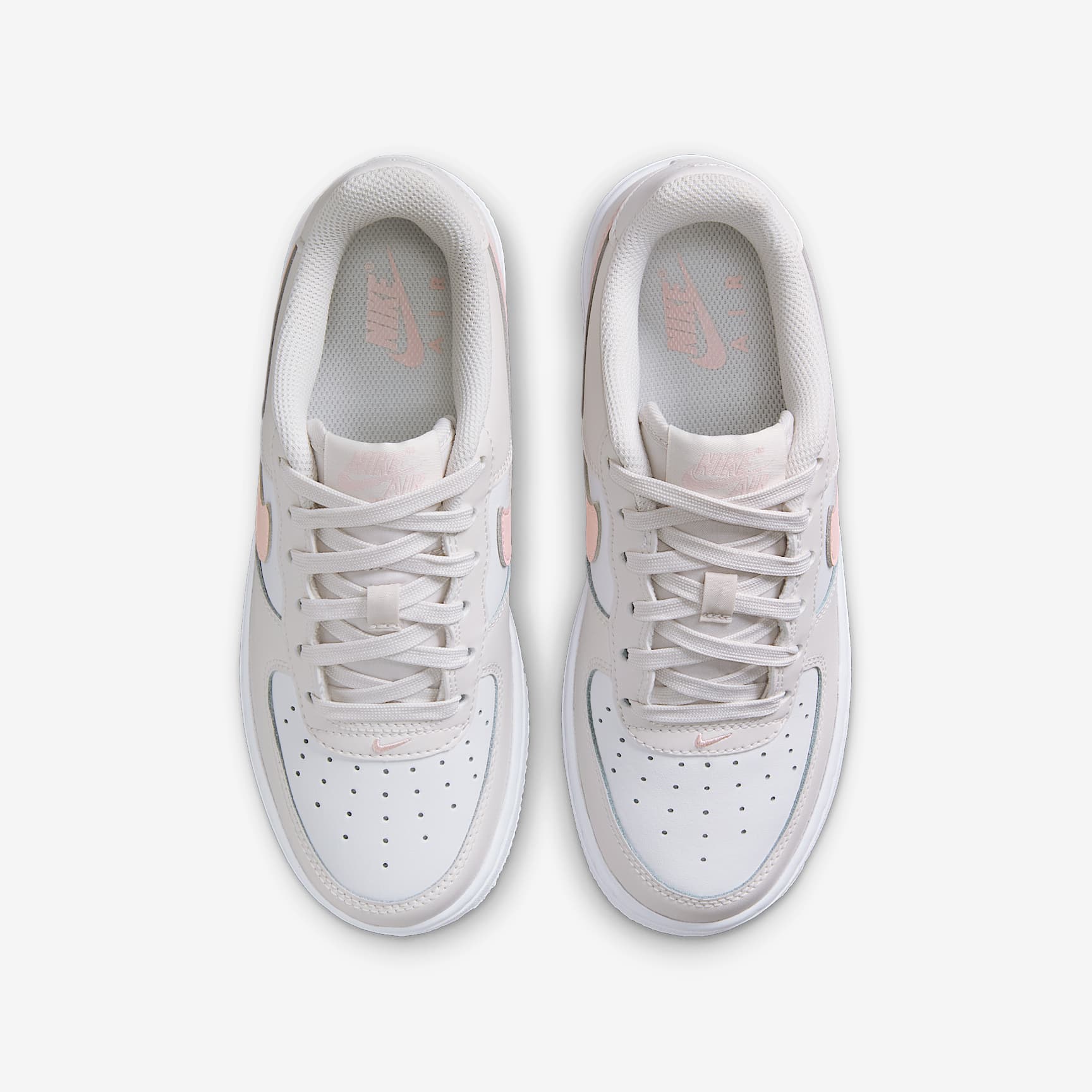 As cool today as when it first dropped more than 40 years ago, the AF1 is a classic you can count on. Its durable construction, Air cushioning and grippy tread will see you through recess after recess. And while they look great fresh out of the box, they remain cool even when covered in scuffs and scrapes. In fact, they might be even better. Benefits * Real and synthetic leather add heritage style, durability and support—just like the Air Force 1 first released in '82. * Originally designed for performance hoops, hidden Air cushioning in the heel helps deliver lasting comfort. * Padded low-cut collar looks sleek and feels great. * Rubber outsole adds traction and durability. Fun fact: The circular tread pattern originally helped basketball players pivot on the court. Product Details * Classic laces * Perforations on toe Air Force 1 Debuting in 1982 as a basketball must-have, the Air Force 1 came into its own in the 90s. The clean look of the classic white-on-white AF1 was endorsed from the basketball courts to the block and beyond. Finding its rhythm in hip-hop culture, releasing limited collabs and colorways, Air Force 1 became an iconic sneaker around the globe. And with over 2000 iterations of this staple, its impact on fashion, music and sneaker culture can’t be denied.