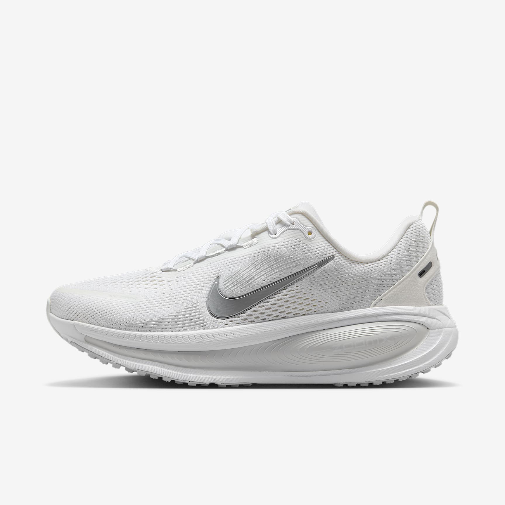 Maximum cushioning in the Vomero provides a comfortable ride for everyday runs. Our softest, most cushioned ride has lightweight ZoomX foam stacked on top of responsive ReactX foam in the midsole. Plus, a redesigned traction pattern offers a smooth heel-to-toe transition. Engineered mesh upper The upper is made from engineered mesh for soft breathability. Dual-density midsole Our dual-density midsole has ZoomX foam stacked on top of ReactX foam—13% more responsive than previous React technology—for a comfortable ride. Pods around the outsole We placed pods around the outsole to help enhance agility and smoother heel-to-toe transitions. Plush padding A plush tongue and lining give you a comfortably snug feel. What's new? The newly stacked foam midsole with premium ZoomX on top of ReactX foam amplifies cushioned comfort. Product details * Weight: 263g approx. (women's UK 5.5) * Heel-to-toe drop: 10mm * MR-10 Last—Our best, most consistent fit * Not intended for use as personal protective equipment (PPE)
