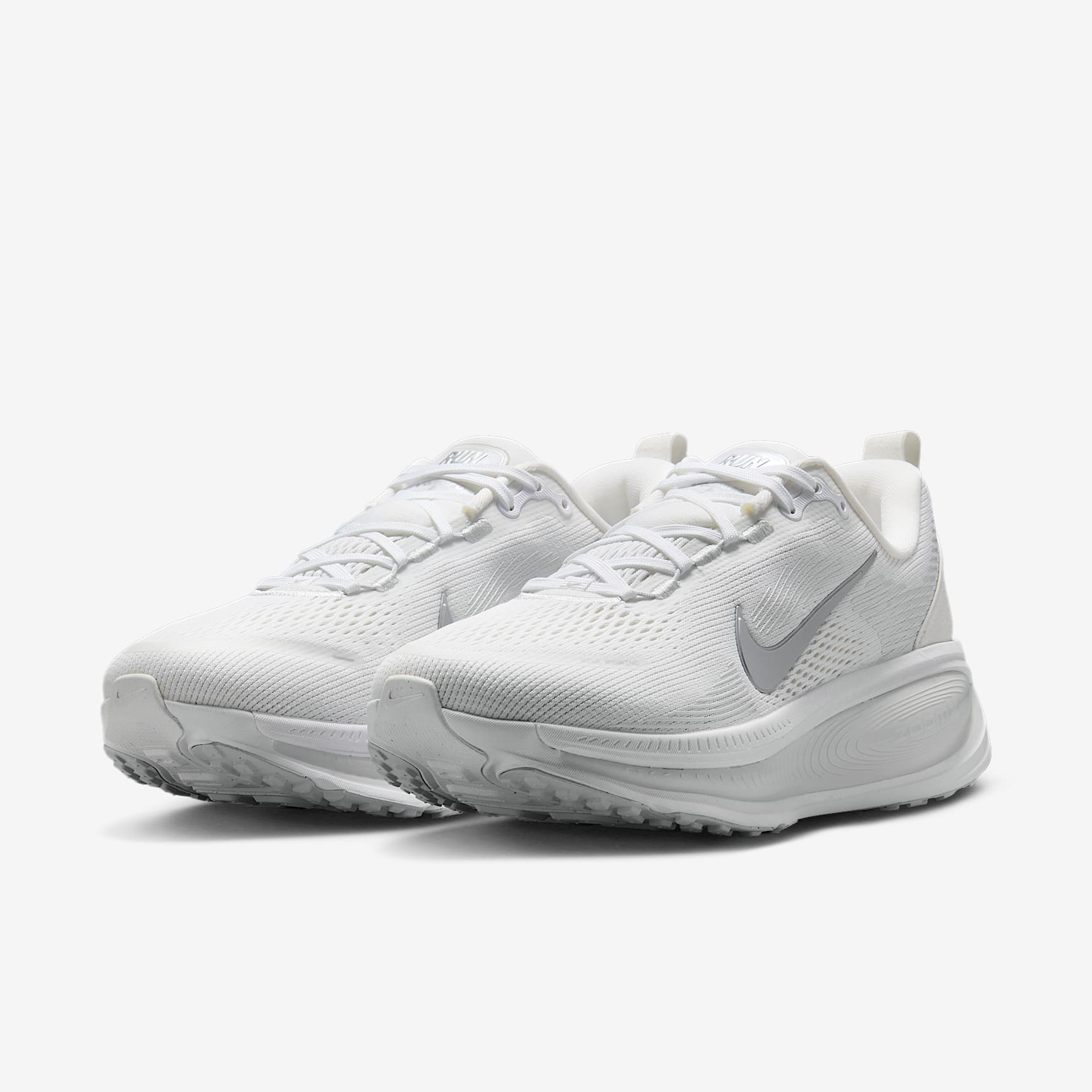 Maximum cushioning in the Vomero provides a comfortable ride for everyday runs. Our softest, most cushioned ride has lightweight ZoomX foam stacked on top of responsive ReactX foam in the midsole. Plus, a redesigned traction pattern offers a smooth heel-to-toe transition. Engineered Mesh Upper The upper is made of engineered mesh for soft breathability. Dual-Density Midsole Our dual-density midsole has ZoomX foam stacked on top of ReactX foam, 13% more responsive than previous React technology, for a comfortable ride. Pods Around Outsole We placed pods around the outsole to help enhance agility and smoother heel-to-toe transitions. Plush Padding A plush tongue and lining give you a comfortably snug feel. What’s New? Newly stacked foam midsole with premium ZoomX on top of ReactX foam amplifies cushioned comfort. Product Details * Weight: Approx. 263g/9.3oz (Women’s US 8) * Heel-to-toe drop: 10mm * MR-10 Last - Our best, most consistent fit * Not intended for use as Personal Protective Equipment (PPE)