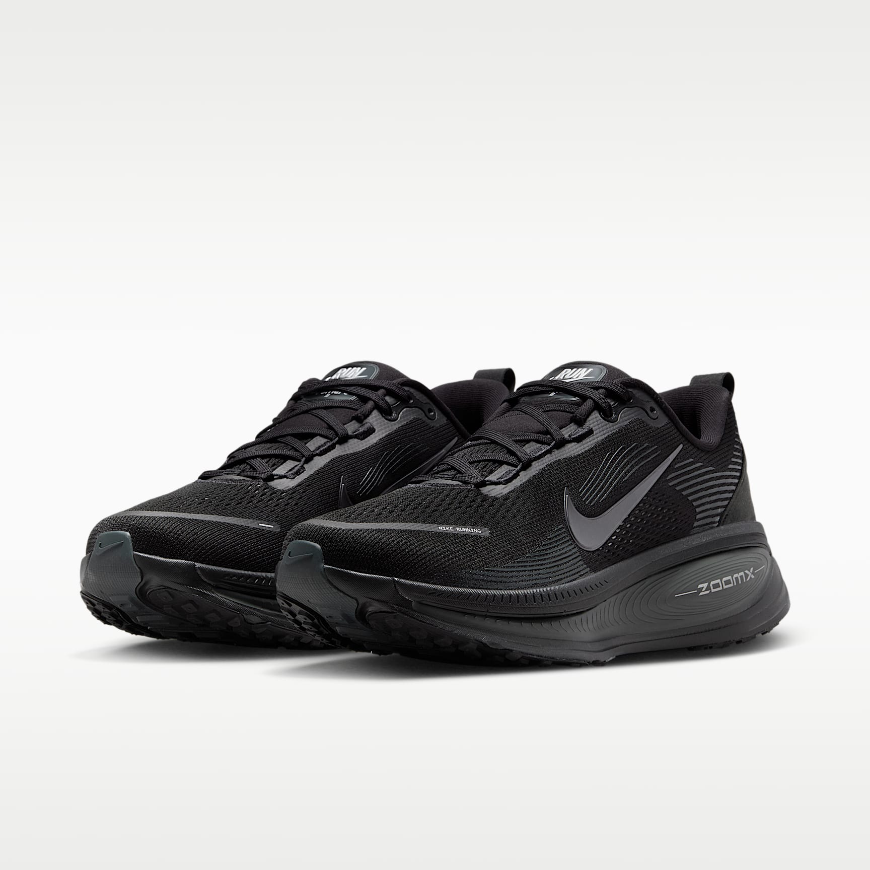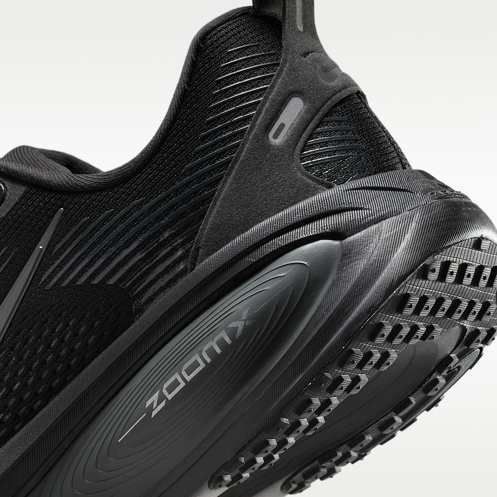 Double-stacked foam delivers our softest, most cushioned ride. Maximum cushioning in the Vomero provides a comfortable ride for everyday runs. Our softest, most cushioned ride has lightweight ZoomX foam stacked on top of responsive ReactX foam in the midsole. Plus, a redesigned traction pattern offers a smooth heel-to-toe transition. Engineered mesh upper The upper is made from engineered mesh for soft breathability. Dual-density midsole Our dual-density midsole has ZoomX foam stacked on top of ReactX foam—13% more responsive than previous React technology—for a comfortable ride. Pods around the outsole We placed pods around the outsole to help enhance agility and smoother heel-to-toe transitions. Plush padding A plush tongue and lining give you a comfortably snug feel. What's new? The newly stacked foam midsole with premium ZoomX on top of ReactX foam amplifies cushioned comfort. Product details * Weight: 325g approx. (men's UK 9) * Heel-to-toe drop: 10mm * MR-10 Last—Our best, most consistent fit * Reflective design details * Not intended for use as personal protective equipment (PPE)