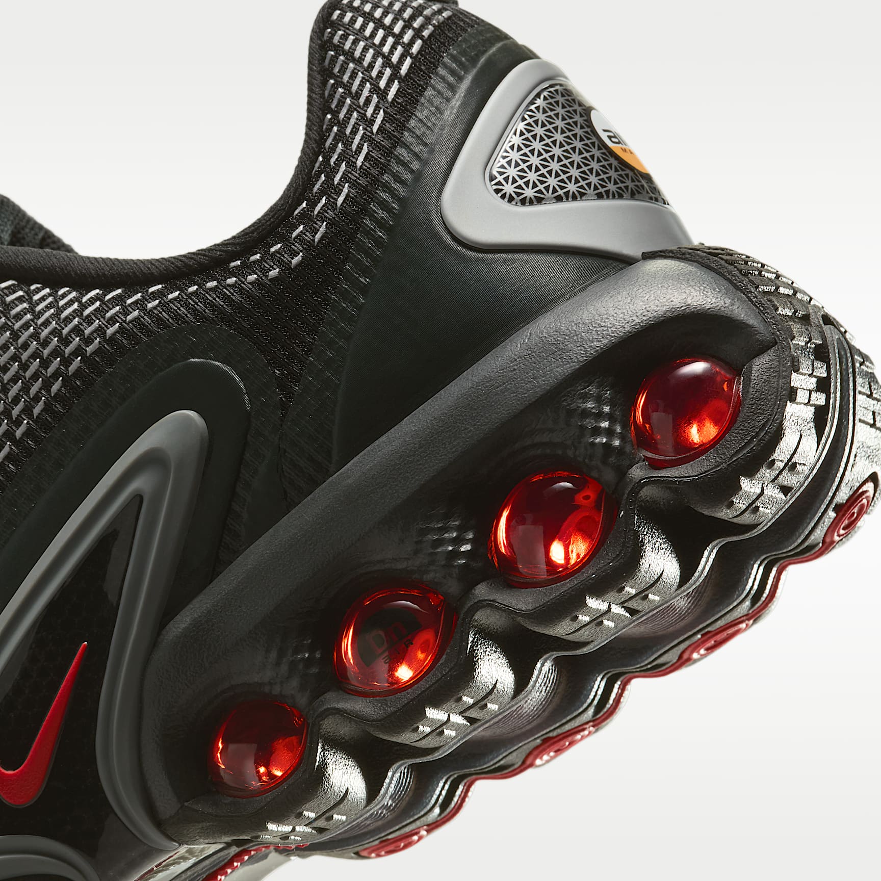 Say hello to the next generation of Air technology. The Air Max Dn features our Dynamic Air unit system of dual-pressure tubes, creating a bouncy sensation with every step. This results in a futuristic design that's comfortable enough to wear all day. Go ahead—Feel the Unreal. Maxxed Out Motion Our Dynamic Air unit system features 2 sets of dual-pressure tubes. We tuned each set to a different pressure level, putting the firmest in the heel and the softest under the middle of your foot. Air shifts within each set as you step, creating a smooth transition underfoot. Maxxed Out Comfort Multilayered mesh on the upper is lightweight and breathable, with a dimensional print that adds a fun textured look. Plus, our Dynamic Air unit system works with plush foam to create a soft and supportive feeling underfoot. Maxxed Out Energy Providing comfort from top to bottom, the design of this sneaker boasts performance-level bounce to energize your every move. After all, who said going to a concert isn't a sport? Product Details * Classic laces * Rubber outsole * Matte accents Nike Air Max Origins Revolutionary Air technology first made its way into Nike footwear in 1978. In 1987, the Air Max 1 debuted with visible Air technology in its heel, allowing fans more than just the feel of Air cushioning—suddenly they could see it. Since then, next-generation Air Max shoes have become a hit with athletes and collectors by offering striking color combinations and reliable, lightweight cushioning.