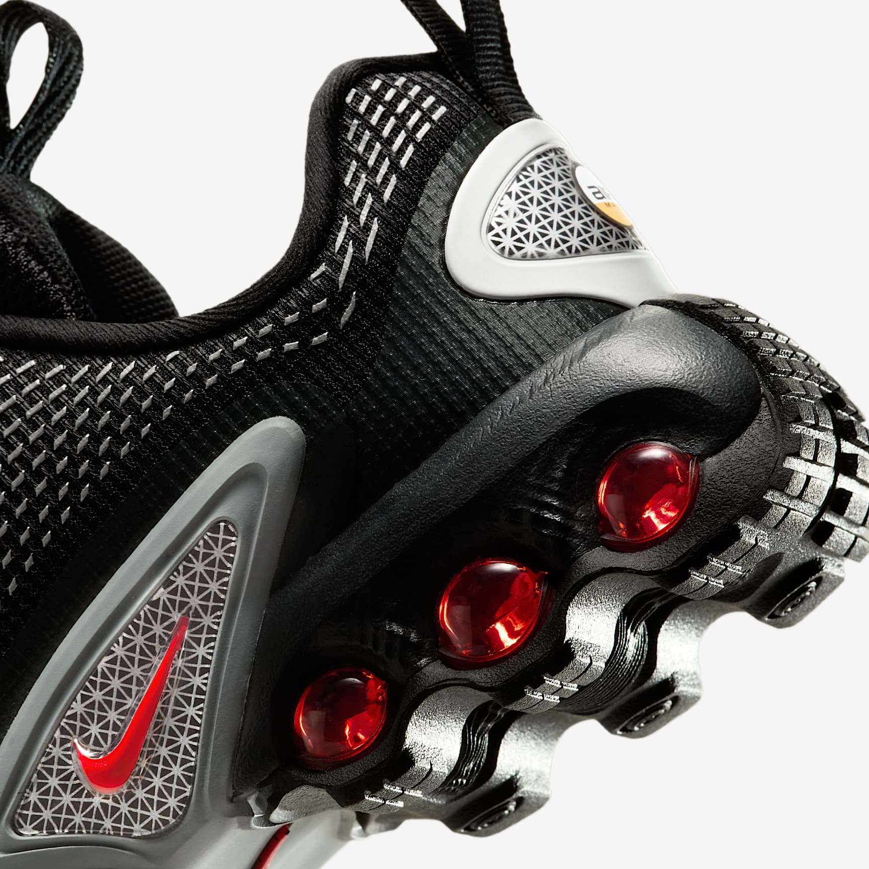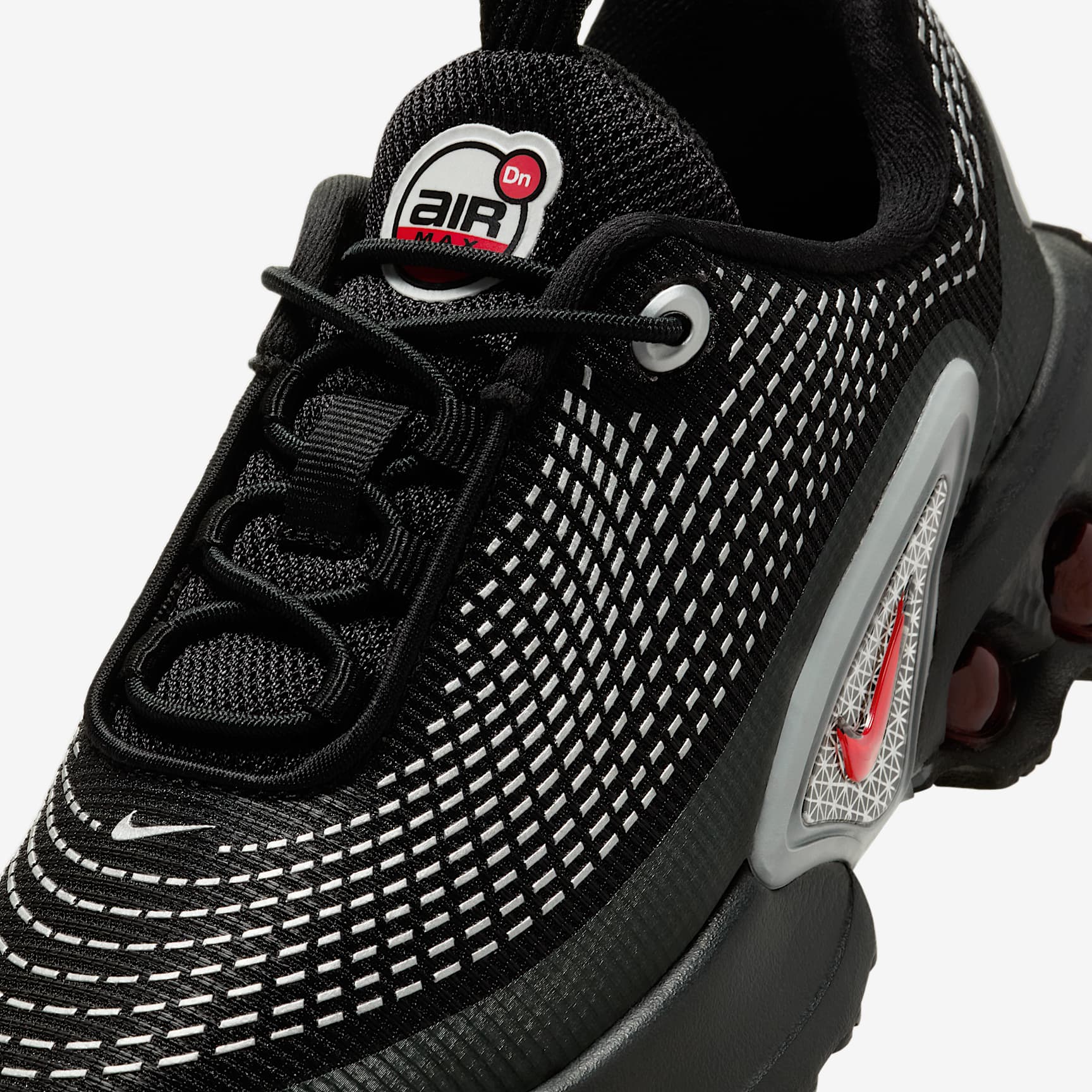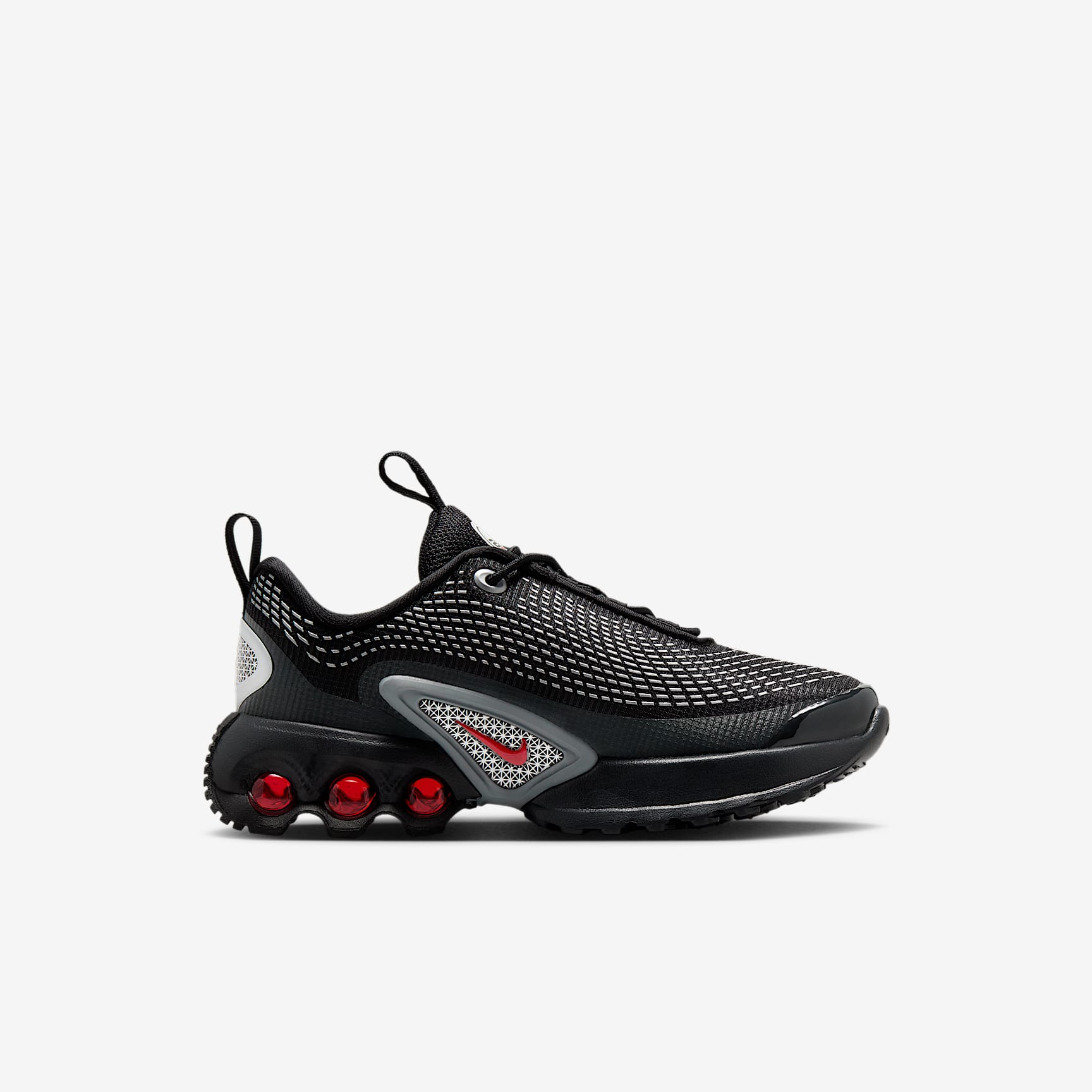 Introduce your little one to the next generation of Air technology. Designed to feel bouncy underfoot, the Air Max Dn features dynamic Air units for a futuristic design that's comfortable enough to wear all day. Plus, elastic laces help make them easy to get on squirming feet. Maxxed Out Motion Nike Air units help cushion every step your little one takes, adding bounce to their day. Maxxed Out Comfort Multilayered mesh on the upper is lightweight and breathable, with a dimensional print that adds a fun textured look. Plus, plush foam creates a soft and supportive feeling underfoot. Maxxed Out Energy Providing comfort from top to bottom, the design of this sneaker boasts performance-level bounce to help energize every move. Product Details * Elastic laces * Rubber outsole * Matte accents Nike Air Max Origins Revolutionary Air technology first made its way into Nike footwear in 1978. In 1987, the Air Max 1 debuted with visible Air technology in its heel, allowing fans more than just the feel of Air cushioning—suddenly they could see it. Since then, next-generation Air Max shoes have become a hit with athletes and collectors by offering striking color combinations and reliable, lightweight cushioning.