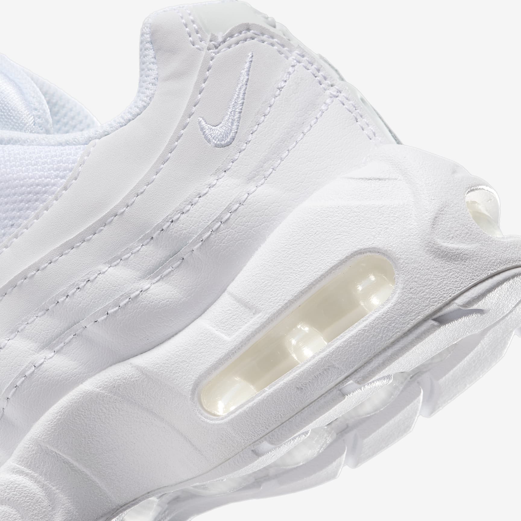 This Nike Air Max 95 Recraft brings back a treasure from the past to celebrate the original's 30-year anniversary. Of course, we kept the Max Air cushioning, durable leather and iconic design lines that turned heads in '95, giving your kiddo an instant classic. Benefits * Upper draws inspiration from human anatomy with muscles inspiring the side panels and the spine informing the outsole and midsole design. * Upper mixes breathable mesh and other textiles with real and synthetic leather for a layered look that's built to last. * Visible Max Air unit helps provide lightweight cushioning. * Rubber outsole with flex grooves adds durable traction. Product Details * Classic laces * Foam midsole * Not intended for use as Personal Protective Equipment (PPE)