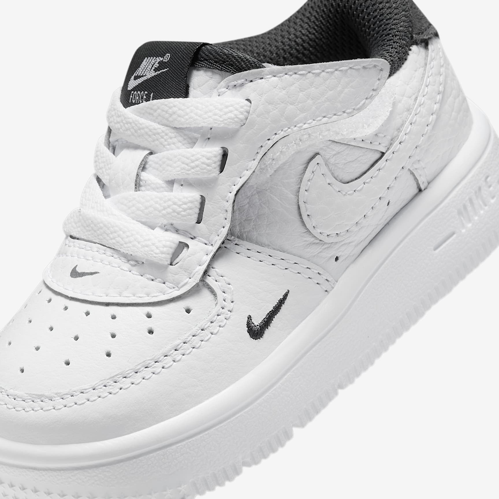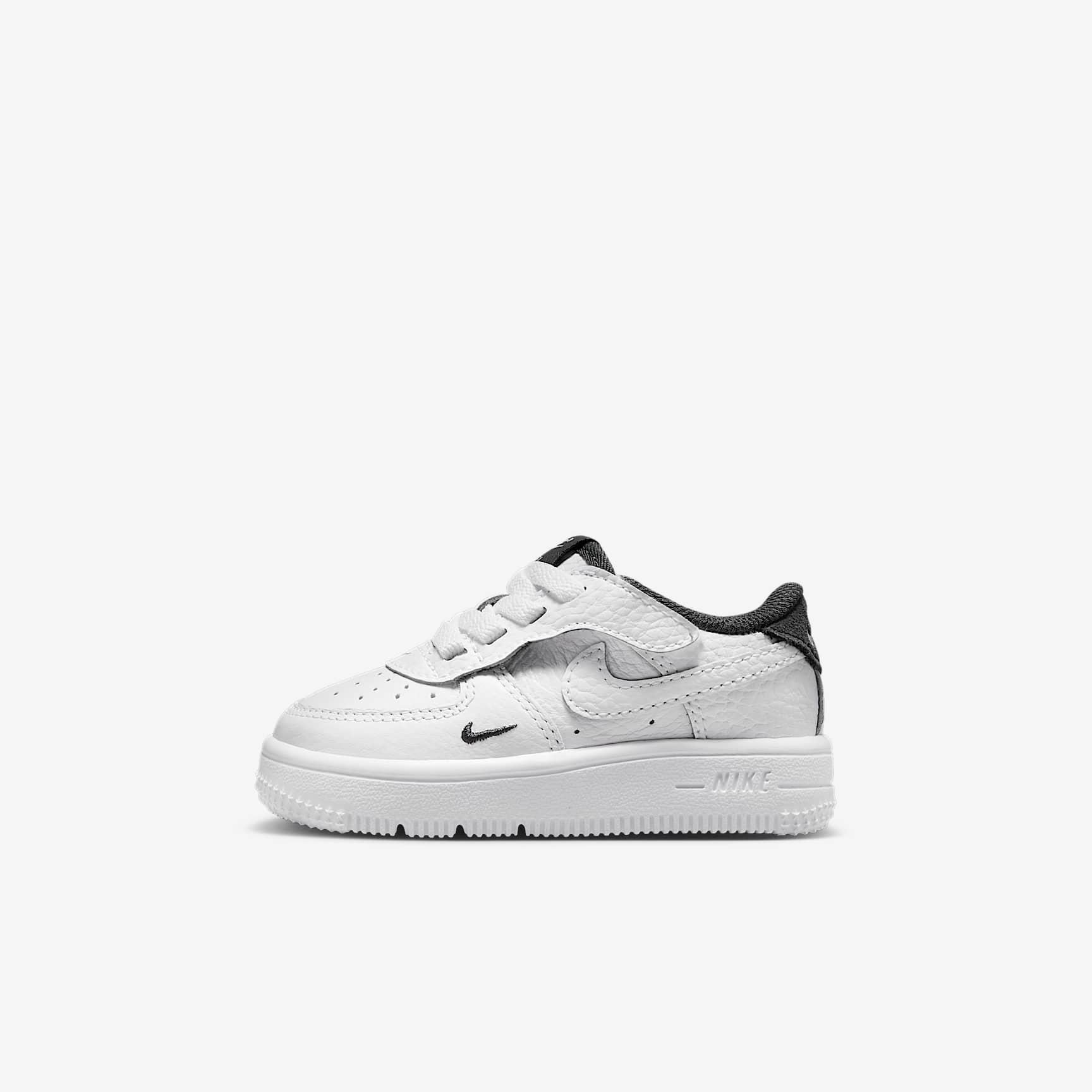 Get out the door fast without struggling with shoelaces. The lace area on these sneakers opens like a book, letting squirmy little feet slip right in. A hook-and-loop strap lets you easily secure their fit. Benefits * Our helpful Nike EasyOn features empower kids to do it themselves so they can focus on what matters most: play. * A hook-and-loop strap lets you open the lace area like a book, helping make these easy to put on and secure. The stitched-down laces give kids classic AF-1 style. * Real and synthetic leather in the upper adds durability and structure. * Soft foam underfoot helps cushion every step. * Flex grooves in the outsole help each step feel natural. Product details * Stitched-down laces * Foam outsole