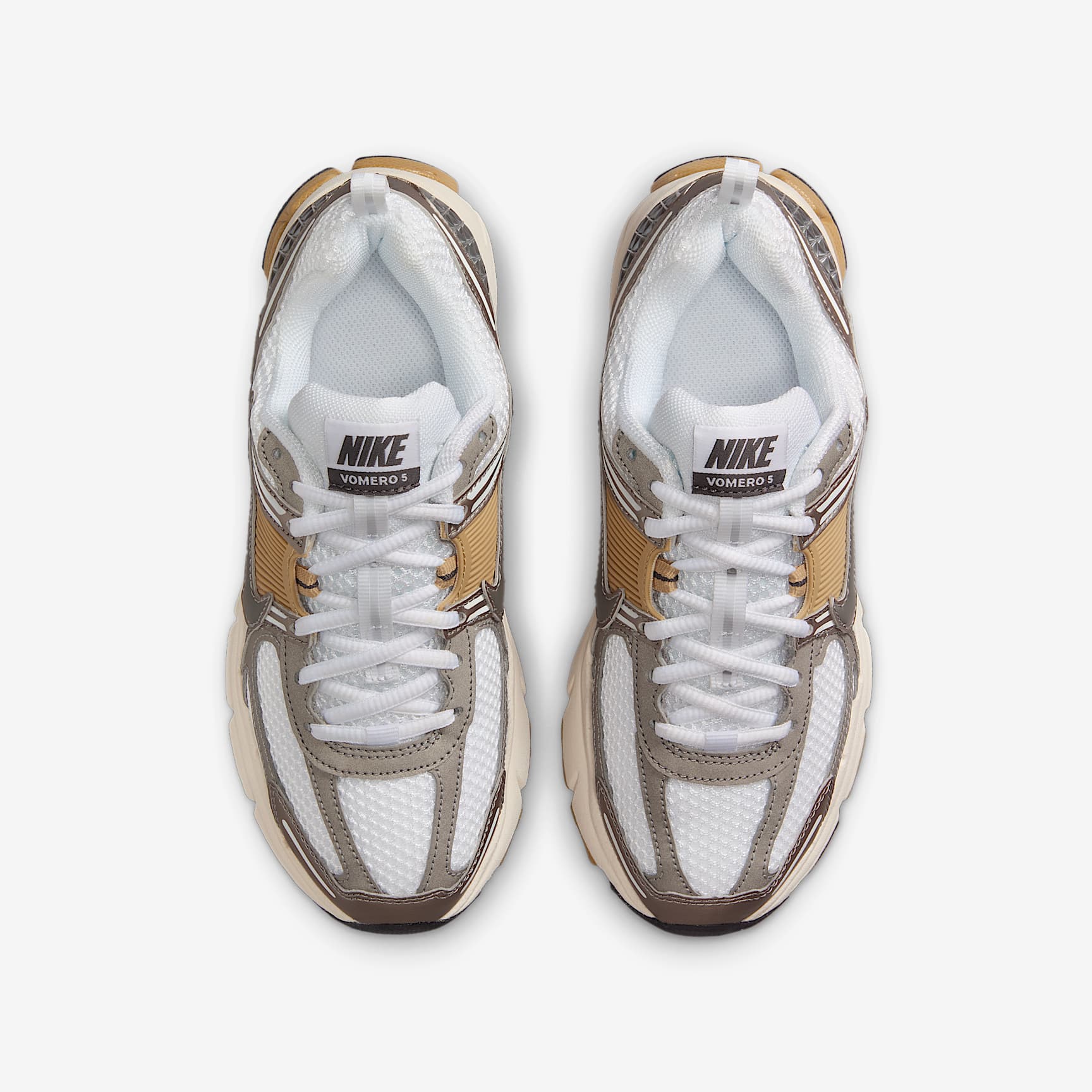 Lace up and step into a new lane with the Vomero 5, your go-to for comfortable cushioning and bold style. Plush foam underfoot pairs with layers of mesh, synthetic leather and plastic accents up top to make one of the coolest sneakers of the season. Benefits * Synthetic leather on the upper adds durability. * Mesh panels and ventilation ports on the heel help keep it light and breathable. * Plastic caging on the side adds support. * Rubber outsole gives you durable traction. Product Details * Classic laces * Reflective details * Not intended for use as Personal Protective Equipment (PPE)