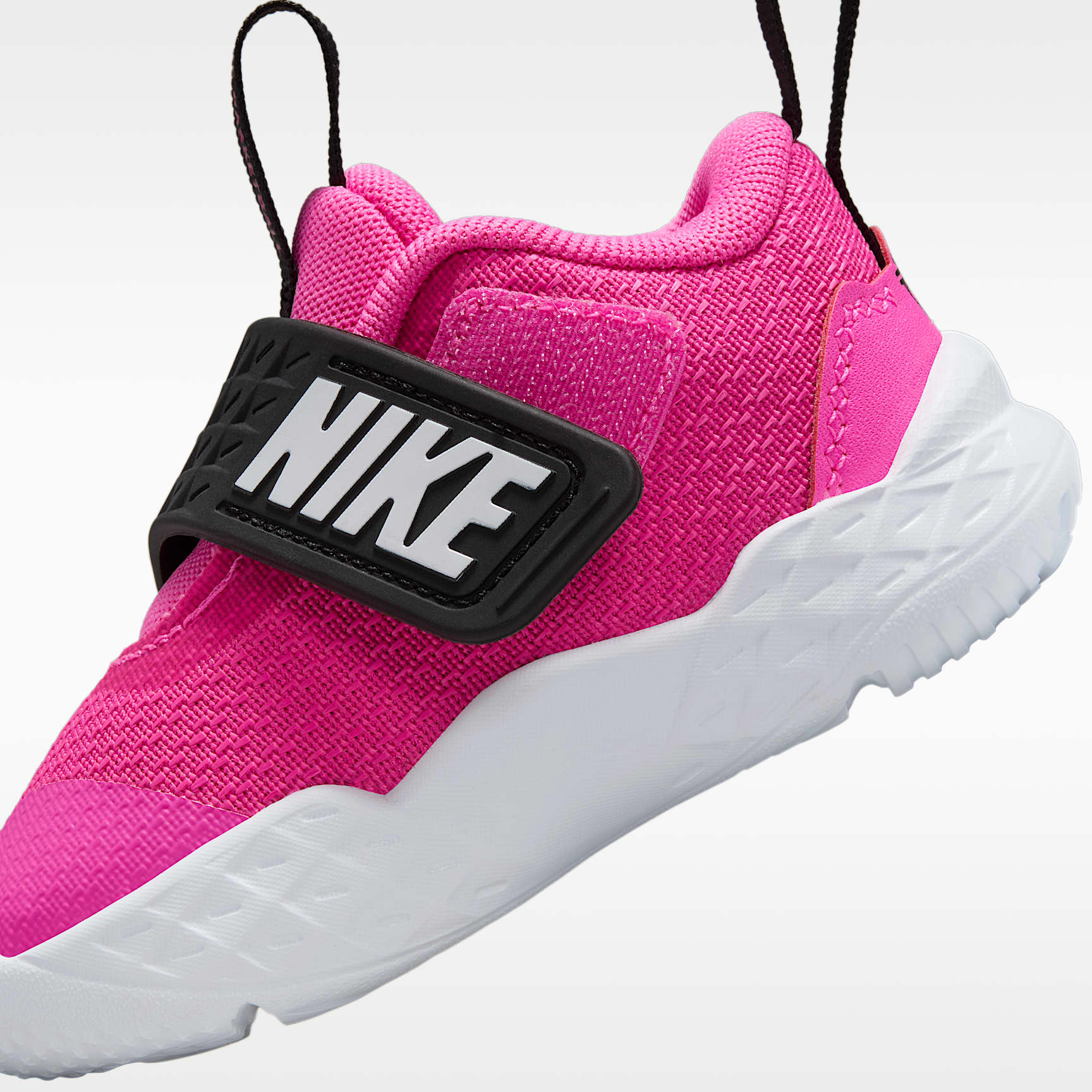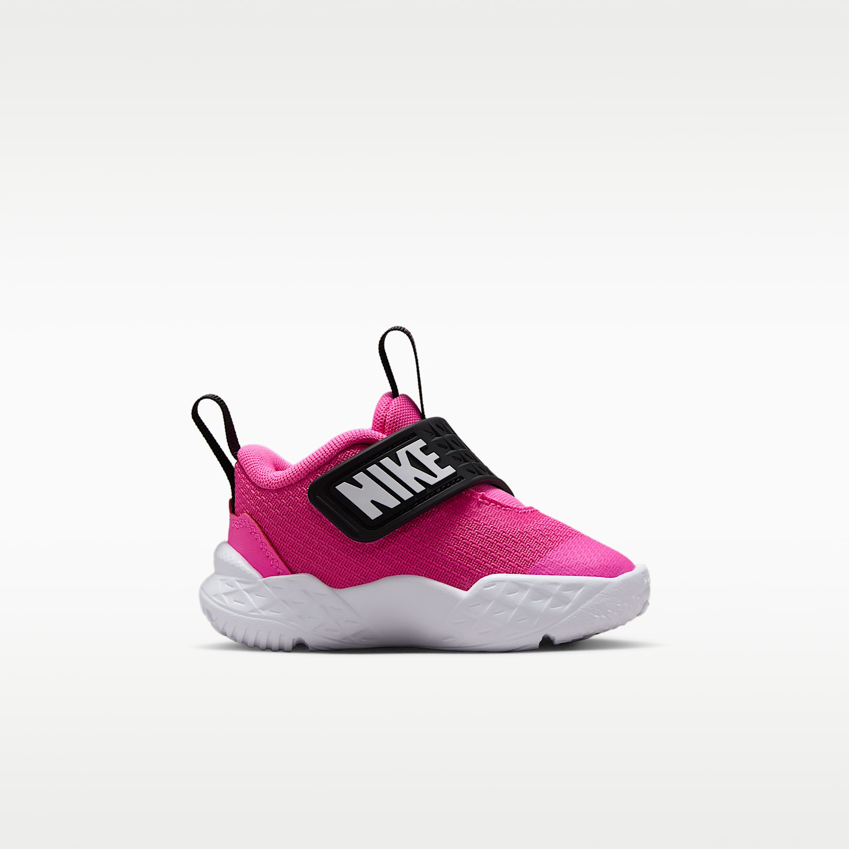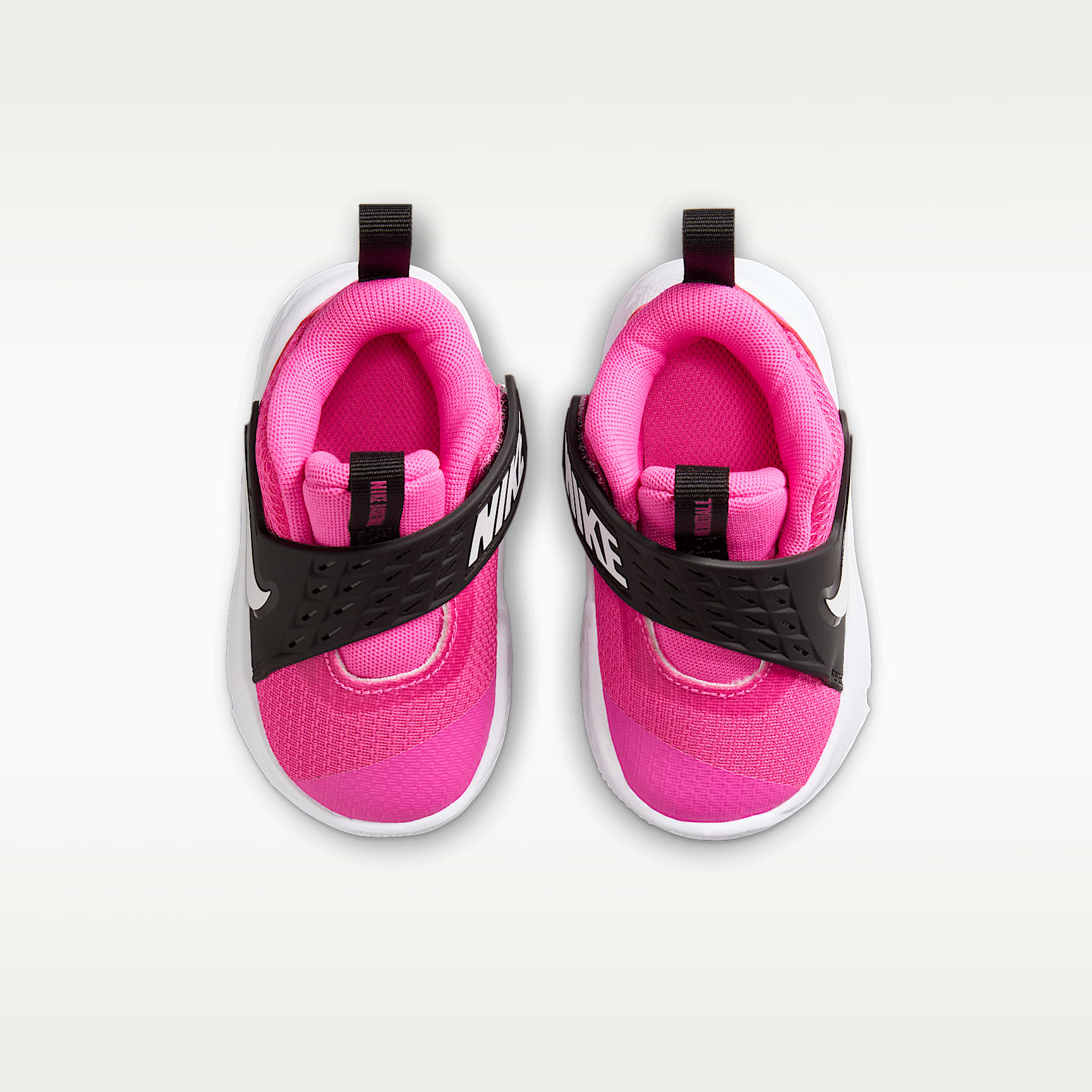 This Nike Team Hustle D is made for future hoopers. A strap closure system makes it easy to secure their fit fast. Underfoot, soft foam gives kids the cushioning they need to find their footing. Easy to Secure A wide opening, oversized pull tabs and a hook-and-loop strap help make it easy to slip these on little feet. Early Steps Sturdy foam outsole helps provide the flexibility and traction little feet need as they find their footing. Stay Cool Breathable mesh in the upper helps keep little feet from overheating.