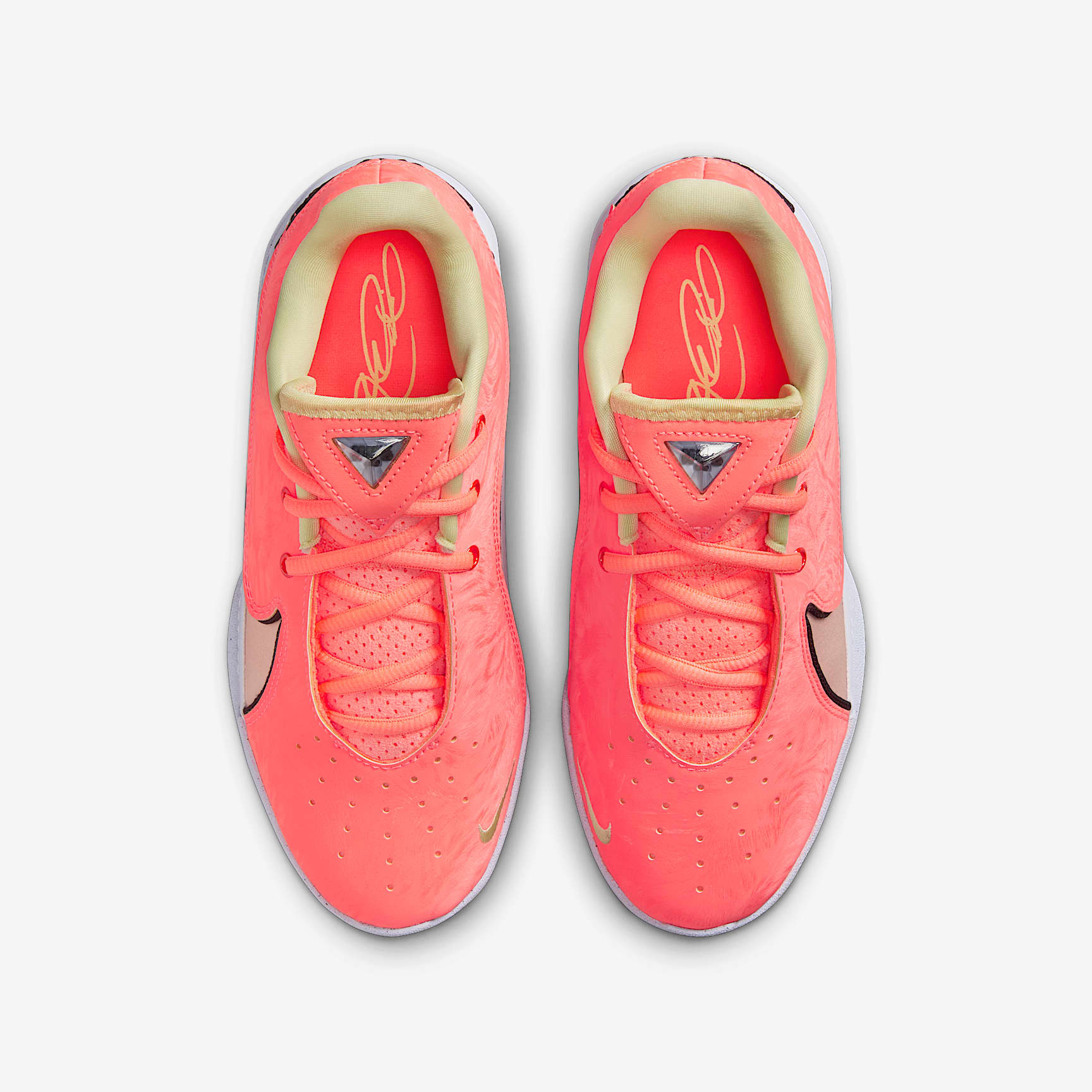 22 years of greatness. What the game needs, LeBron provides. A premium fit and design made for your game and the flexibility it demands, this LeBron was made to help you do more. Bright, contrasting colors chosen by James' daughter—this colorway is bursting with energy and just the right amount of shine to help you stand out on the court. Less Air, More Flex The difference between this LeBron and the adult version? We opted for extra flexibility in the forefoot over Air for a kids-right fit perfect for your developing game. A full-length Cushlon foam midsole delivers springy, responsive cushioning while keeping you low to the ground and connected to the court. Feel The Floor The foam in the midsole feels soft and smooth while keeping you low to the ground, which helps you stay connected to the court. Lightweight Durability Real and synthetic leather mixes with breathable textiles up top to help keep these shoes lightweight without sacrificing structure or stability. Product Details * Classic laces * Plastic midfoot plate for stability