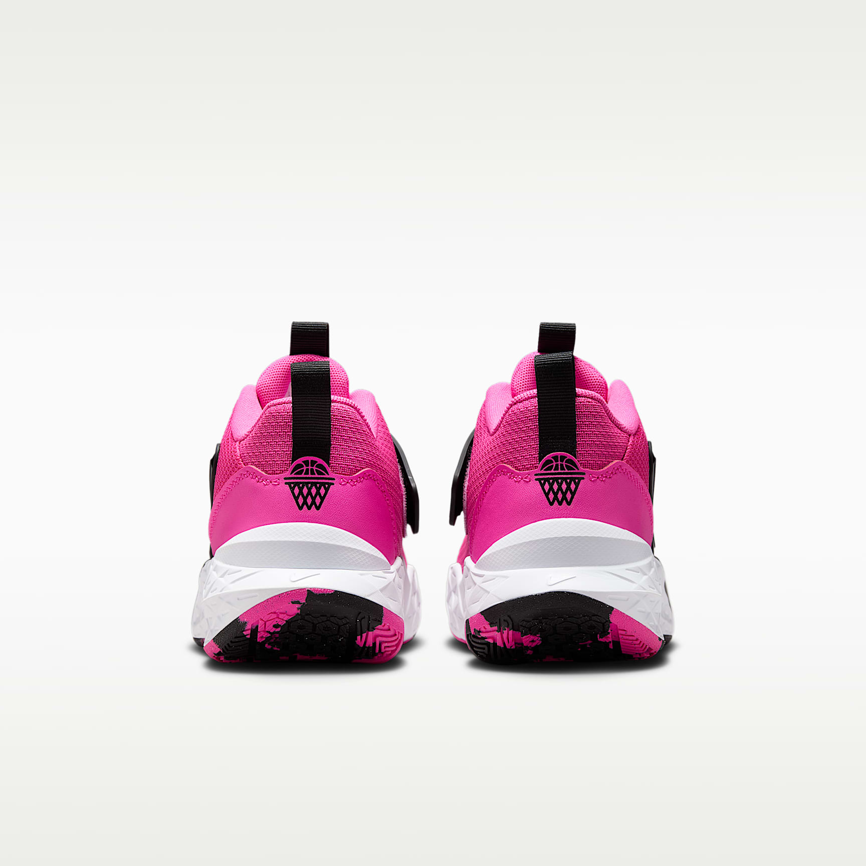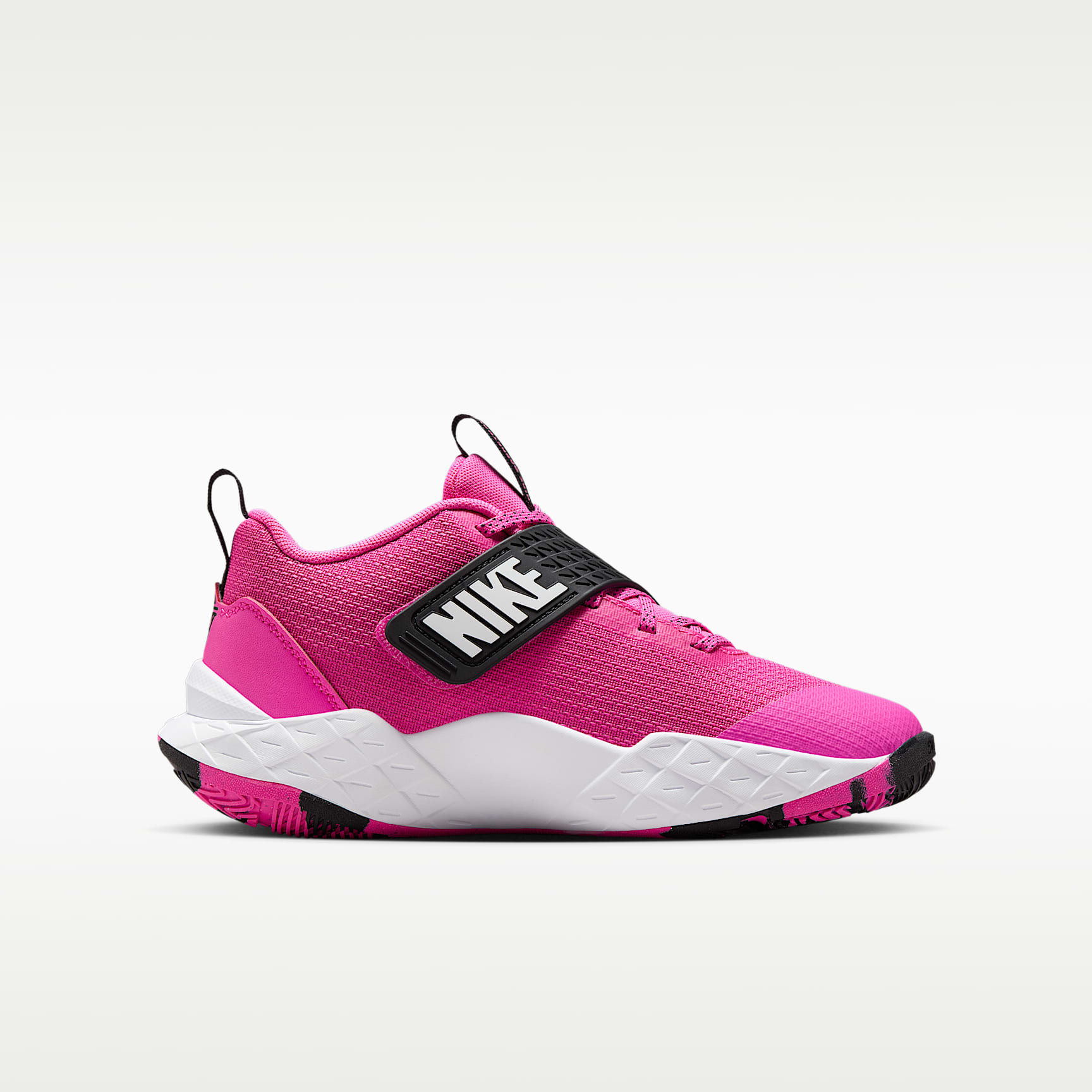The Nike Team Hustle D is made for kids who love to hoop. Its strap closure system makes it easy to secure your fit fast. Underfoot, plush foam and a durable rubber outsole give you the cushioning and grip you need to confidently play on outdoor courts. Easy to Secure Classic laces pair with a hook-and-loop strap to help give you a secure, contained fit. We added oversized loops to the tongue and heel to help make these easy to pull on. Blacktop Ready A flexible, full-length rubber outsole offers the durability and grip you need to bring your best on outdoor courts and playgrounds. Plus, soft foam in the midsole cushions every step and jump you take. Keep Your Cool Breathable mesh in the upper helps keep your feet from overheating. Product Details * Classic laces * Pull tabs on tongue and heel